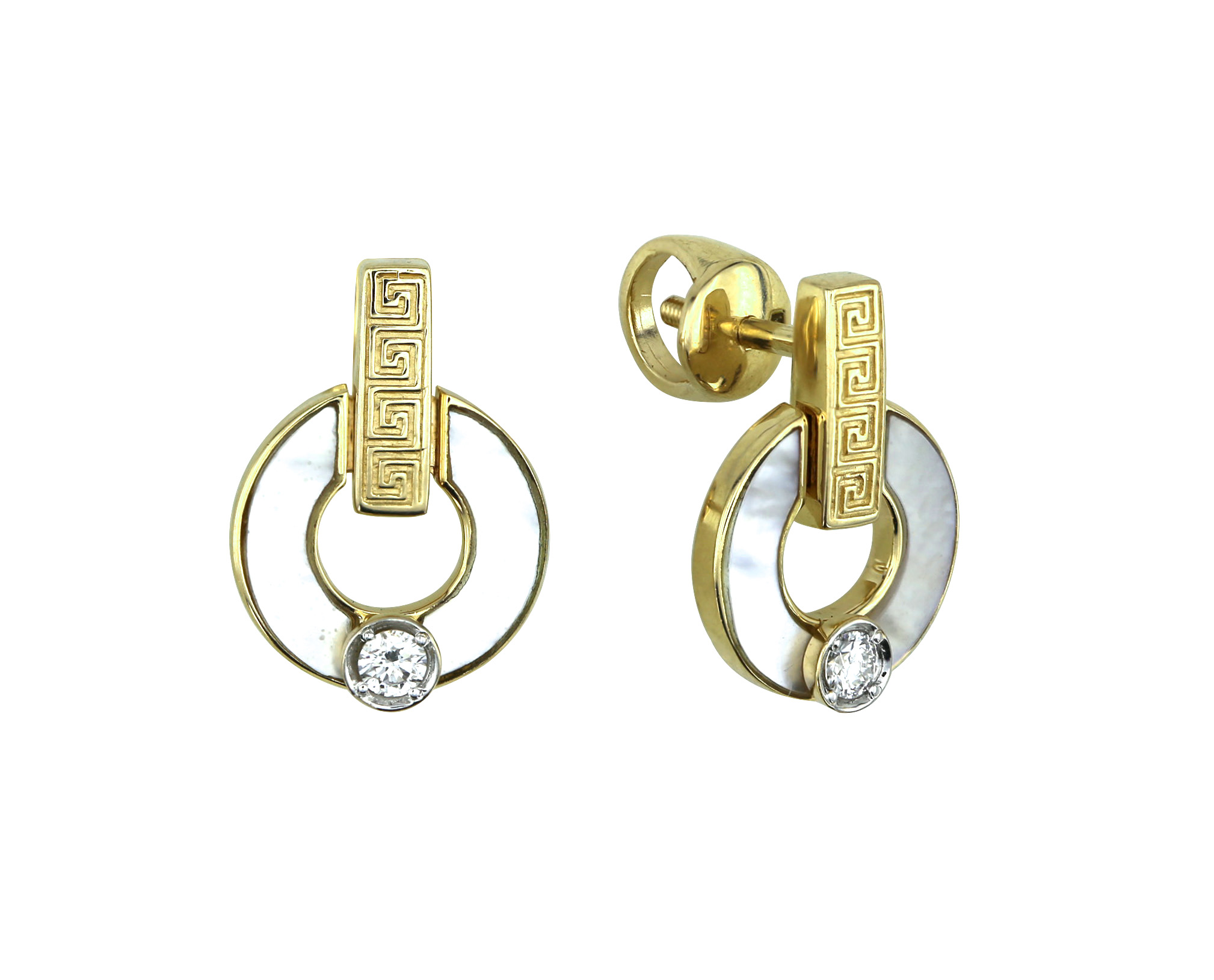 Серьги из лимонного золота 585 пробы c бриллиантами и перламутром