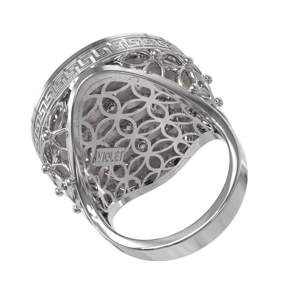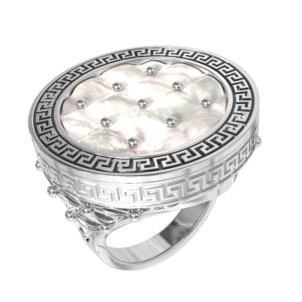 Кольцо из белого золота 585 пробы c эмалью и перламутром