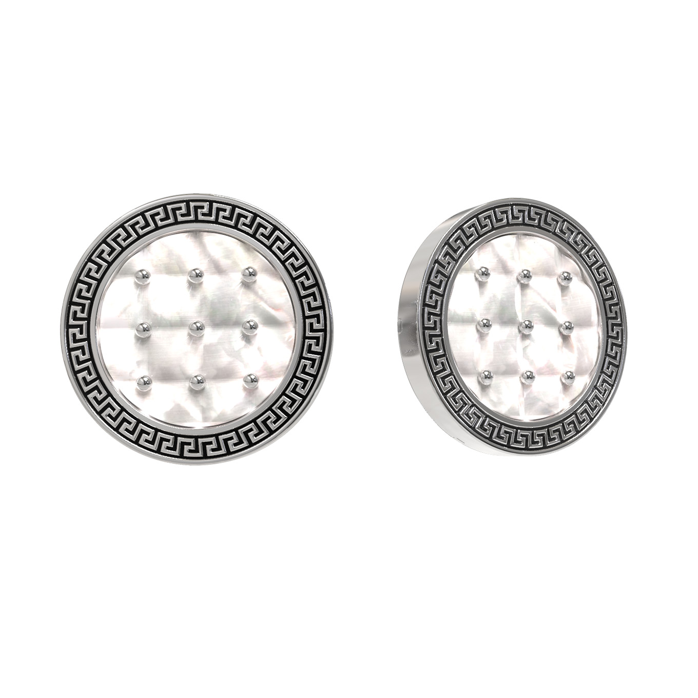 Элегантные и выразительные серьги из коллекции De Luxe — Эллада станут воплощением вашего безупречного вкуса. Это украшение выполнено из благородного белого золота 585 пробы, которое подчеркивает глубину и сияние каждой детали. Дизайн изделия объединяет классические формы и античные мотивы, создавая гармоничный образ для ценителей утонченности. Лаконичная круглая форма дополняется эффектной вставкой из нежного перламутра, чье перламутровое мерцание мягко контрастирует с черной эмалью.