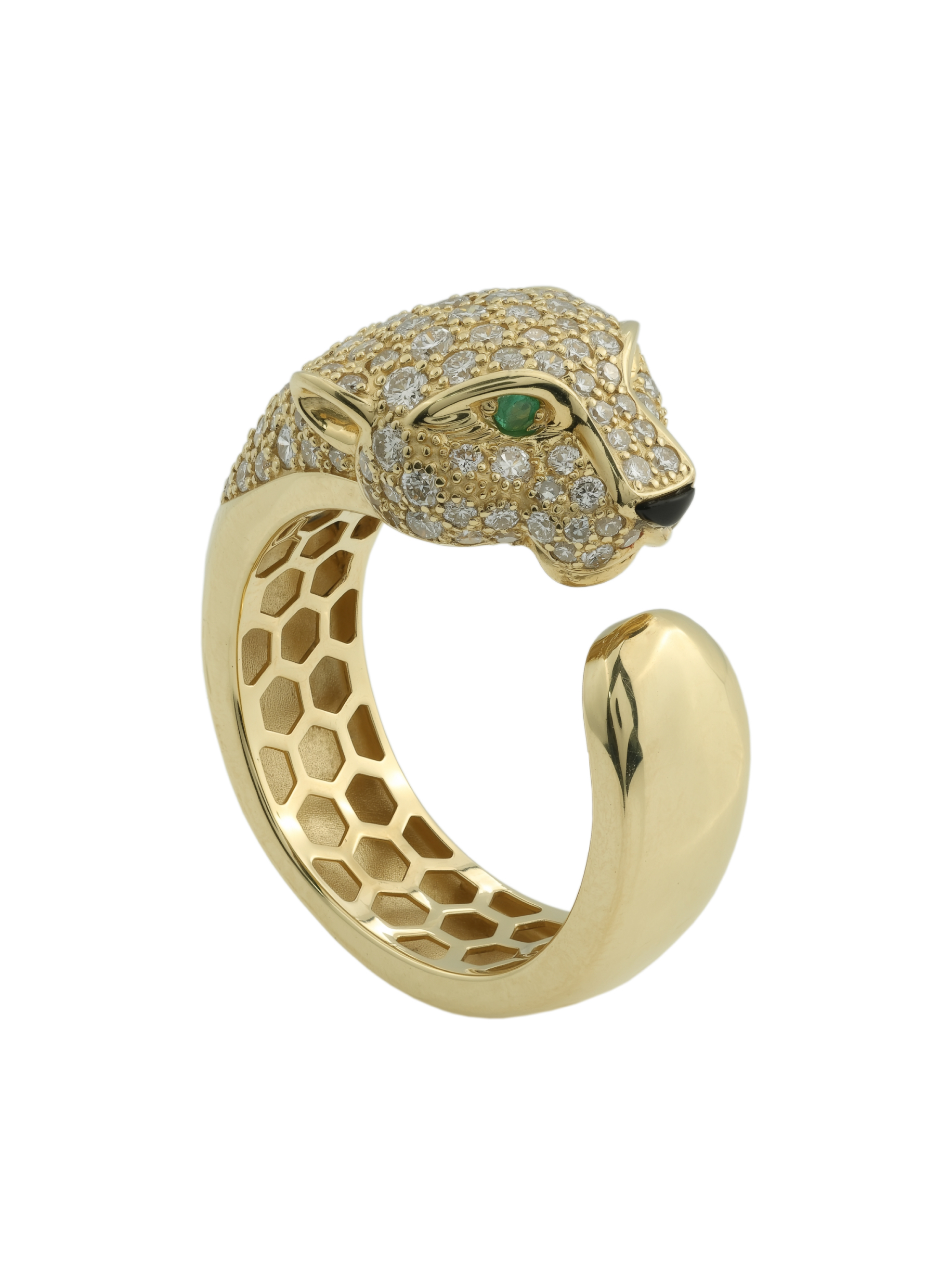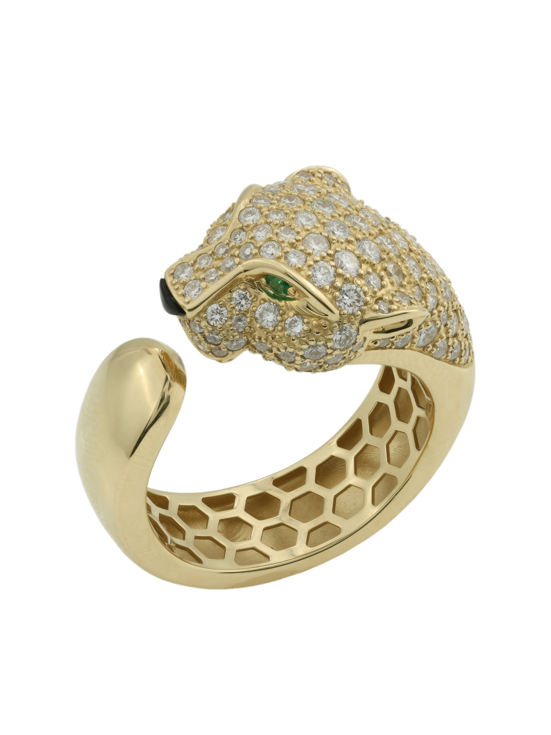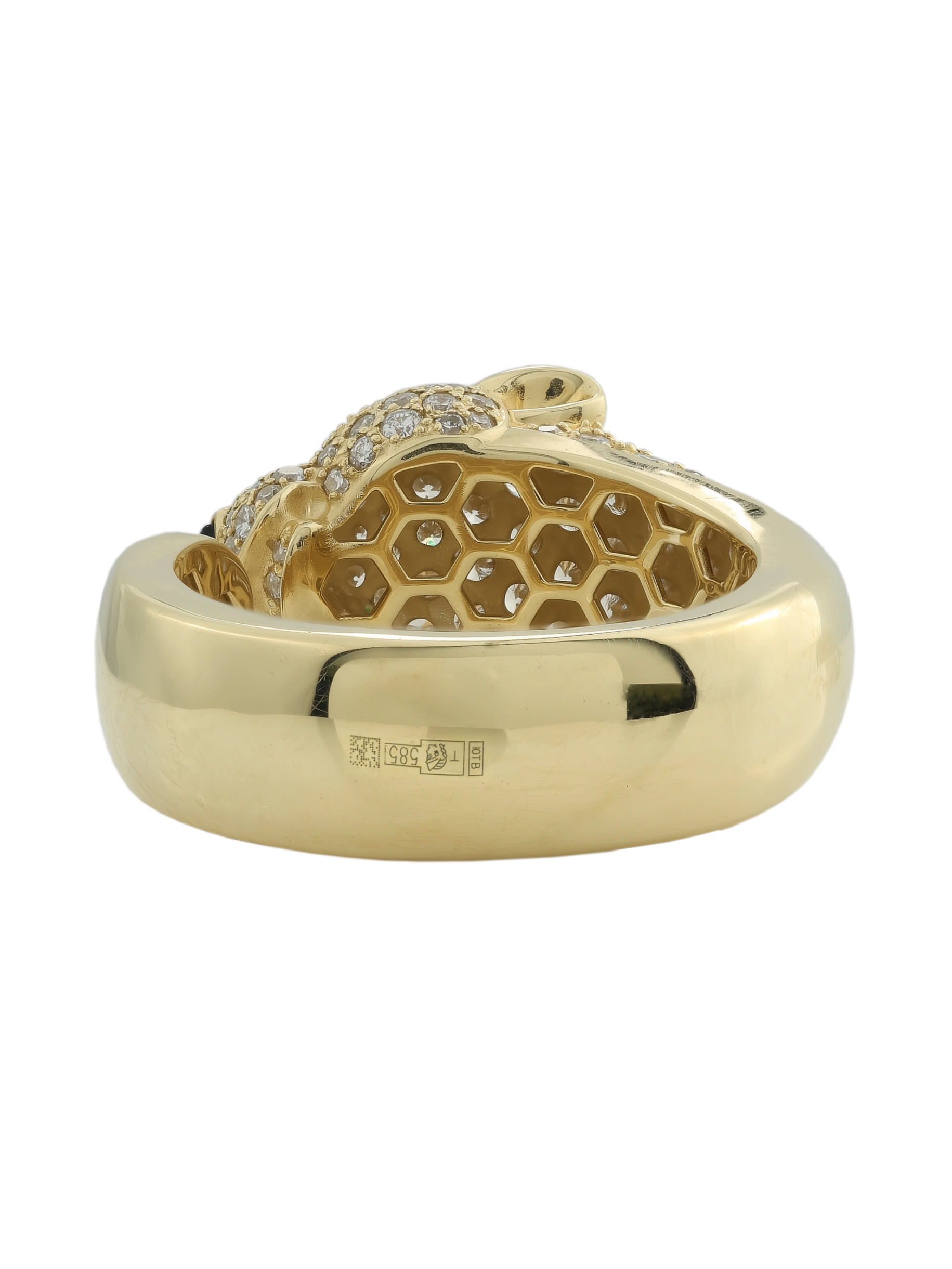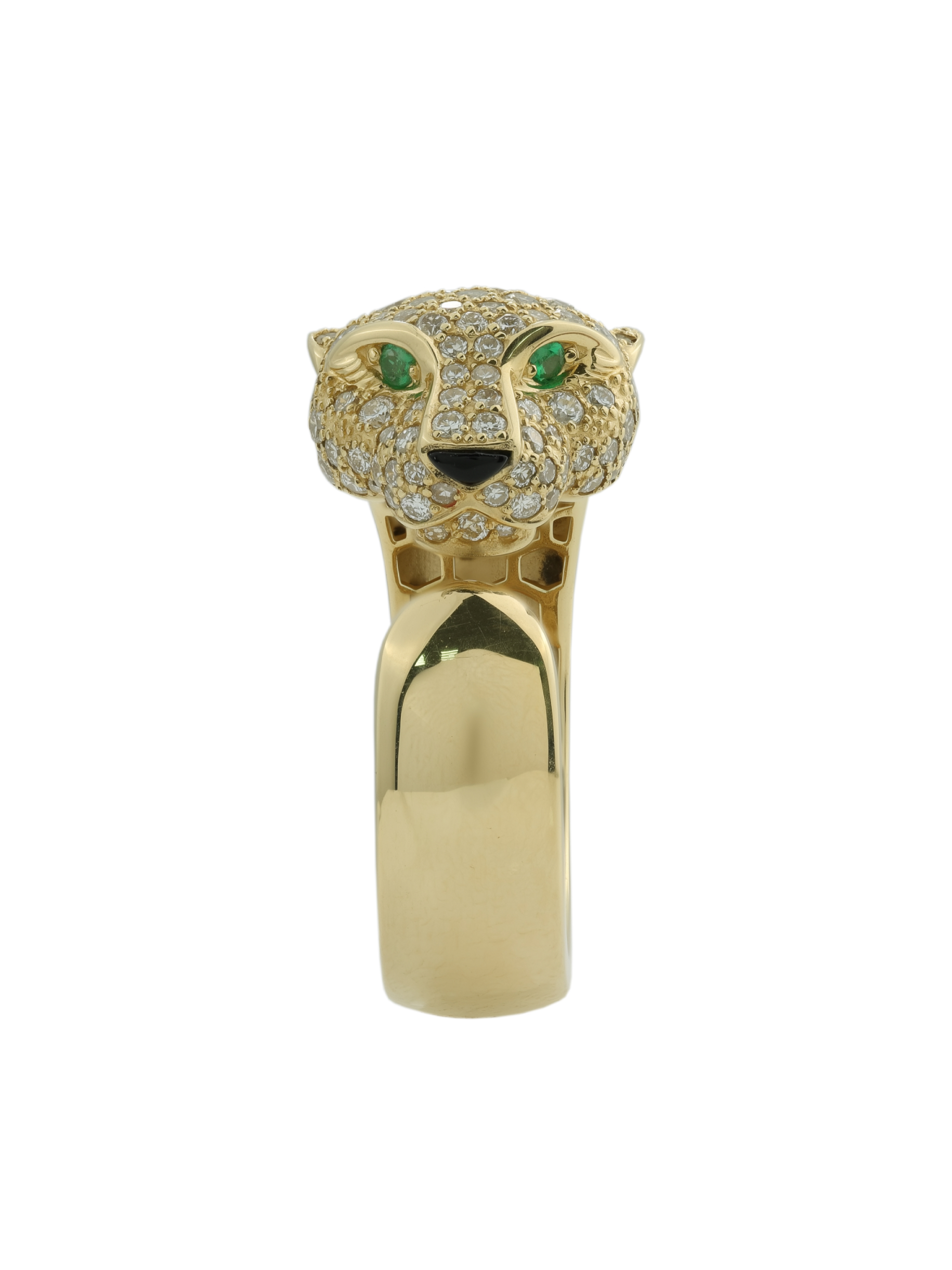 Кольцо из лимонного золота 585 пробы c бриллиантами, изумрудом и ониксом