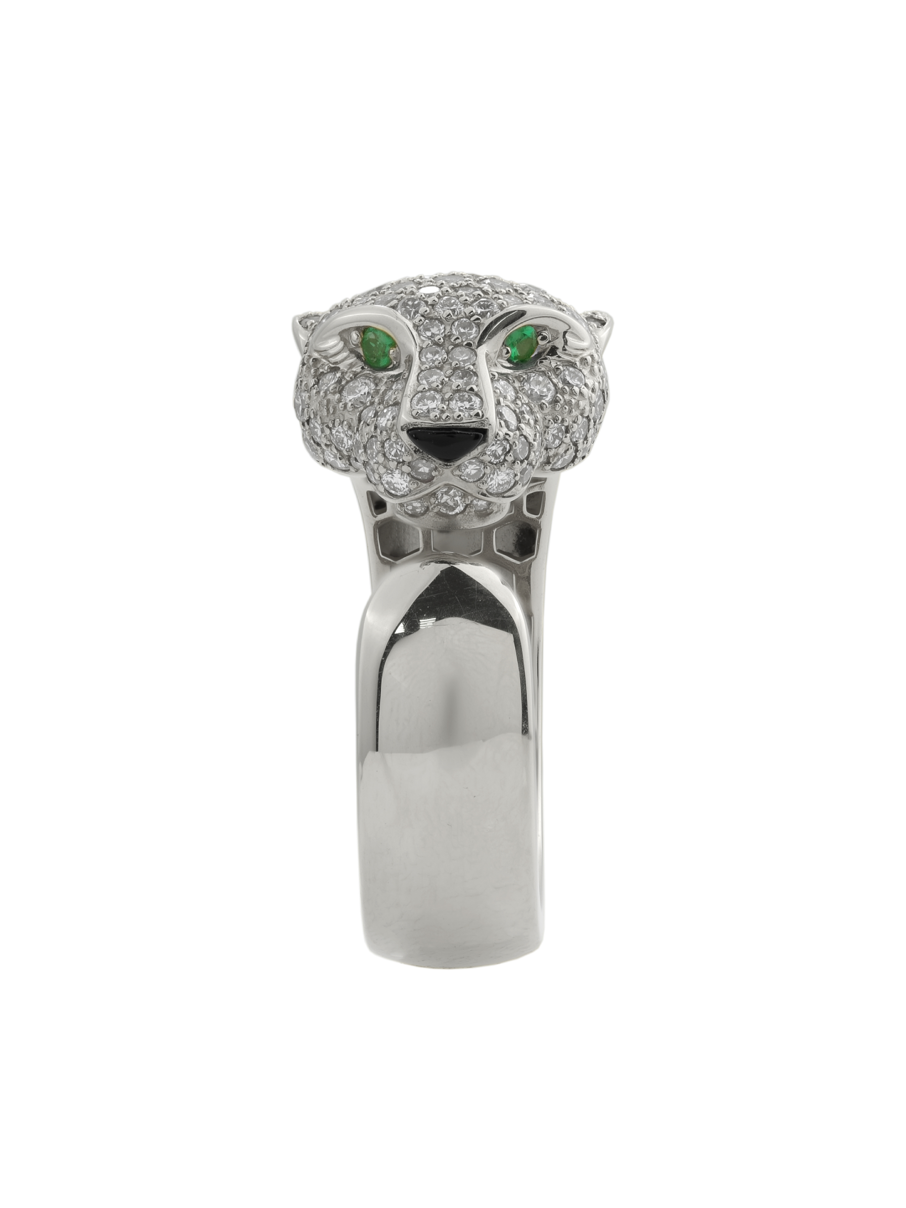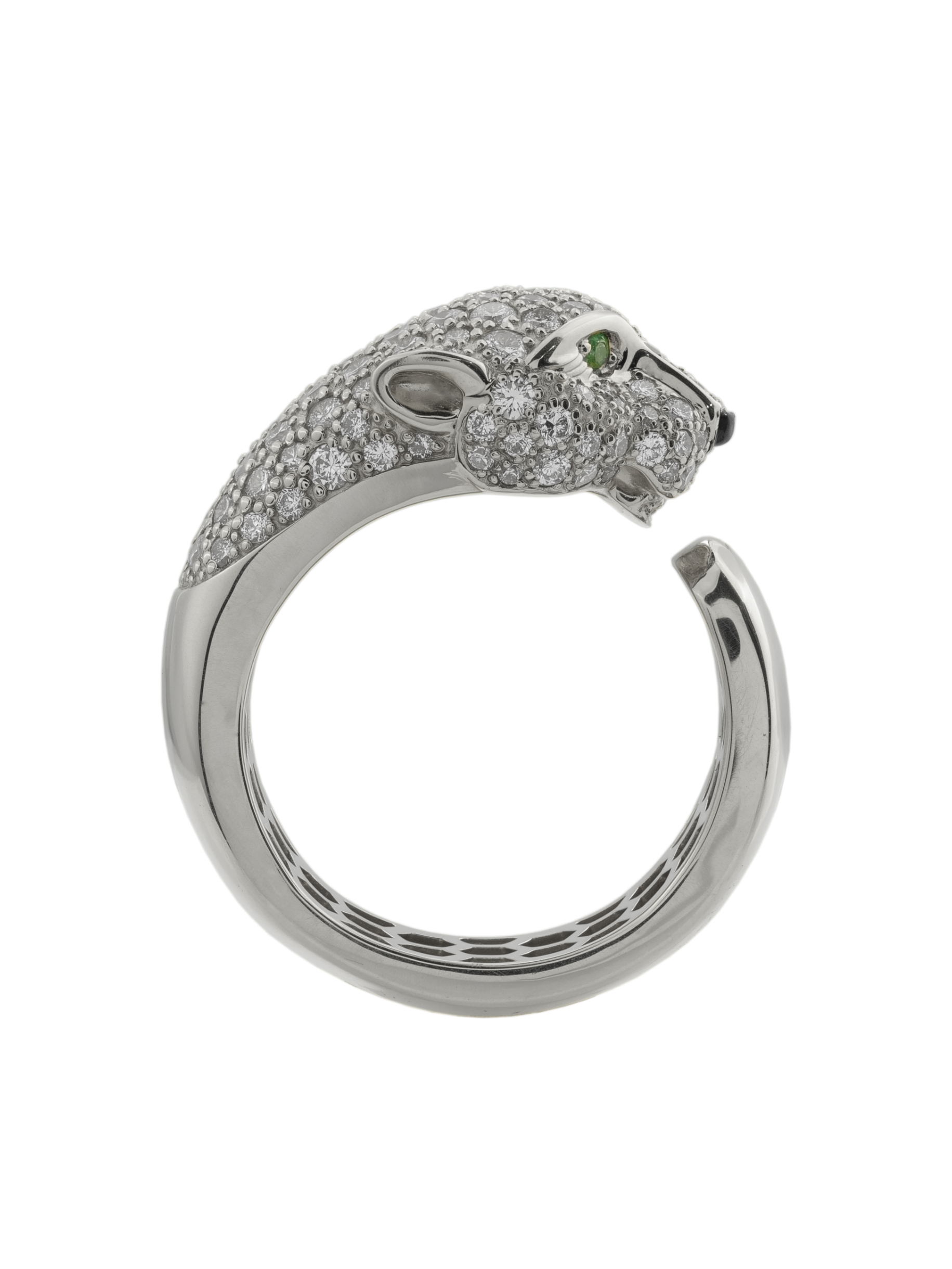 Кольцо из белого золота 585 пробы c бриллиантами, изумрудом и ониксом