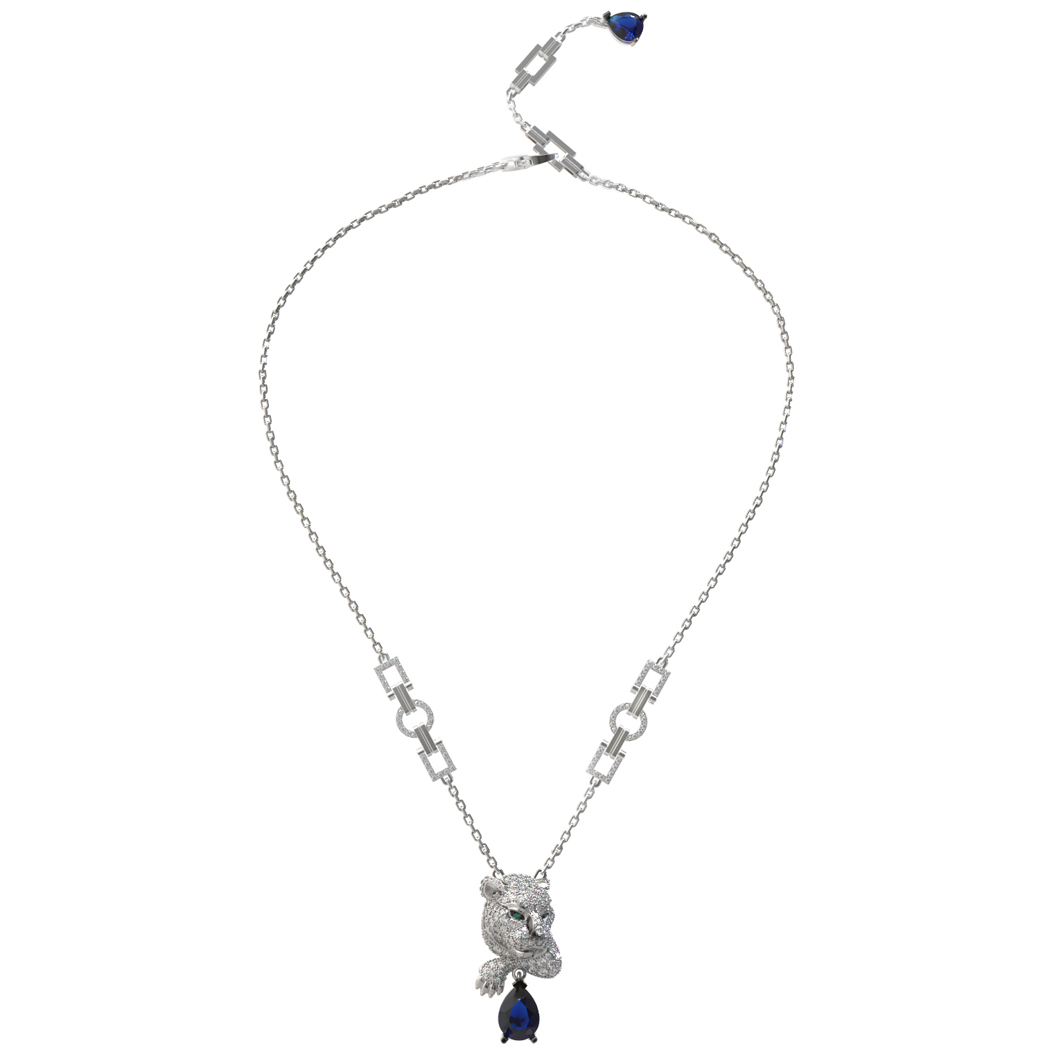 Колье из белого золота 585 пробы c бриллиантами, сапфиром и изумрудом