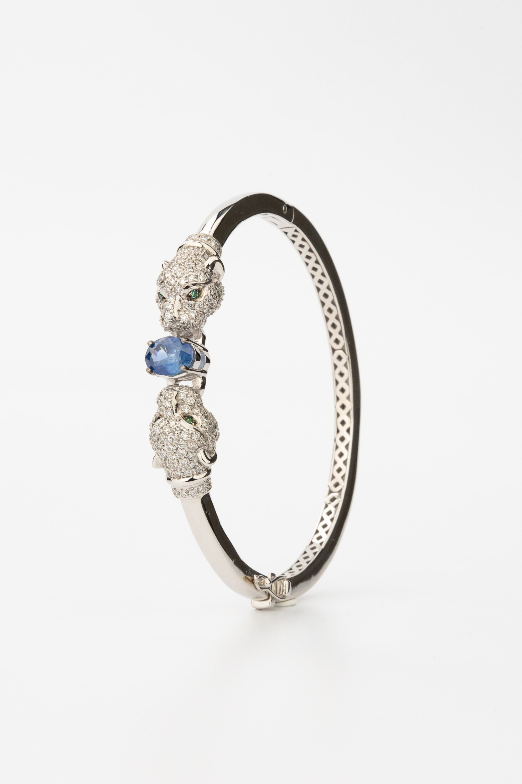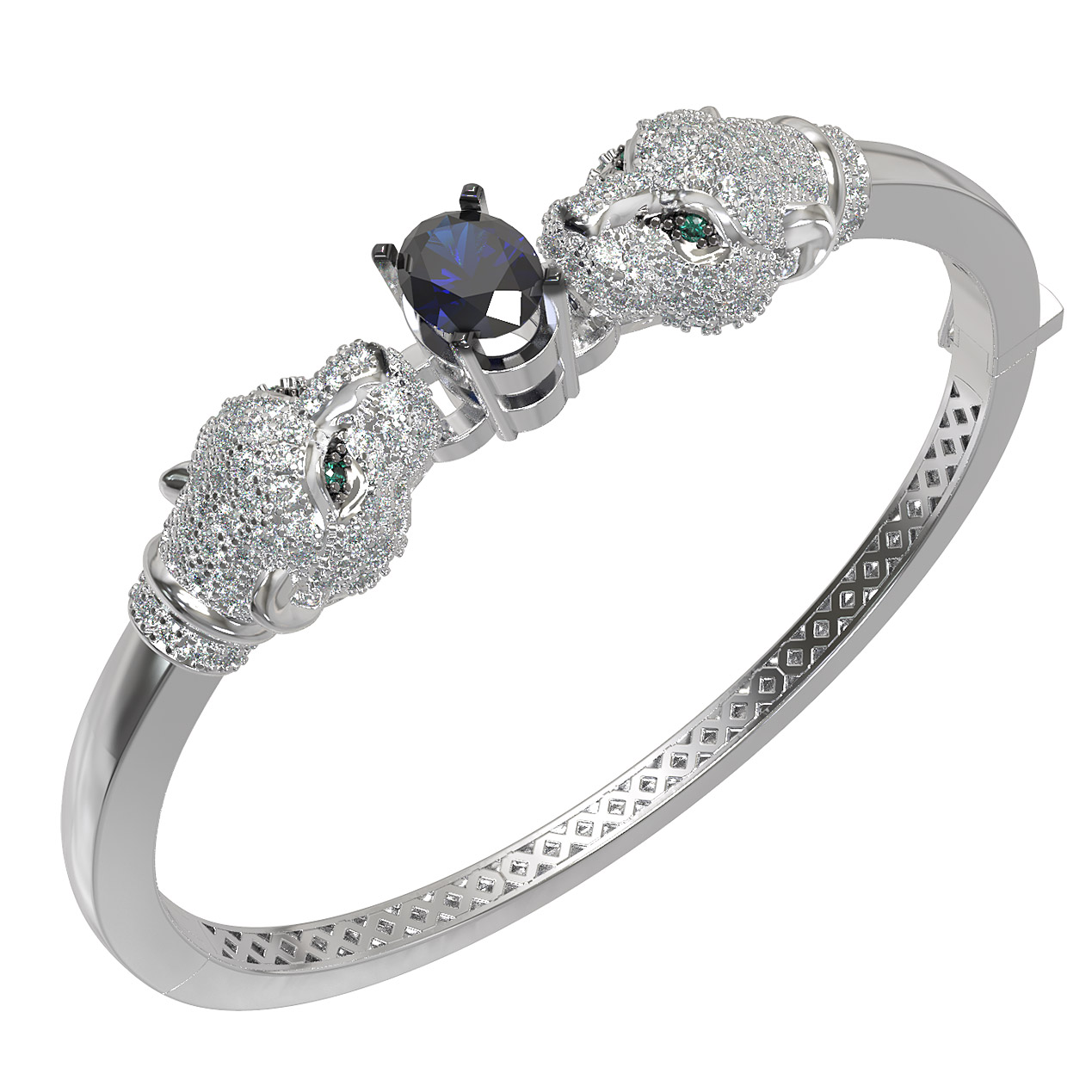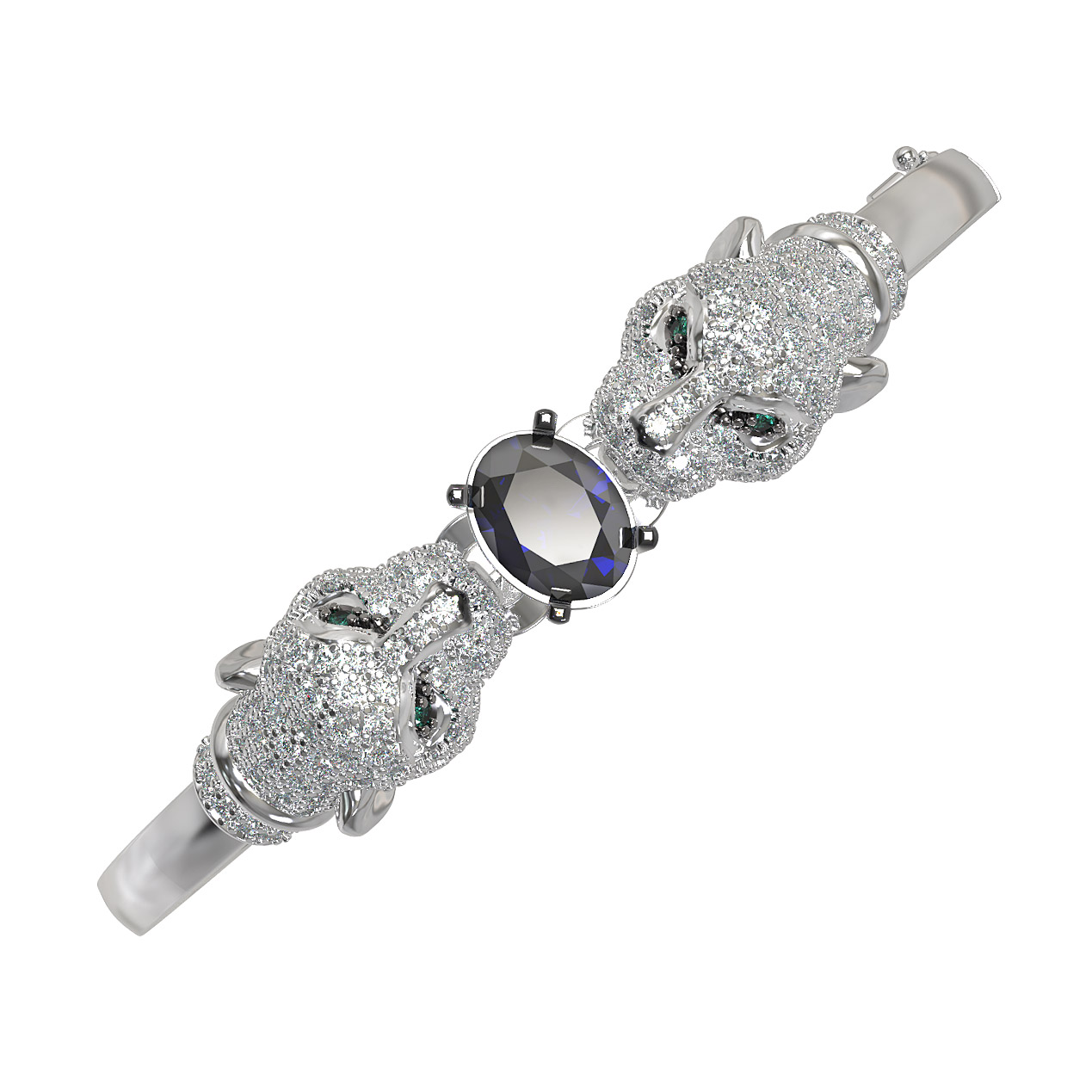 Браслет из белого золота 585 пробы c бриллиантами, сапфиром и изумрудом