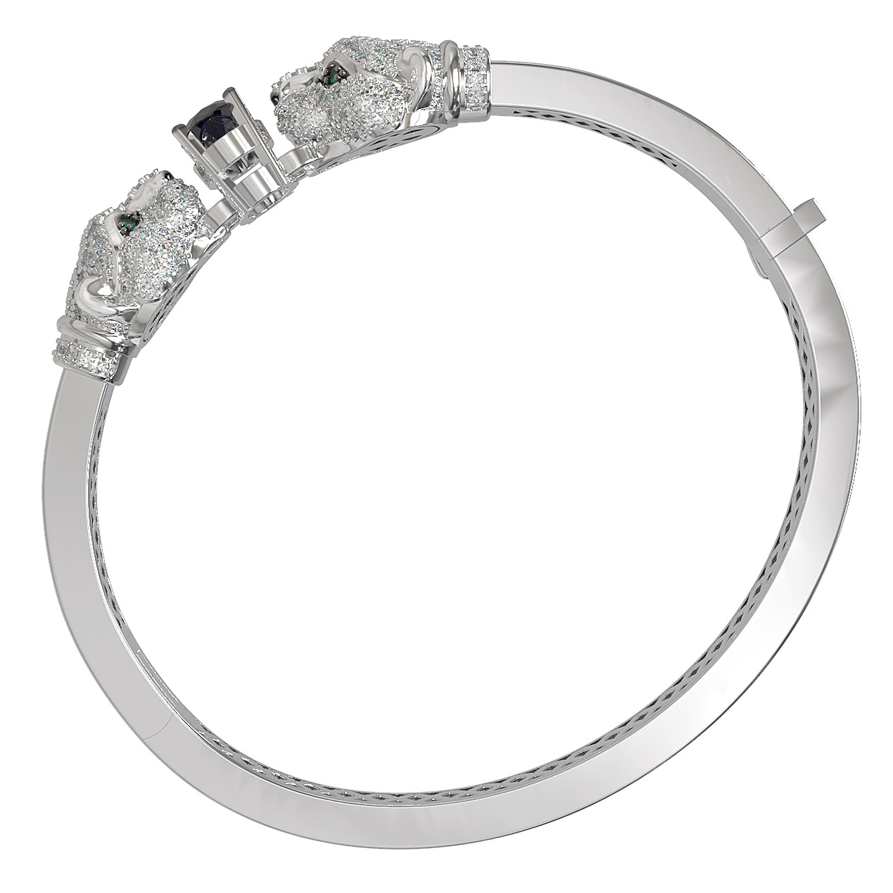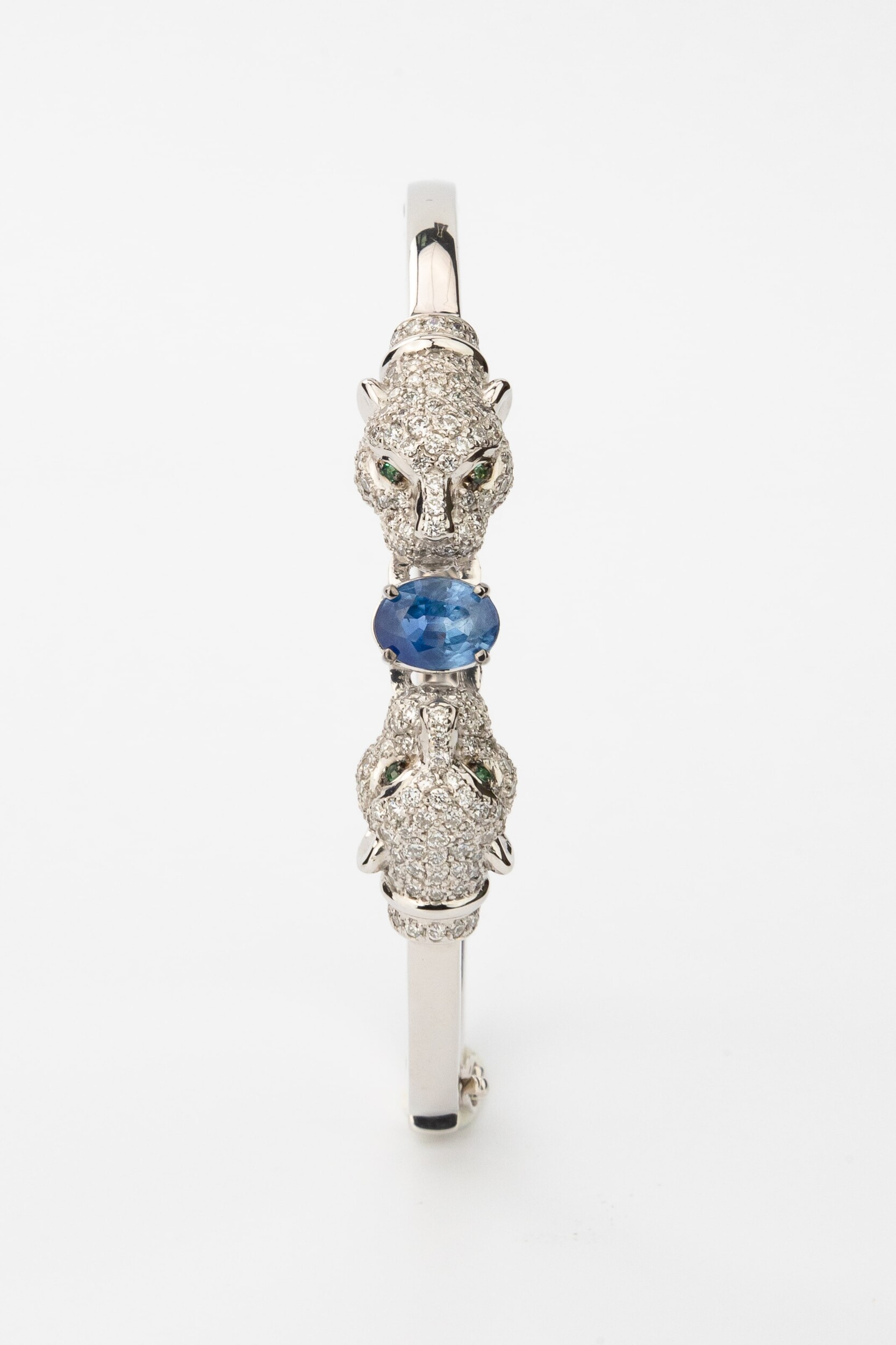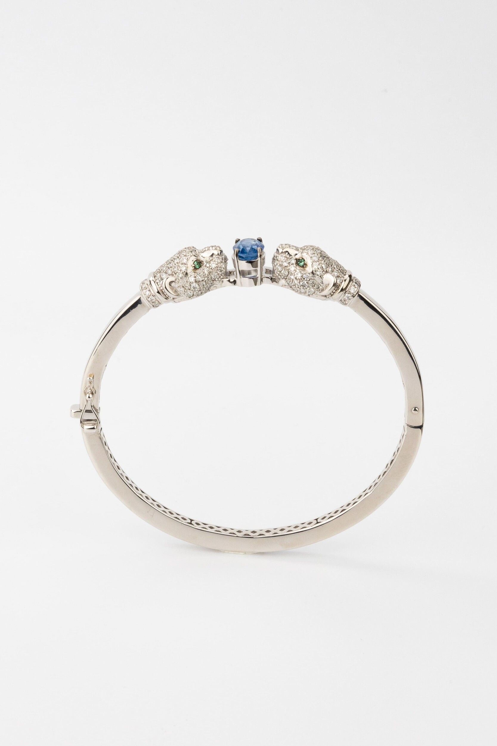 Браслет из белого золота 585 пробы c бриллиантами, сапфиром и изумрудом