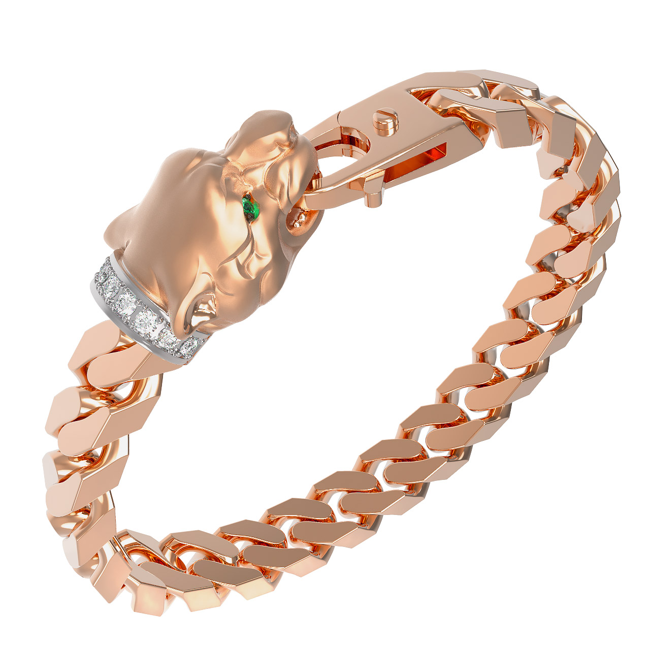 Браслет из красного золота 585 пробы c бриллиантами и изумрудом