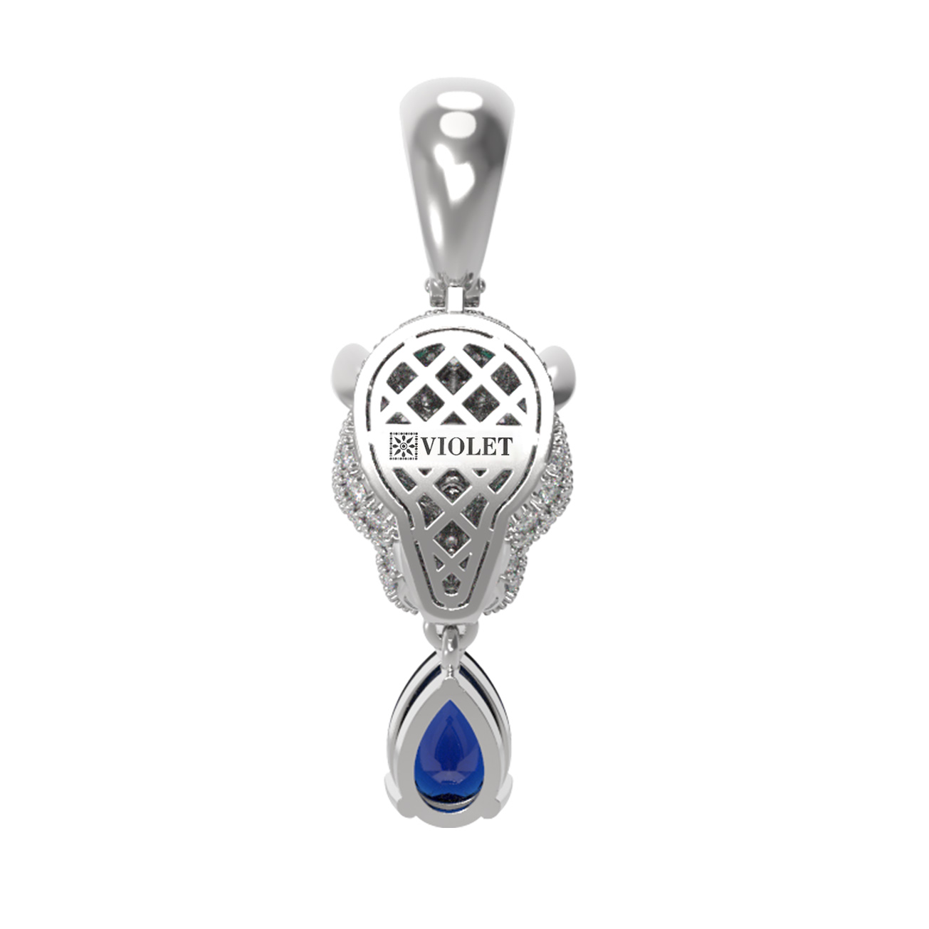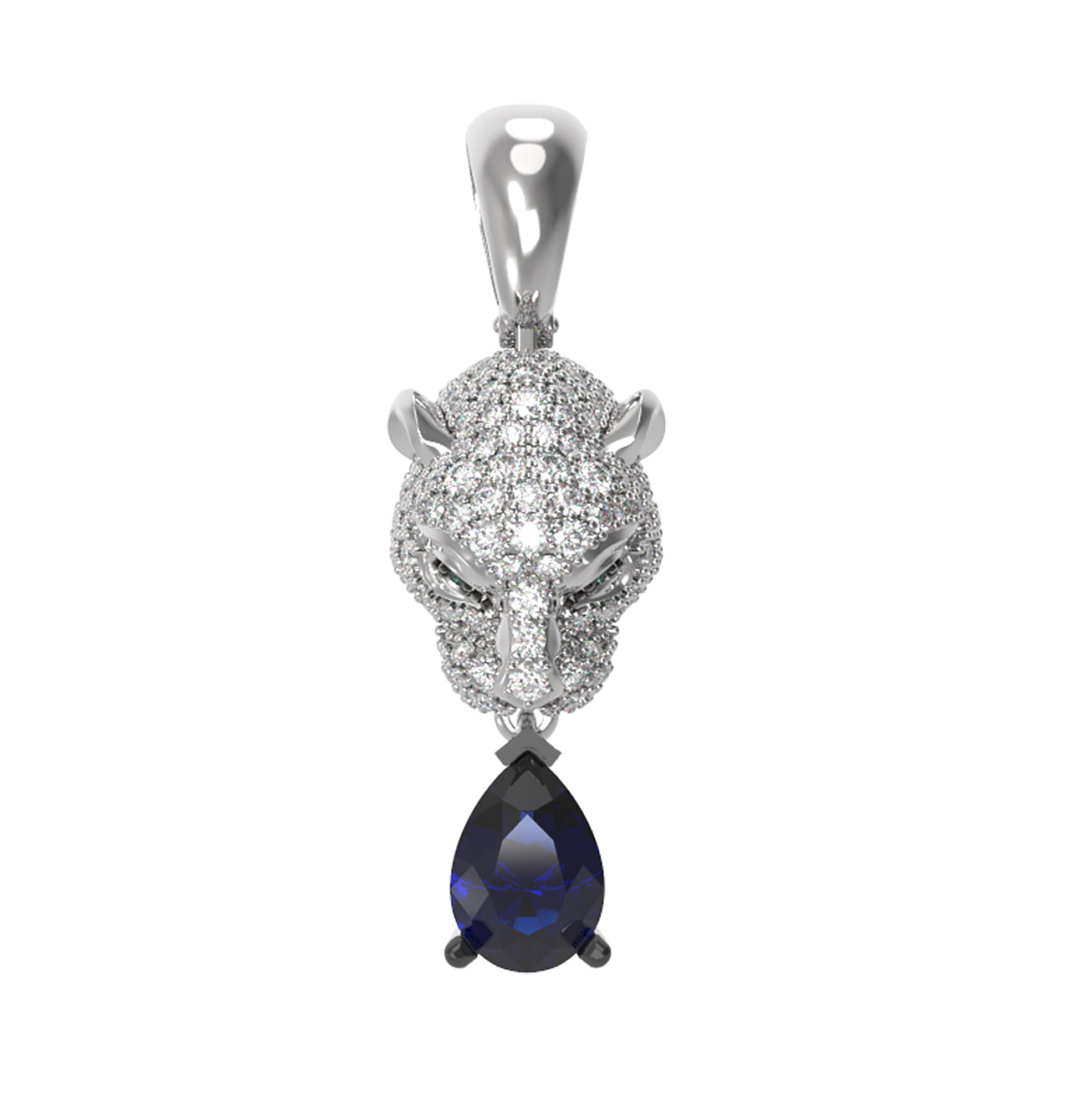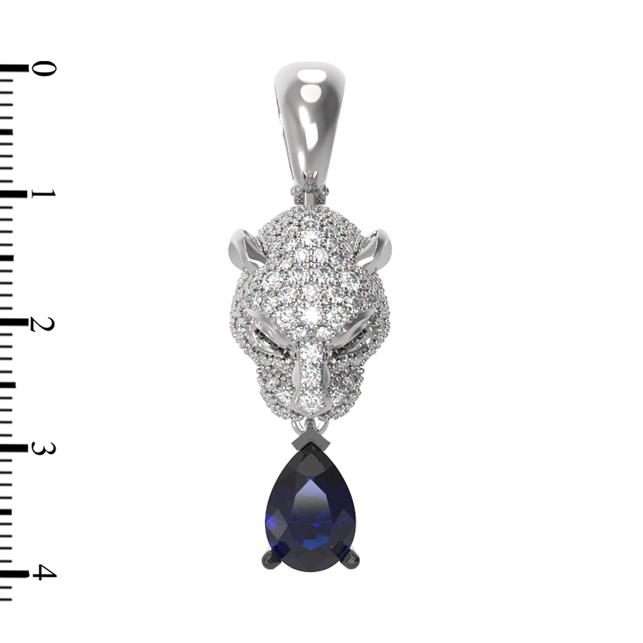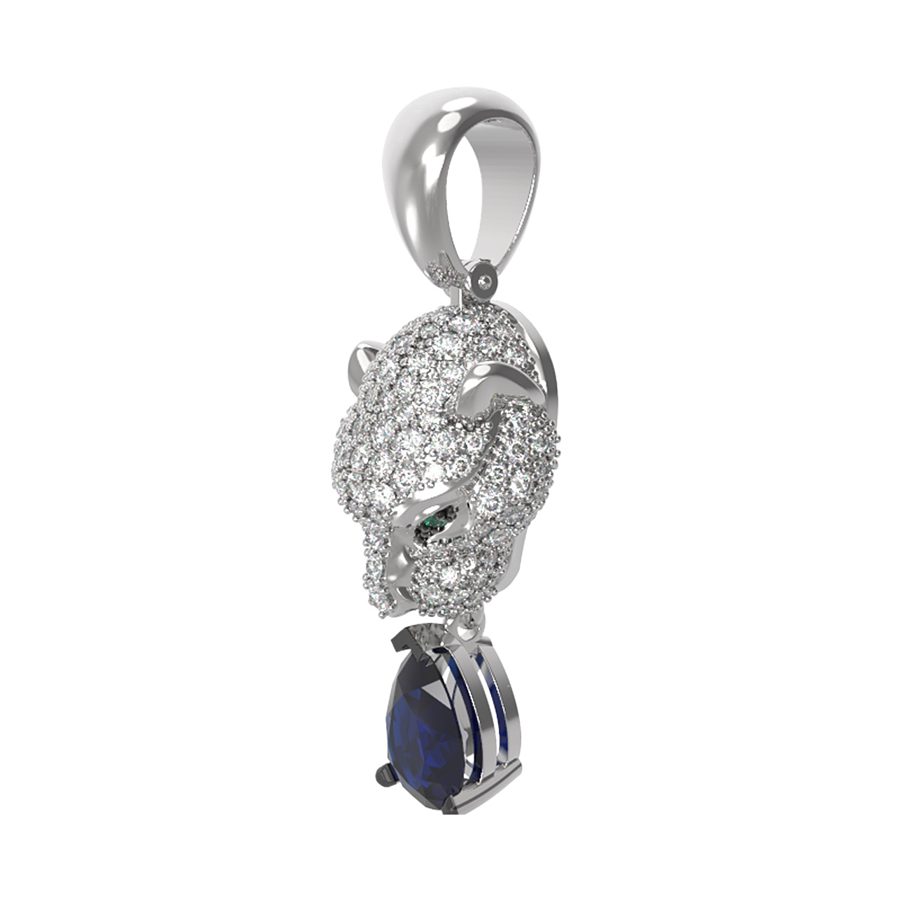 Подвеска из белого золота 585 пробы c бриллиантами, сапфиром и изумрудом