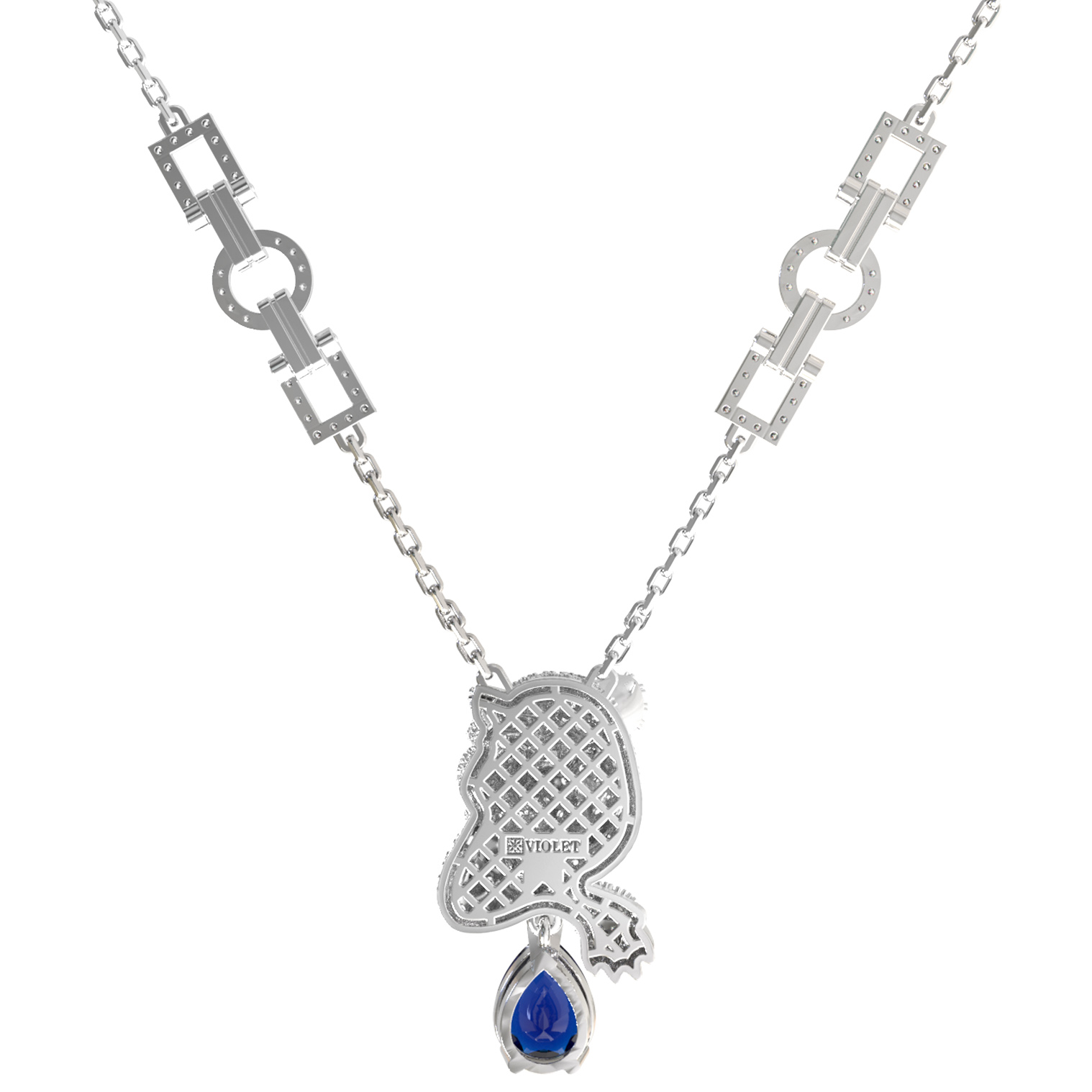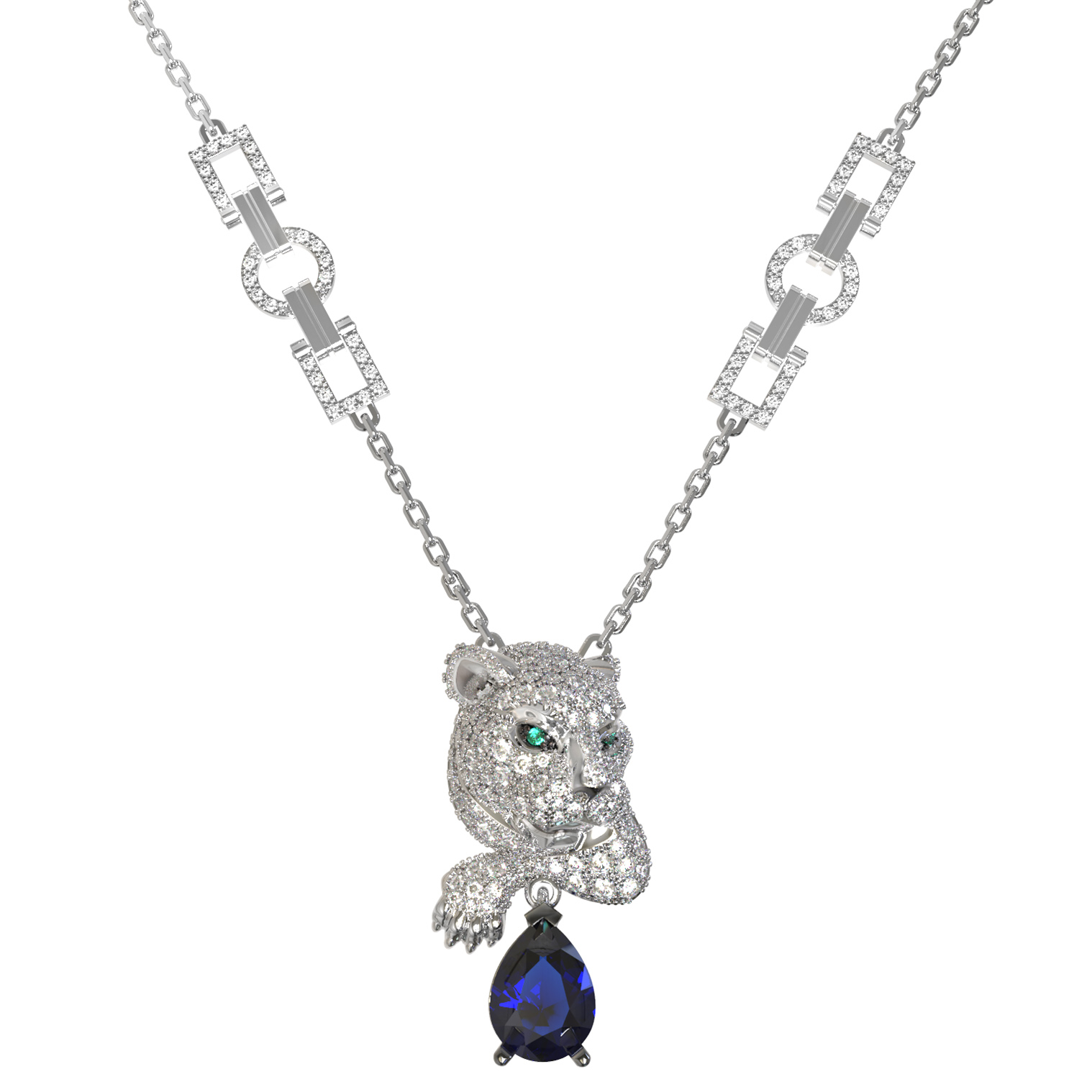 Колье из белого золота 585 пробы c бриллиантами, сапфиром и изумрудом