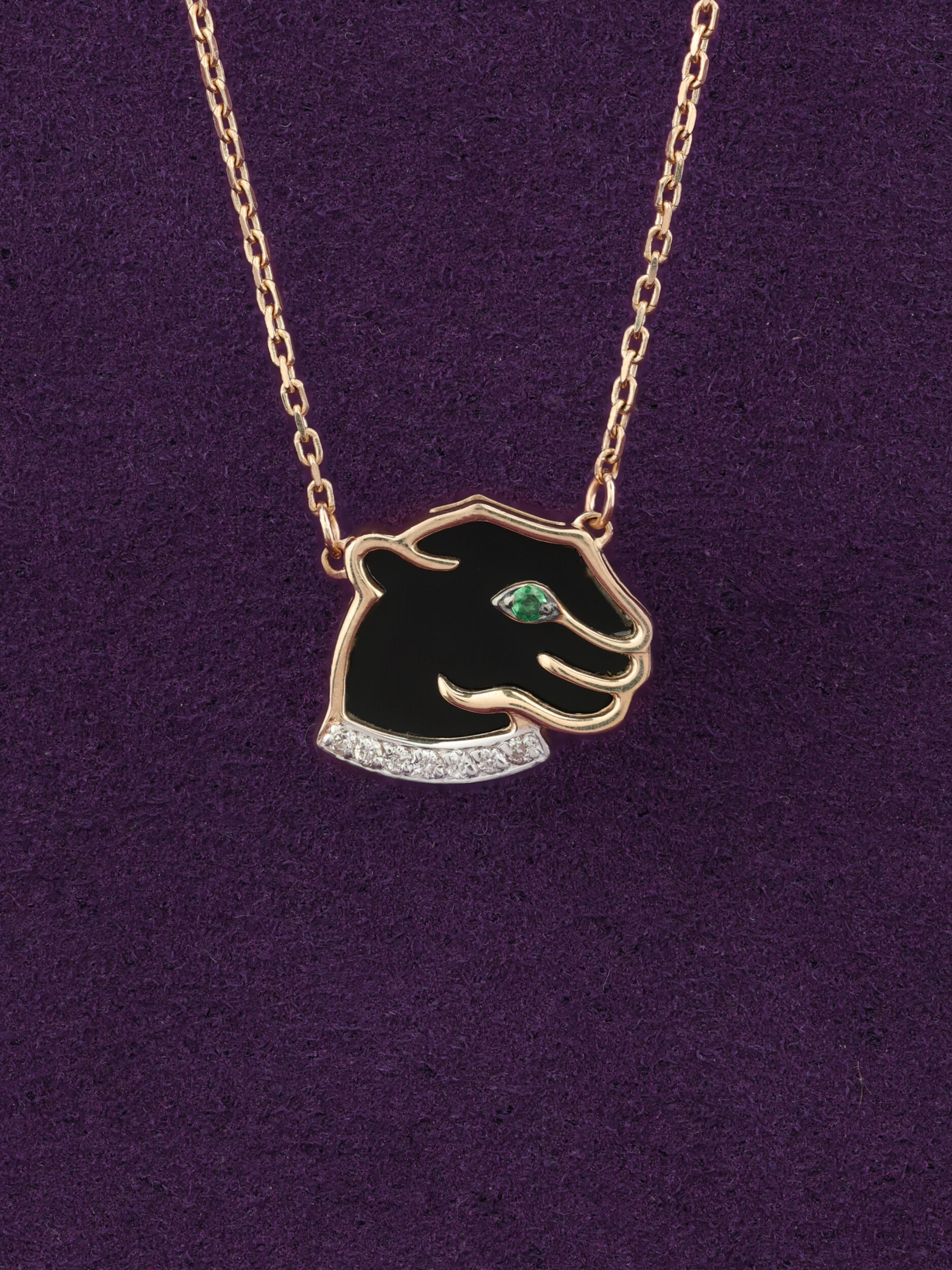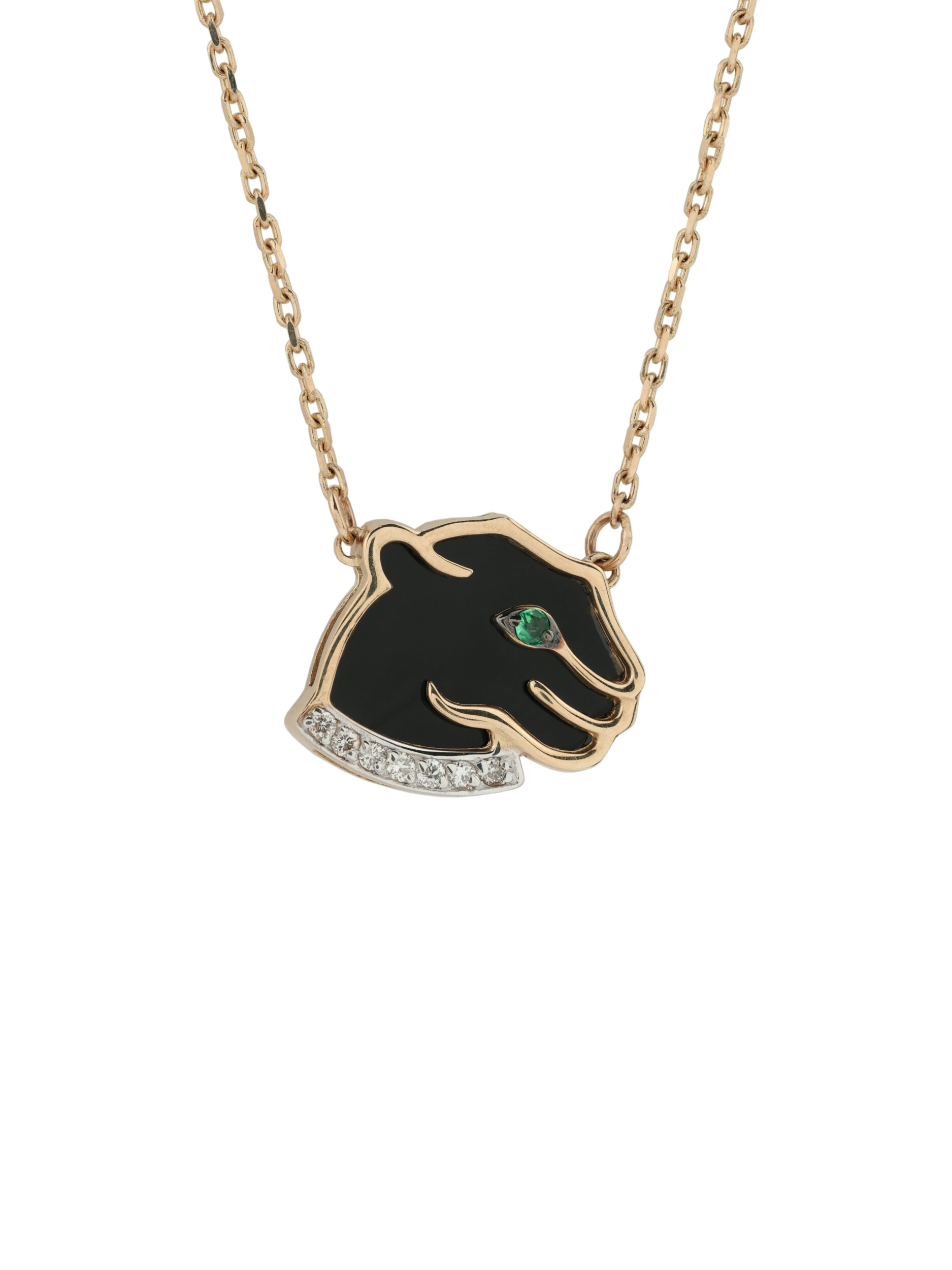 Колье из красного золота 585 пробы c бриллиантами, изумрудом и ониксом