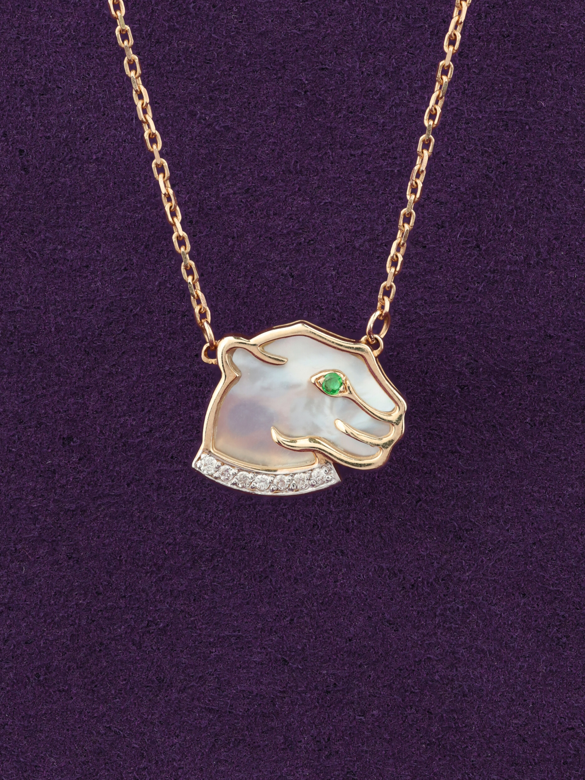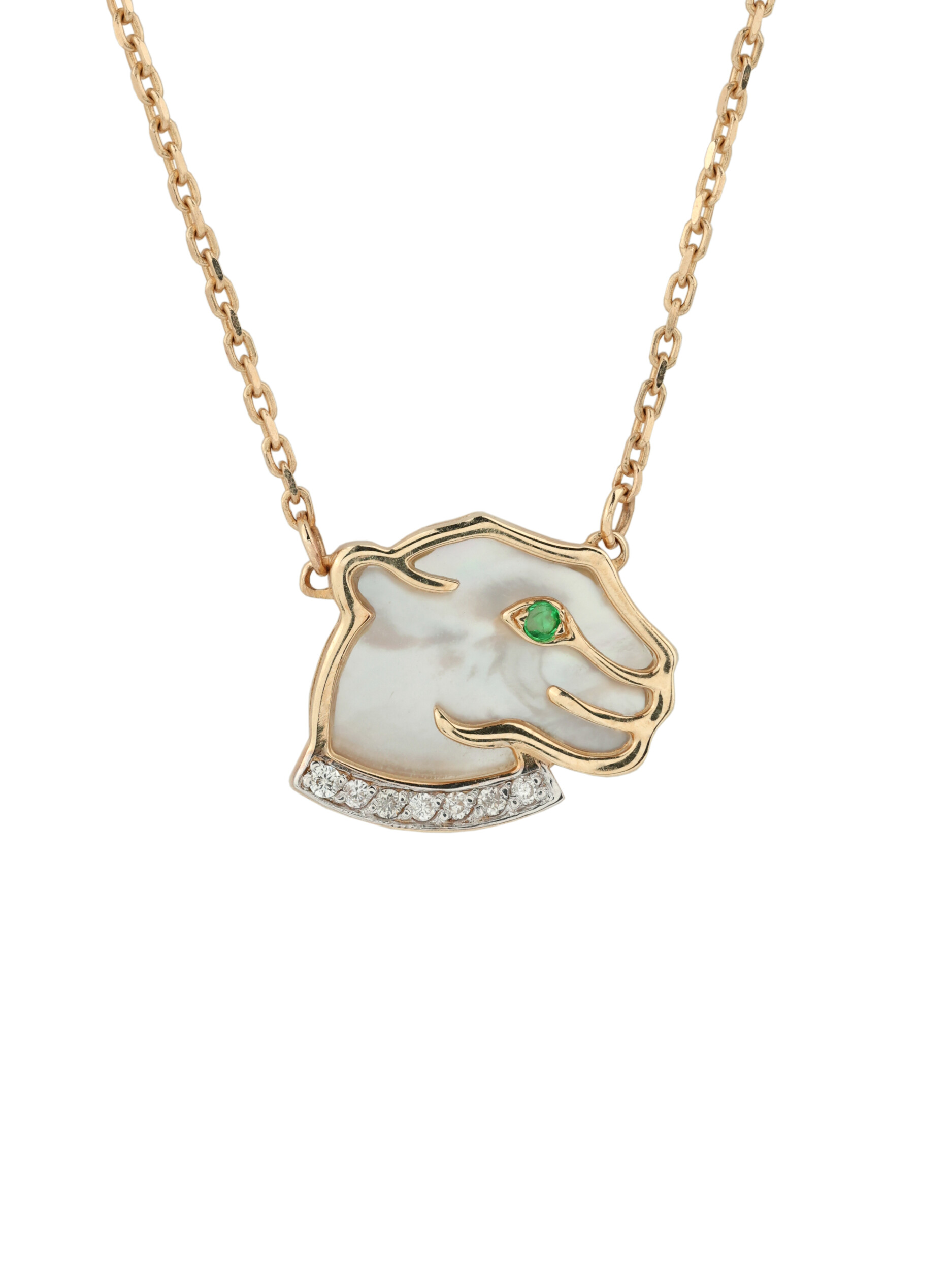 Колье из красного золота 585 пробы c бриллиантами, изумрудом и перламутром
