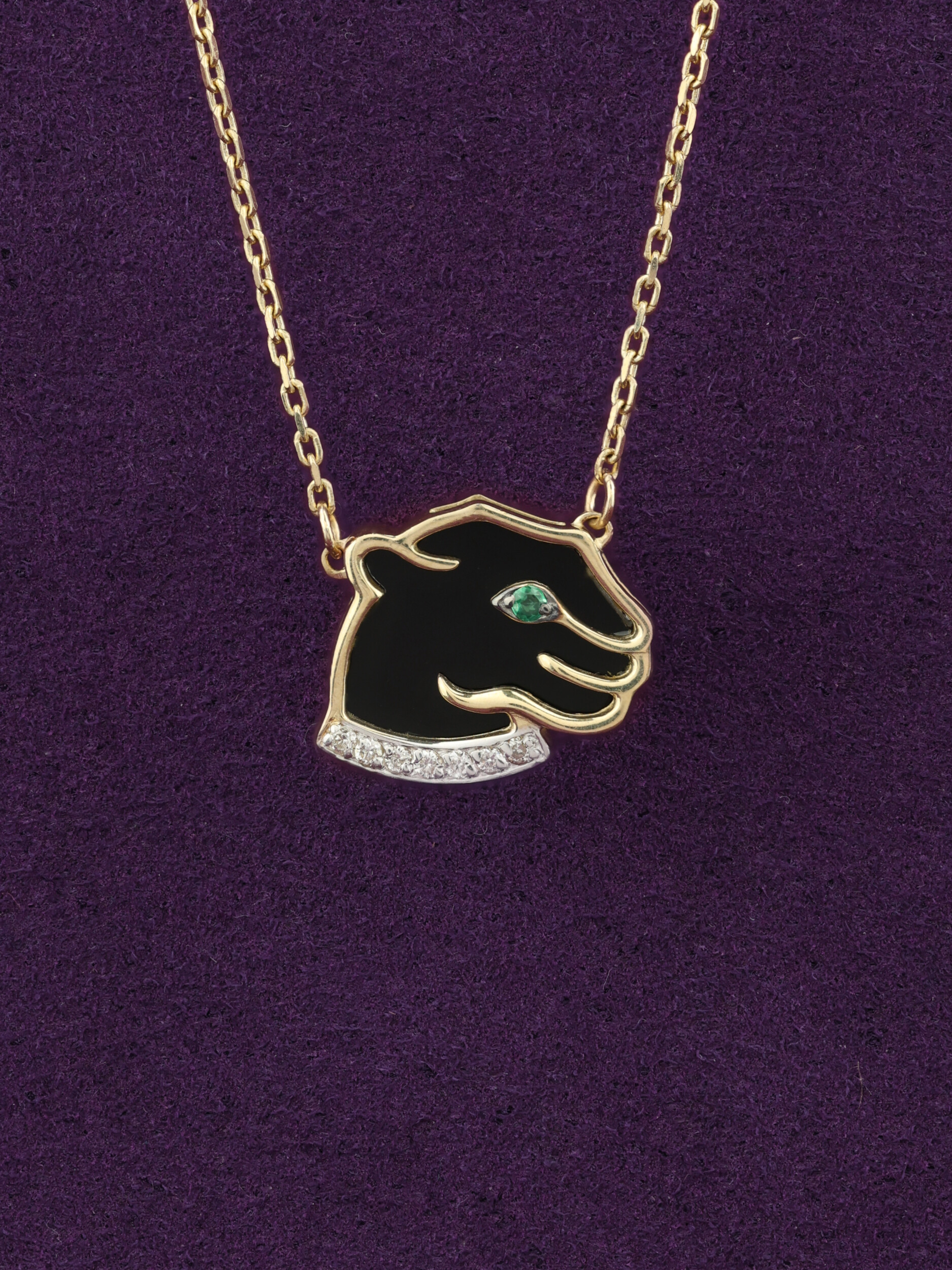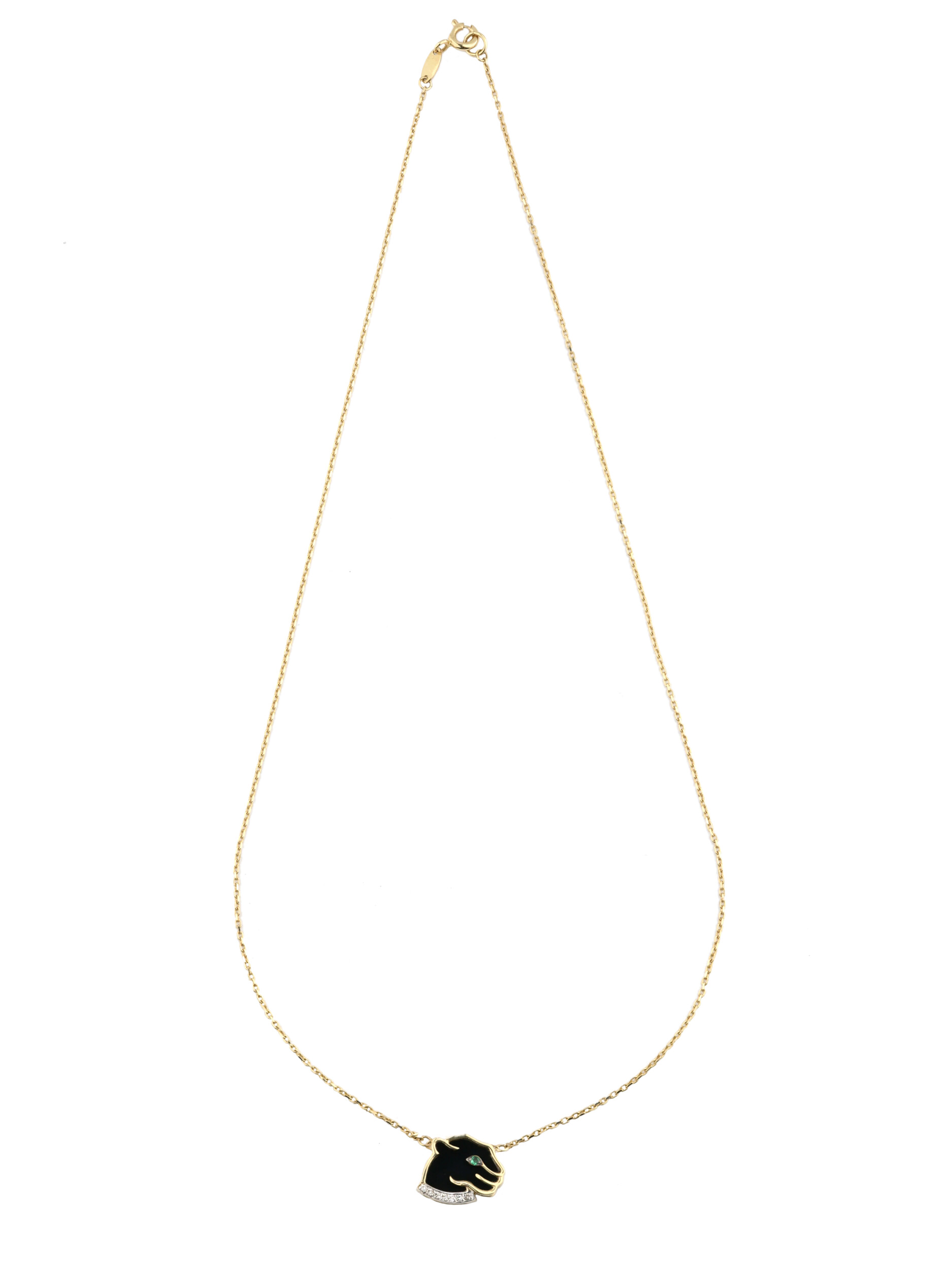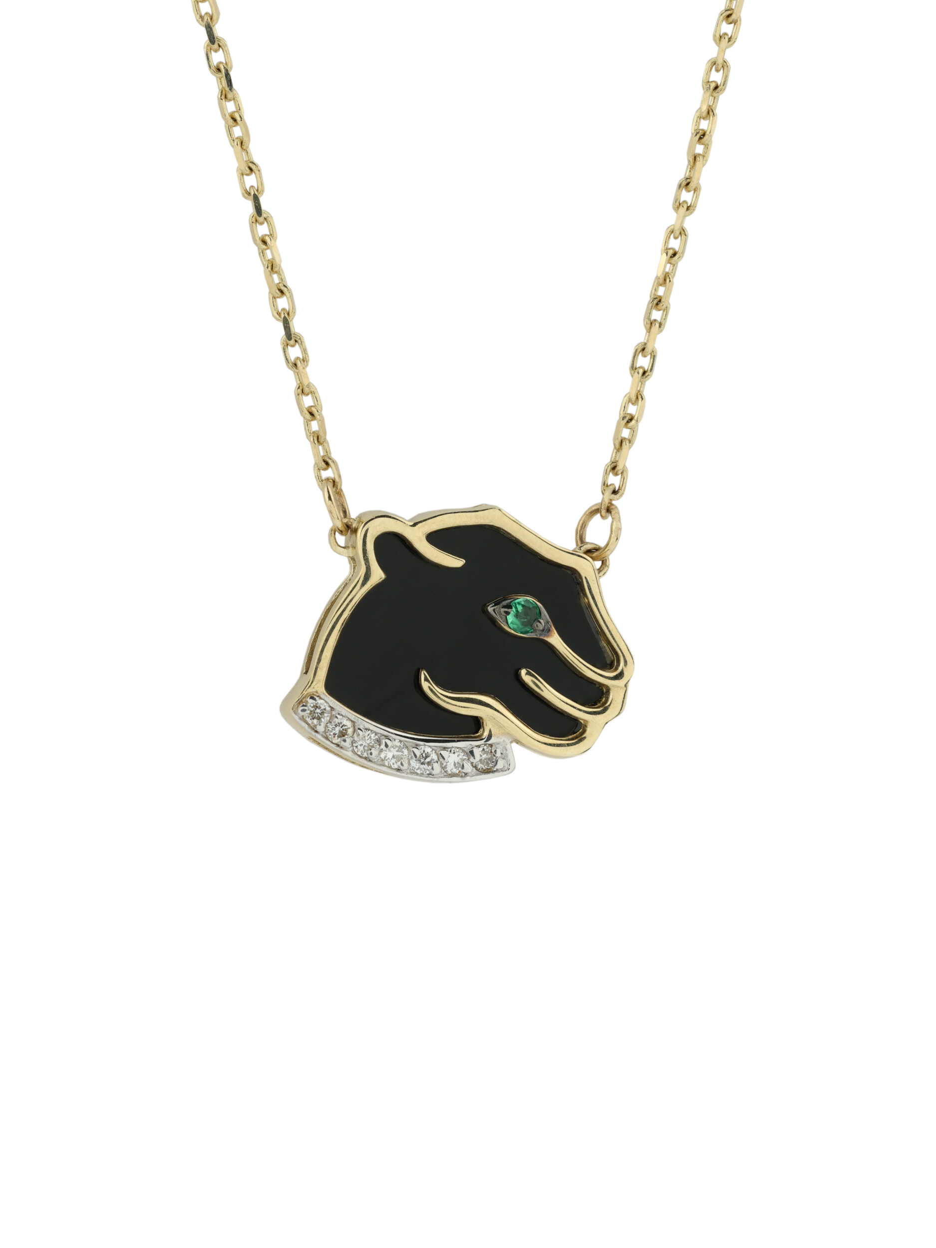 Колье из лимонного золота 585 пробы c бриллиантами, изумрудом и ониксом