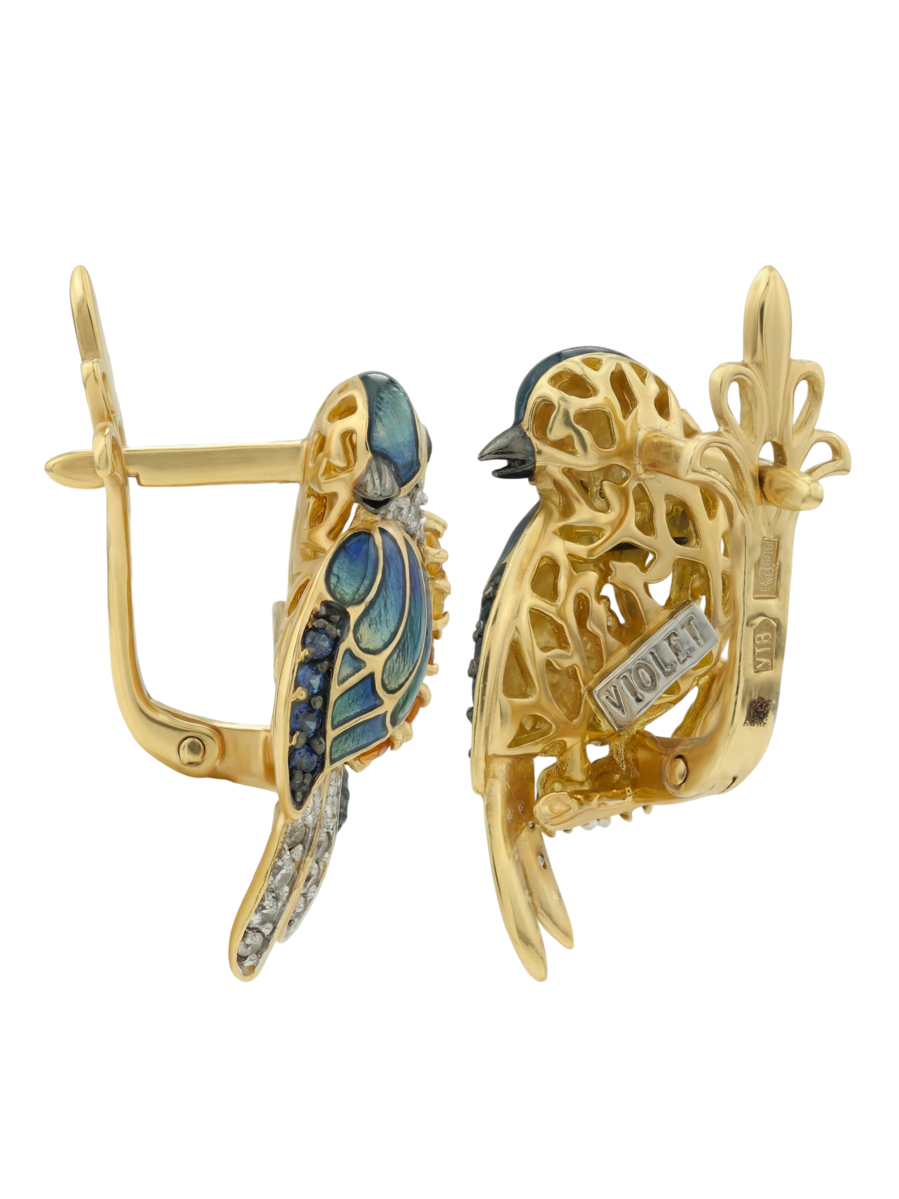 Представляем вашему вниманию эксклюзивные серьги из коллекции De Luxe — Птица-синица, которые станут настоящим украшением вашей ювелирной шкатулки. Эти серьги из лимонного золота 585 пробы выполнены в оригинальном дизайне с изображением птиц, что придает им особый шарм и художественную выразительность. Ювелиры использовали сложную технику покрытия цветной эмалью, чтобы подчеркнуть каждую деталь оперения, создавая яркий и запоминающийся образ.