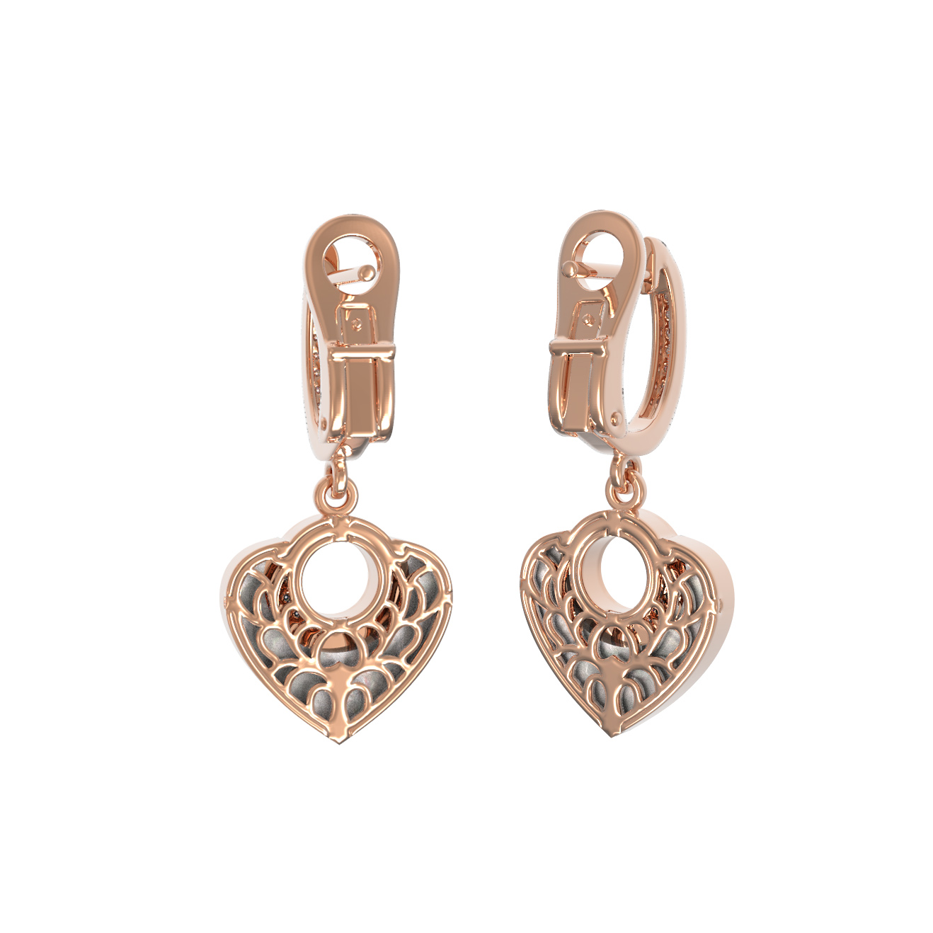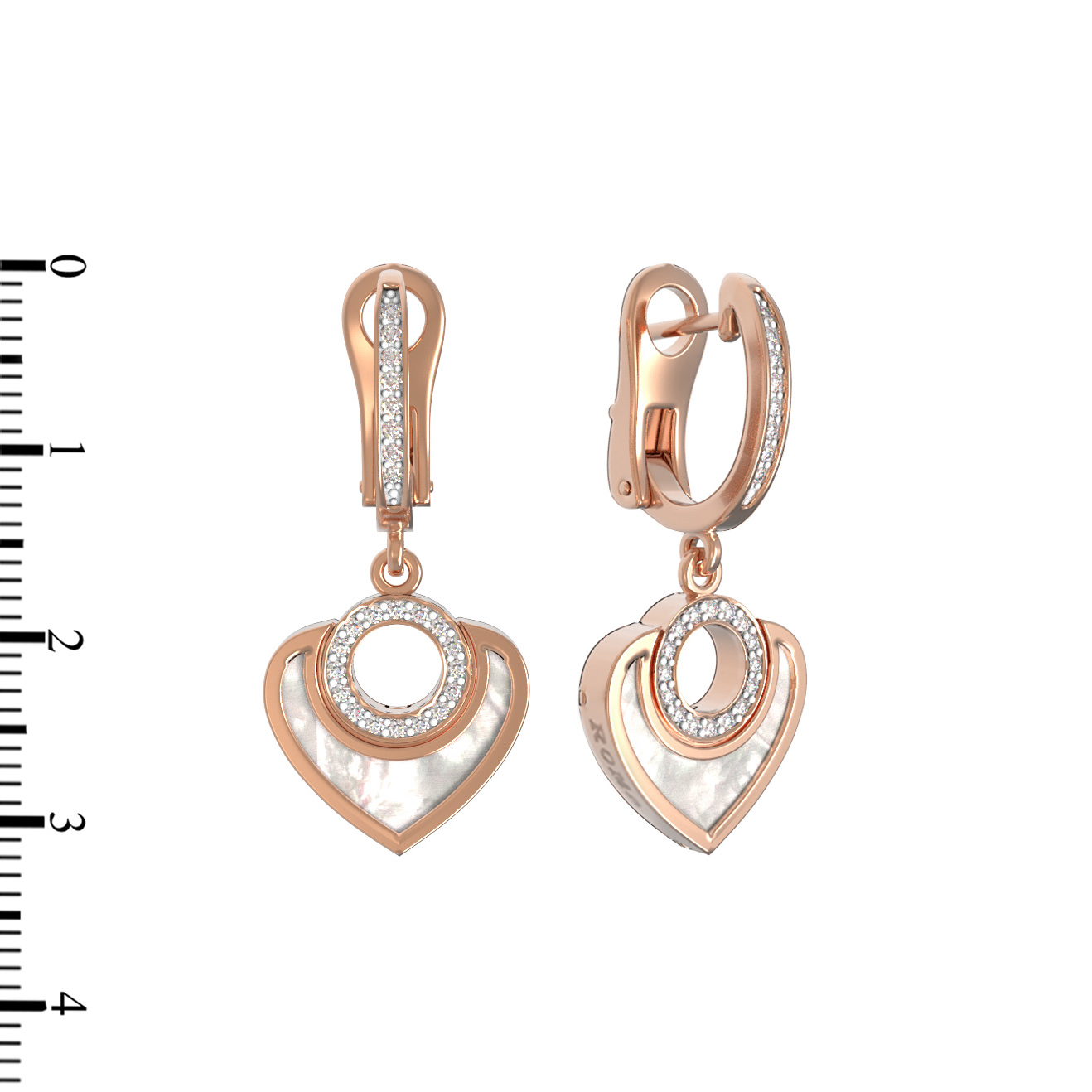 Композиция украшена 48 вставками: сияющими бриллиантами белого цвета круглой огранки и перламутром, обладающим неповторимым мягким свечением. Сочетание теплого оттенка красного золота и прохладного сияния перламутра создает гармоничный контраст, притягивающий восхищенные взгляды. Эти серьги созданы для тех, кто ценит эстетику и качество в каждой детали.