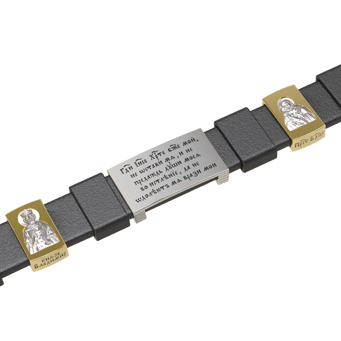 Браслет из белого золота 585 пробы c кожаным шнурком