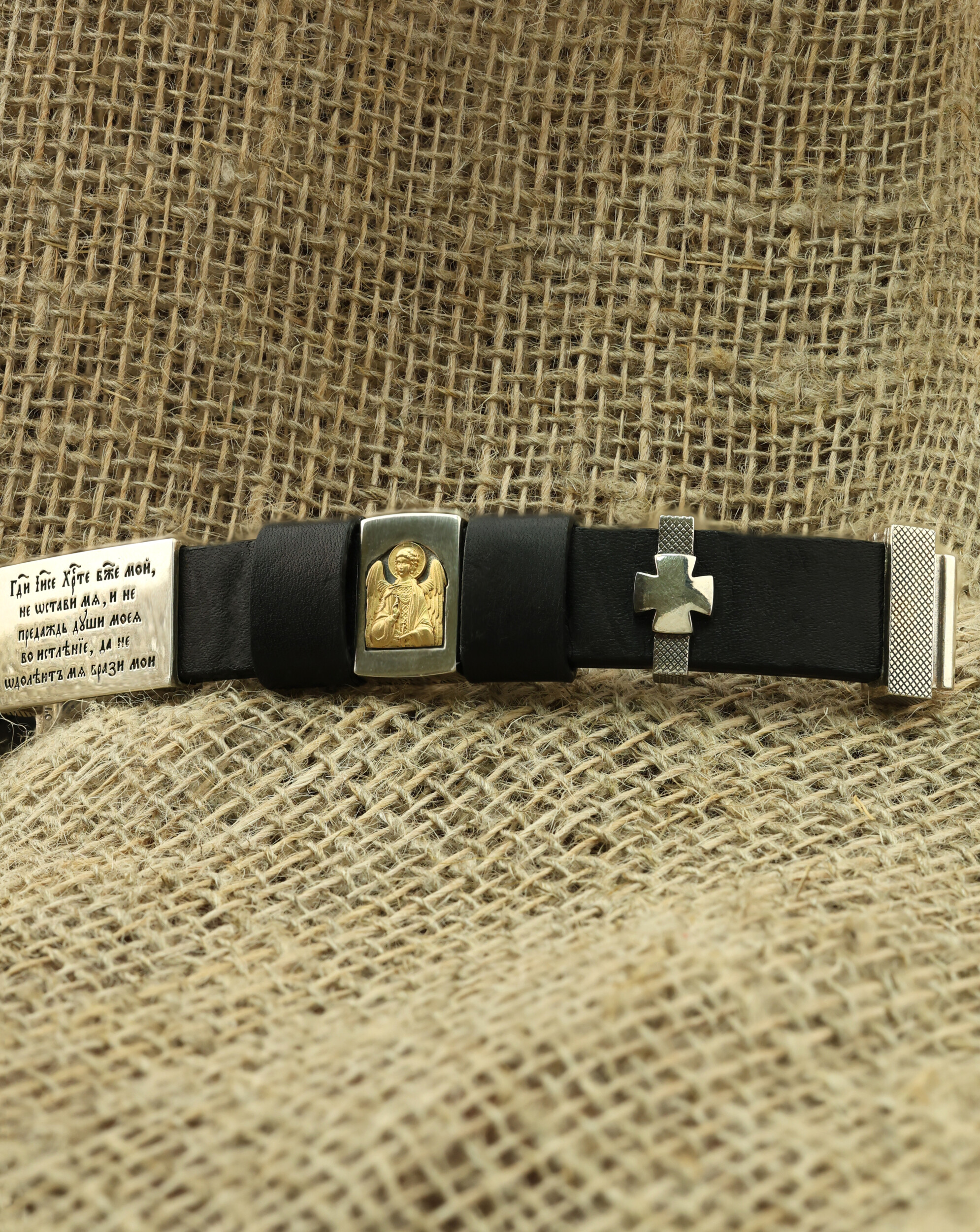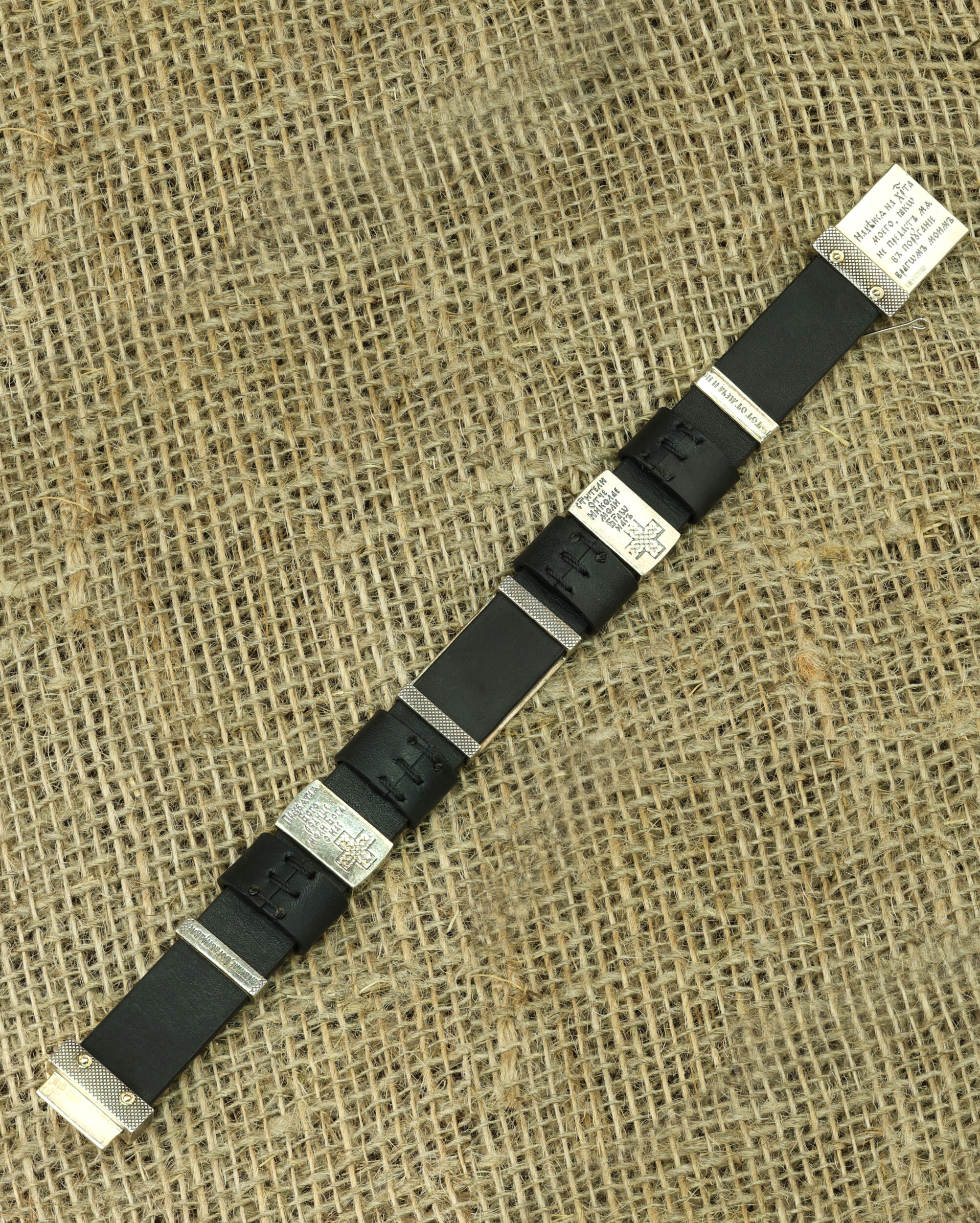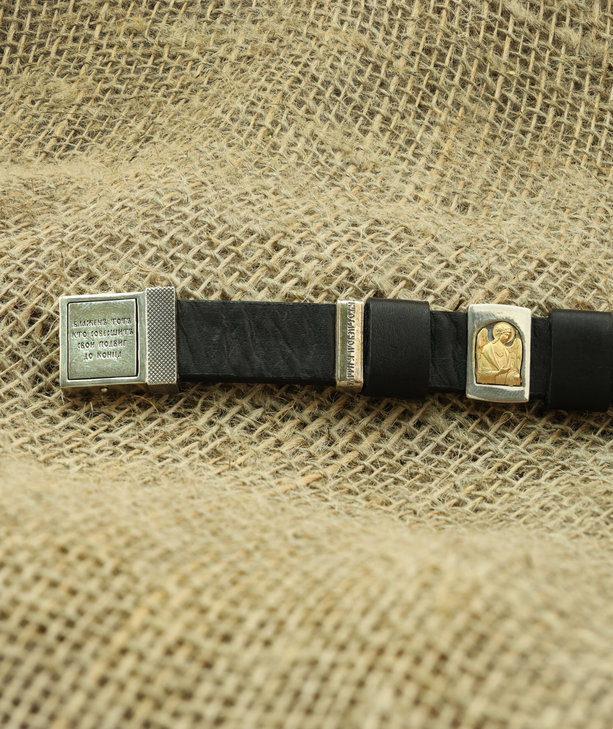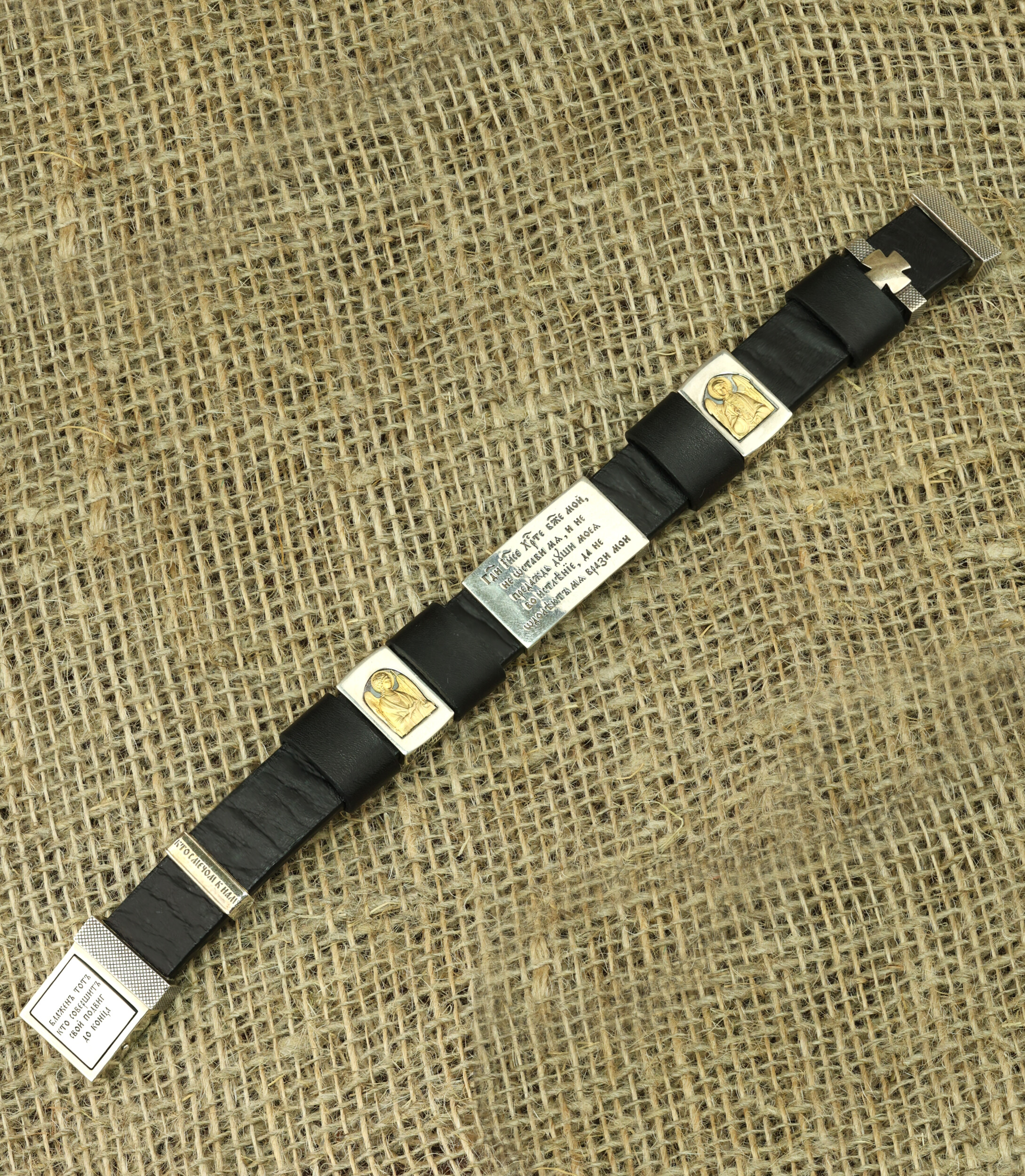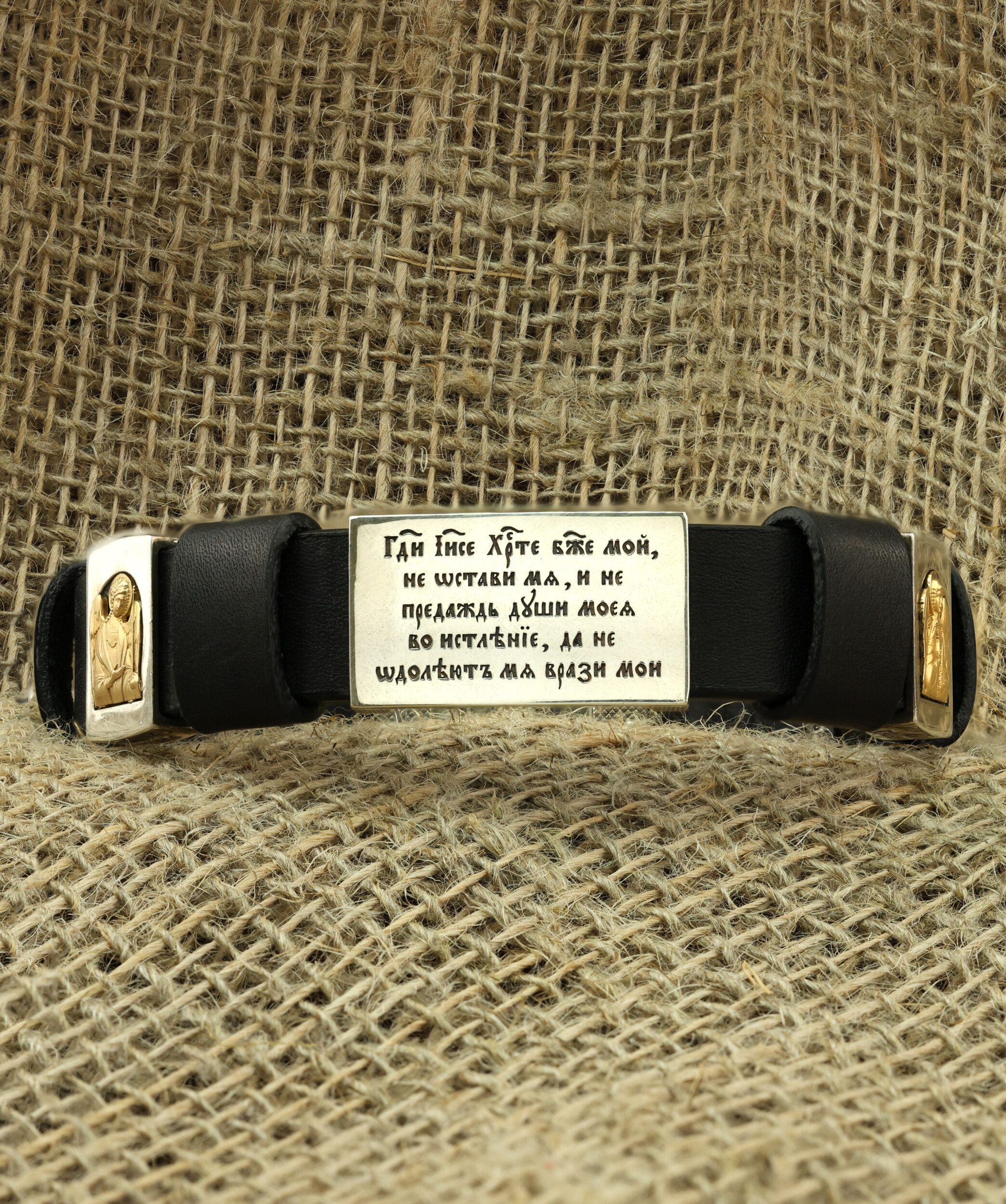 Браслет из серебра 925 пробы и золота 750 пробы c кожаным шнурком