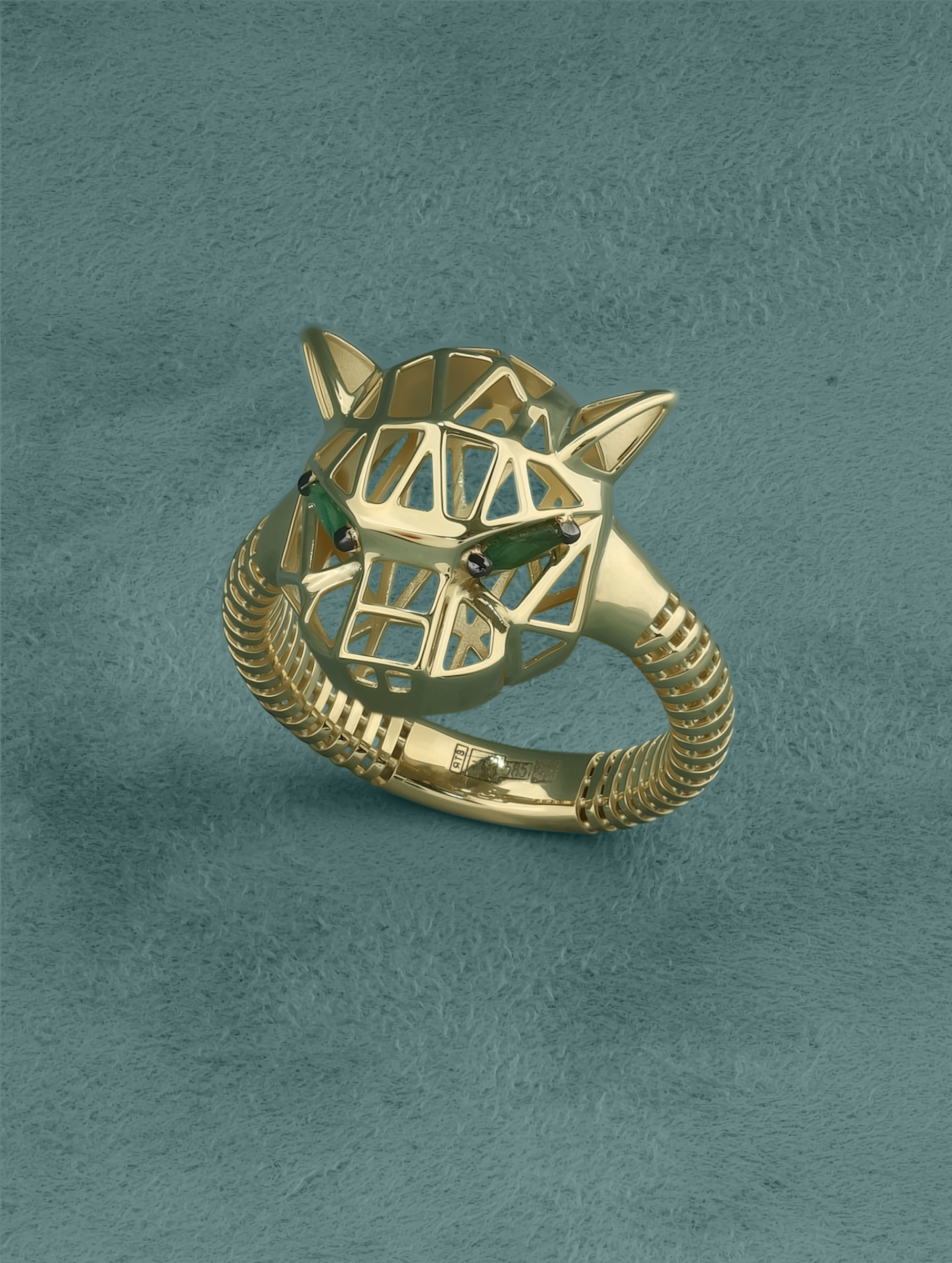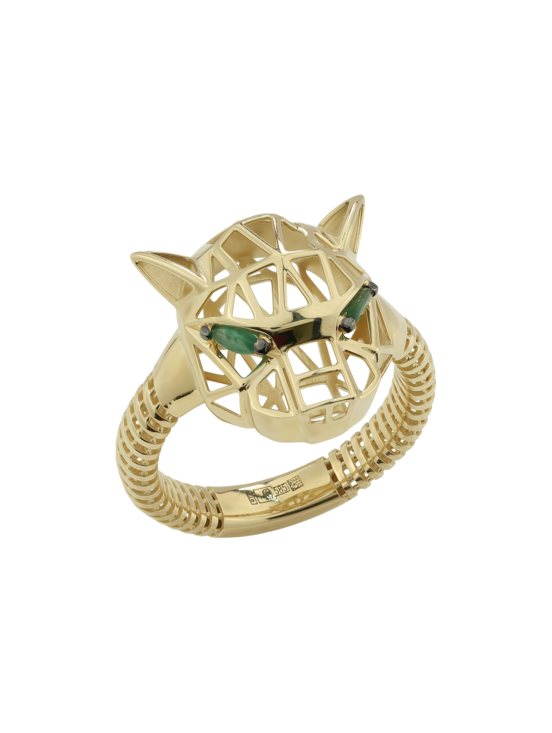 Кольцо из лимонного золота 585 пробы c изумрудом
