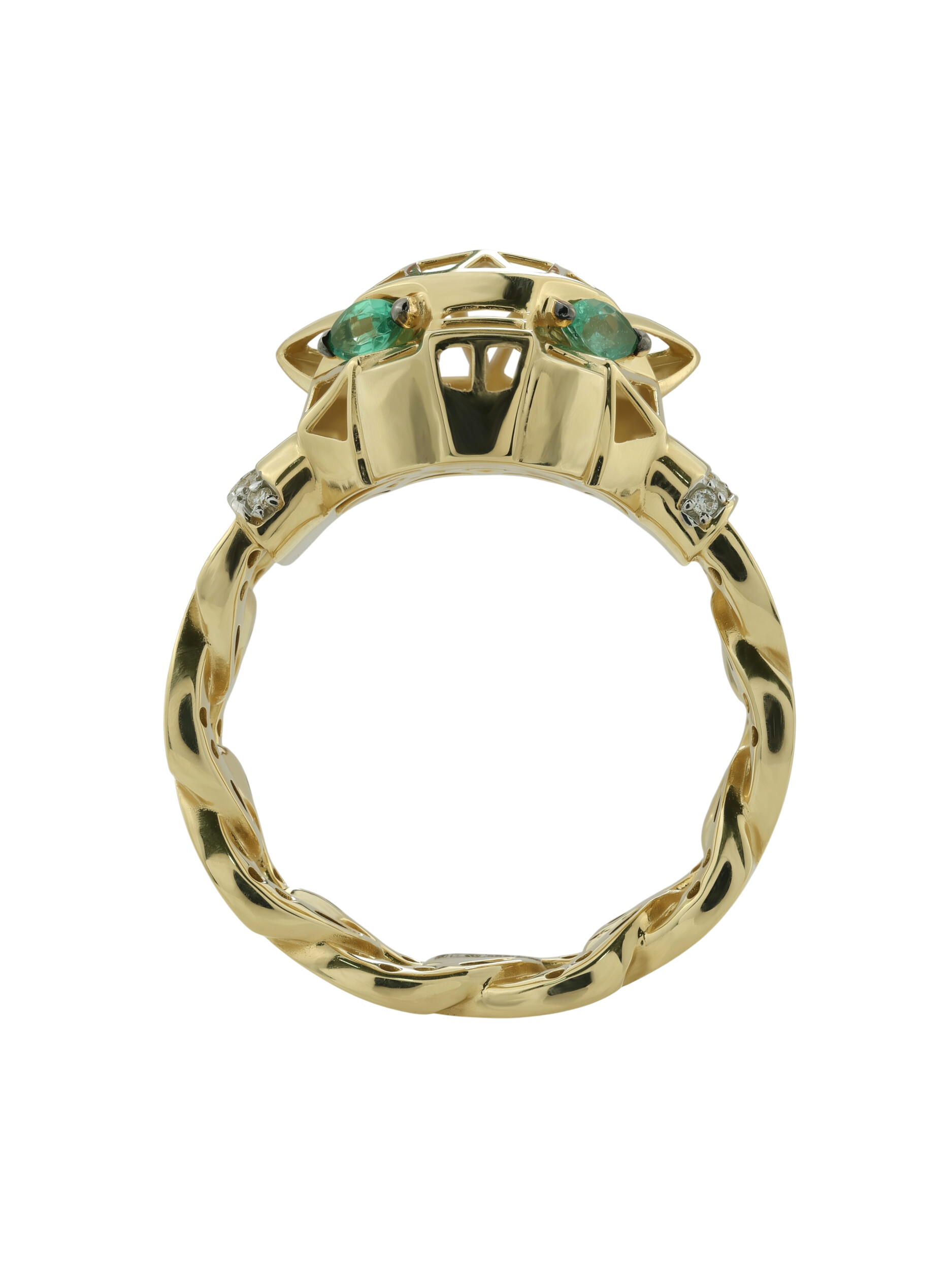 Кольцо из лимонного золота 585 пробы c бриллиантами и изумрудом