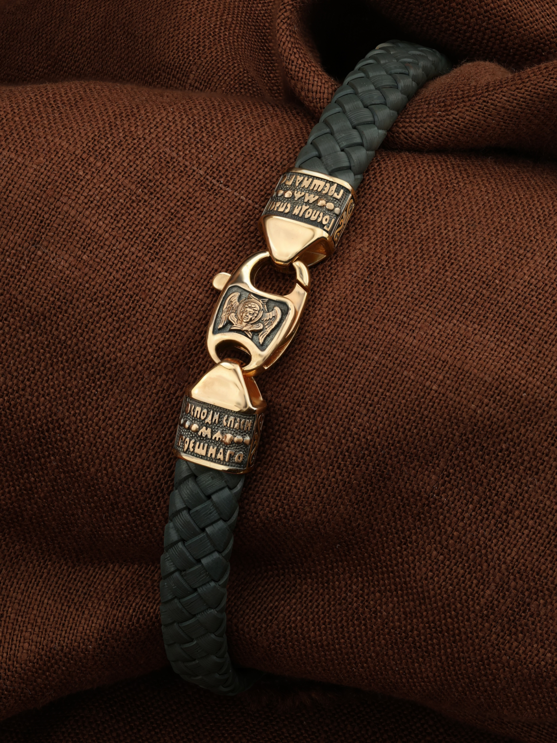На основном звене браслета написана молитва: «Живый в помощи Вышняго, в крове Бога Небеснаго водворится. Речет Господеви: Заступник мой еси и Прибежище мое, Бог мой, и уповаю на Него.»