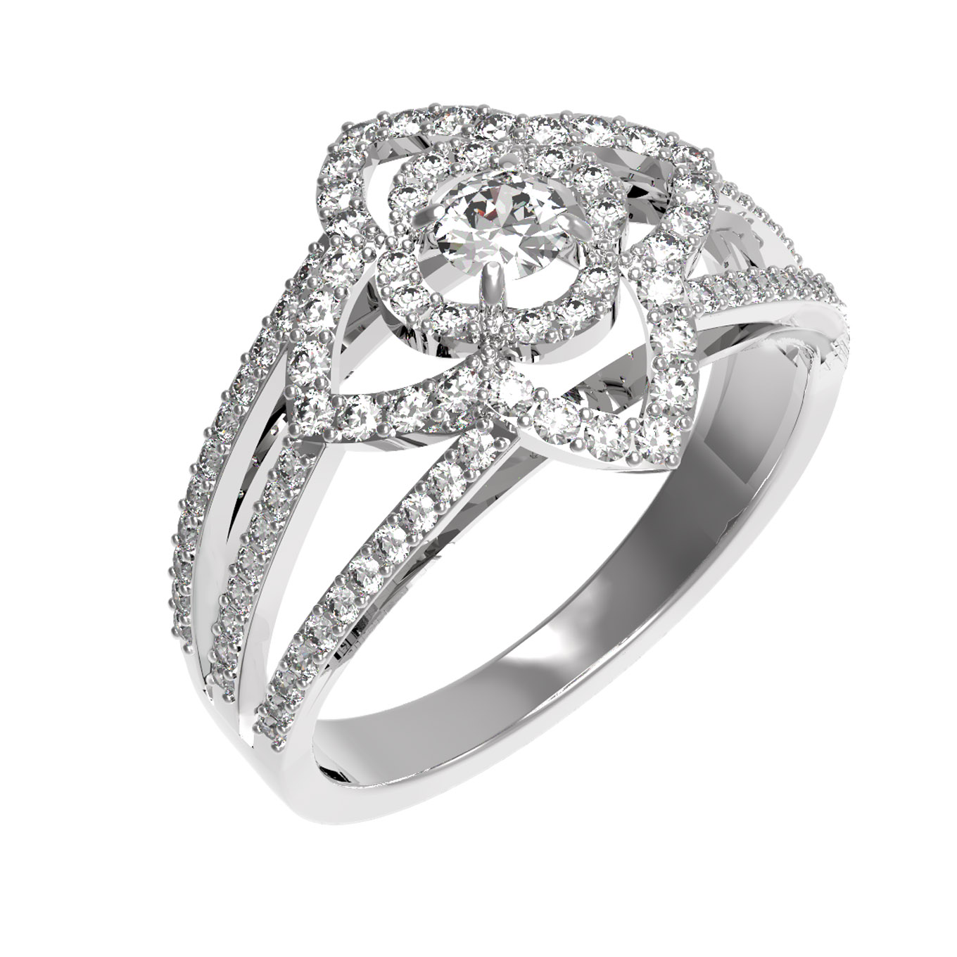 Элегантное кольцо из белого золота 585 пробы станет изысканным акцентом вашего образа, подчеркивая безупречный вкус и статус. Это ювелирное изделие из коллекции De Luxe Бриллианты — Royal привлекает внимание своим сложным, архитектурным дизайном, напоминающим распускающийся цветок, чьи лепестки деликатно очерчены сиянием драгоценных камней. Благородный холодный блеск белого золота идеально гармонирует с чистотой вставок, создавая атмосферу роскоши и торжественности.