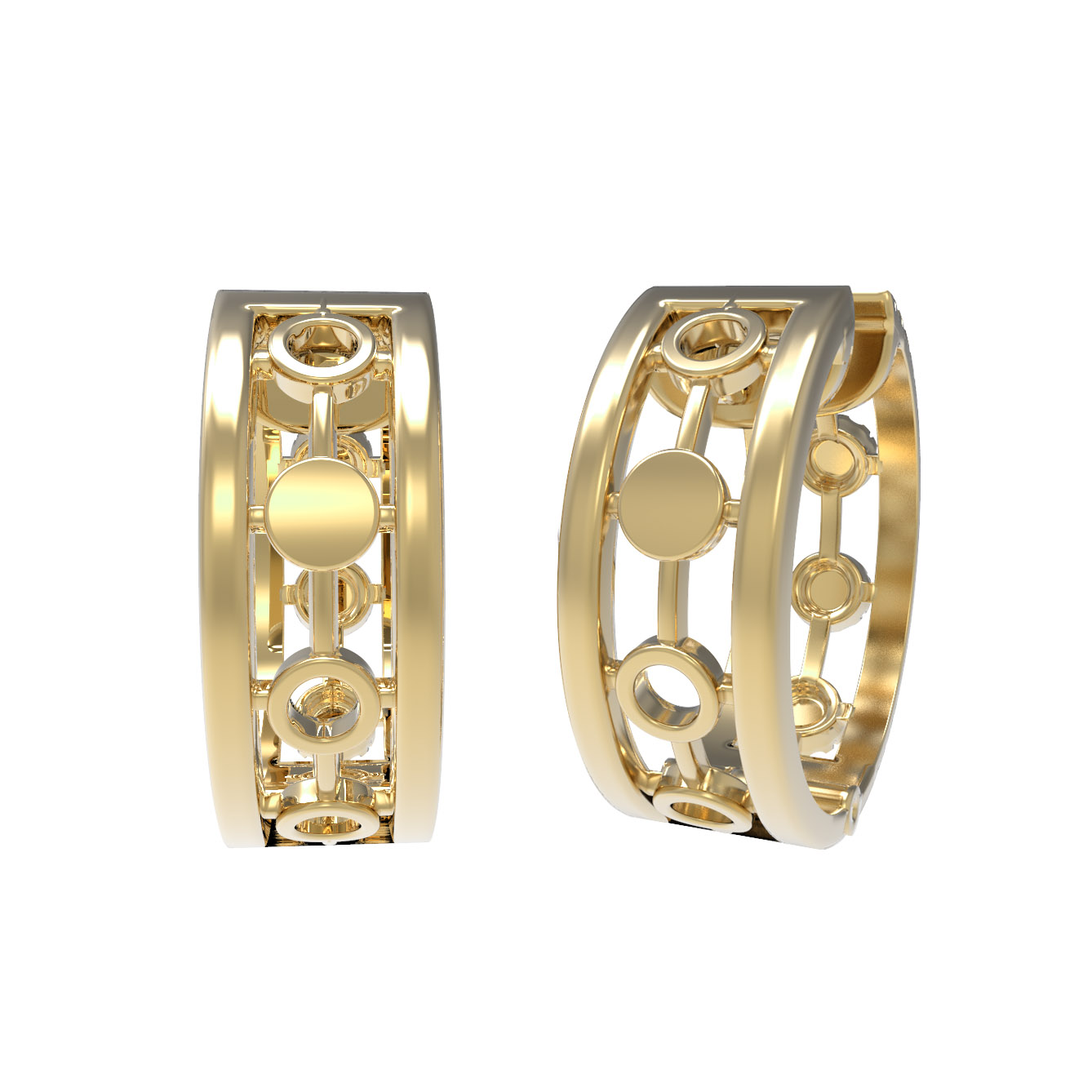 Серьги декорированы 124 бриллиантами круглой формы, создающими невероятную игру света. Белый цвет вставок эффектно контрастирует с теплым металлом, формируя гармоничную композицию. Мастерство исполнения подчеркивается многоуровневой структурой, где акцентные элементы с бриллиантовыми россыпями соседствуют с изящными золотыми деталями. Это украшение универсально — оно создано как для женщин, так и для мужчин, предпочитающих статусные и выразительные аксессуары.
