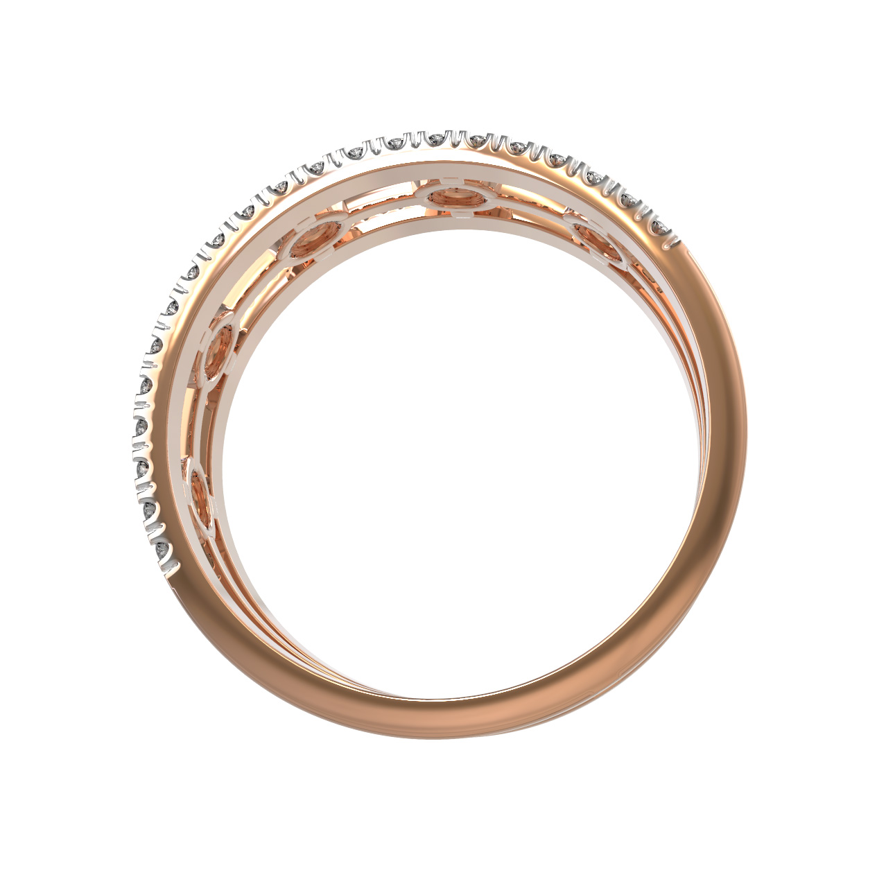Центральным элементом декора выступают 77 бриллиантов круглой огранки. Белый цвет вставок создает выразительный контраст с теплотой красного золота, усиливая игру света при каждом движении. Универсальный дизайн позволяет использовать это кольцо как для женщин, так и для мужчин, что делает его отличным выбором для создания парных комплектов. Изделие представлено в широкой размерной сетке от 16 до 23, что гарантирует идеальную посадку на пальце.