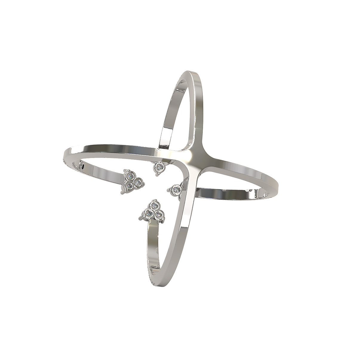 Кольцо из белого золота с бриллиантами — это воплощение современного ювелирного искусства, сочетающее в себе смелый дизайн и классическую роскошь. Это изысканное украшение из коллекции De Luxe Бриллианты — Royal станет идеальным дополнением образа для женщин и мужчин, которые ценят оригинальные формы и безупречное качество исполнения. Уникальная конструкция изделия напоминает изящный крестообразный силуэт, который деликатно подчеркивает утонченность линий пальцев.