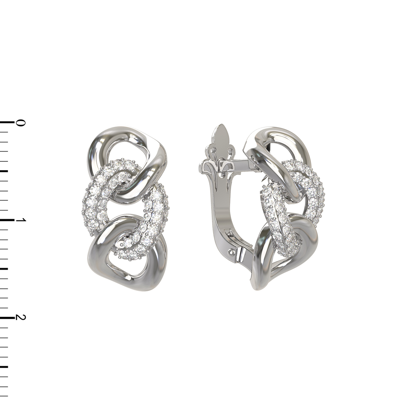 Серьги из белого золота 585 пробы из коллекции De Luxe Бриллианты — Royal представляют собой гармоничное сочетание современного дизайна и классической роскоши. Это изысканное ювелирное украшение создано для тех, кто ценит эстетику и безупречный стиль. Плавные, переплетающиеся формы изделия, выполненные в благородном белом цвете, подчеркивают статус и утонченный вкус владельца.