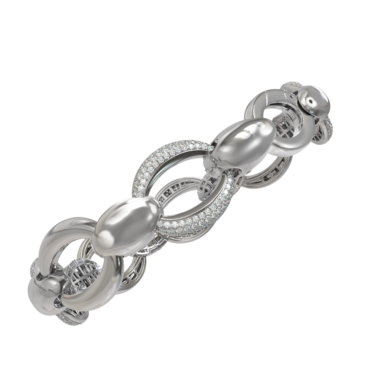 Этот браслет — универсальное ювелирное решение, которое одинаково эффектно смотрится как на женщинах, так и на мужчинах. Мастерство исполнения подчеркивает сложность дизайна: чередование акцентных элементов с камнями и лаконичных звеньев создает динамичный и современный стиль. Ювелирное изделие обладает высокой прочностью, что позволяет носить его ежедневно, сохраняя первозданный вид.