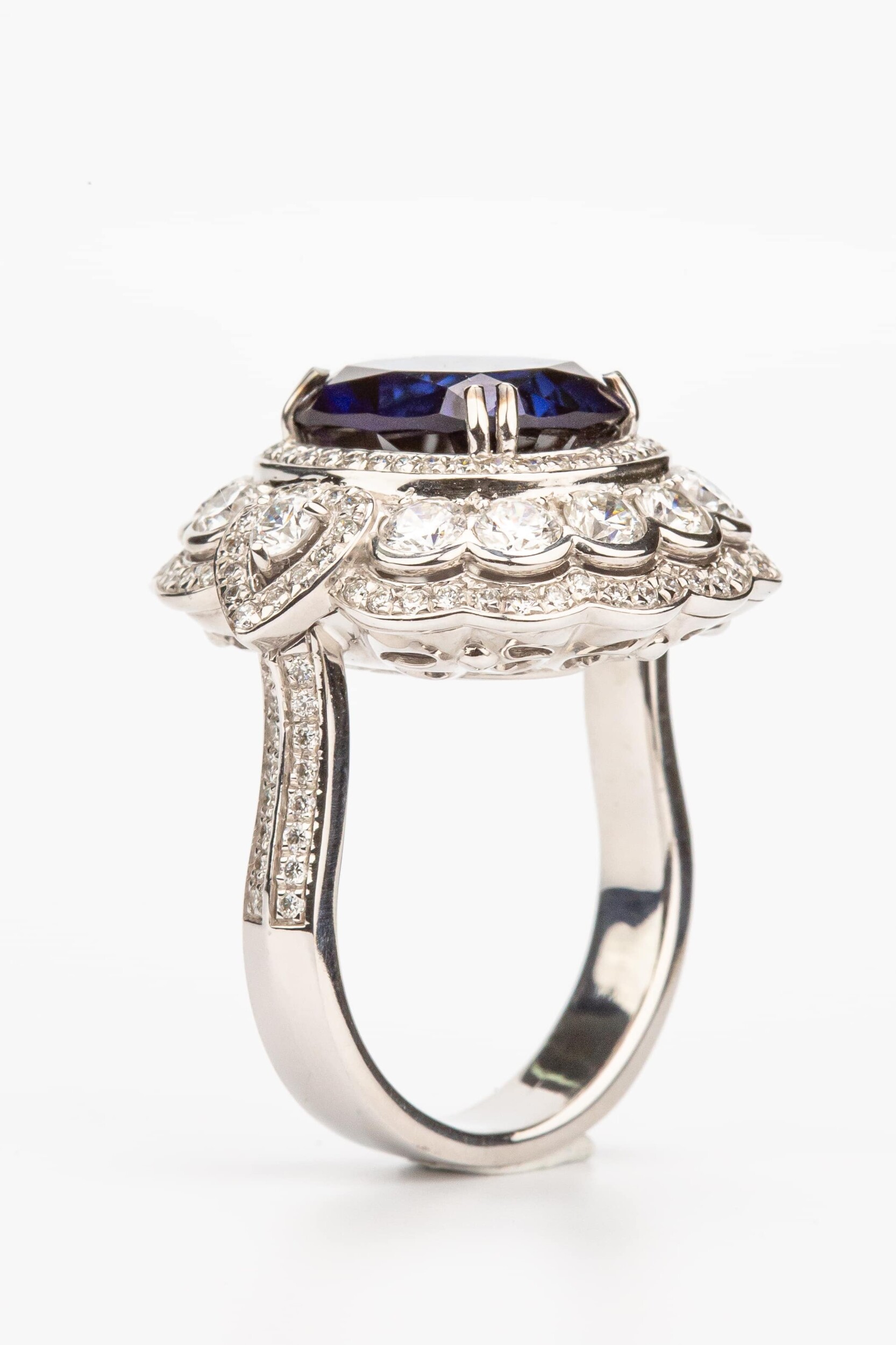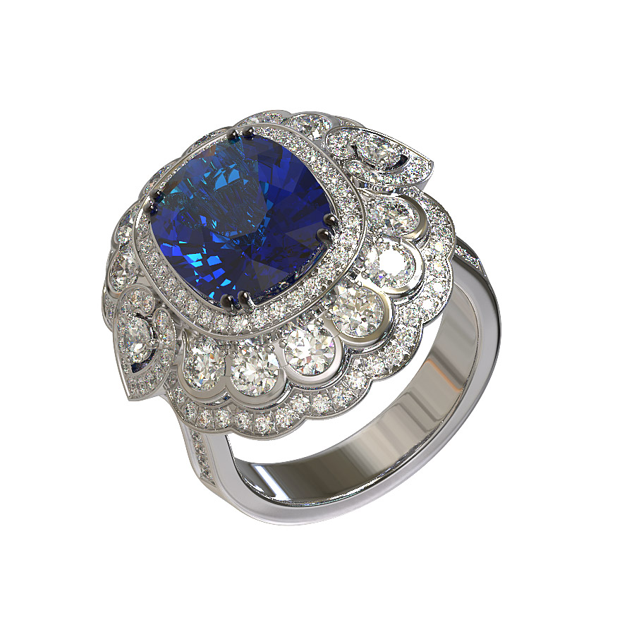 Кольцо из белого золота c бриллиантами и сапфиром