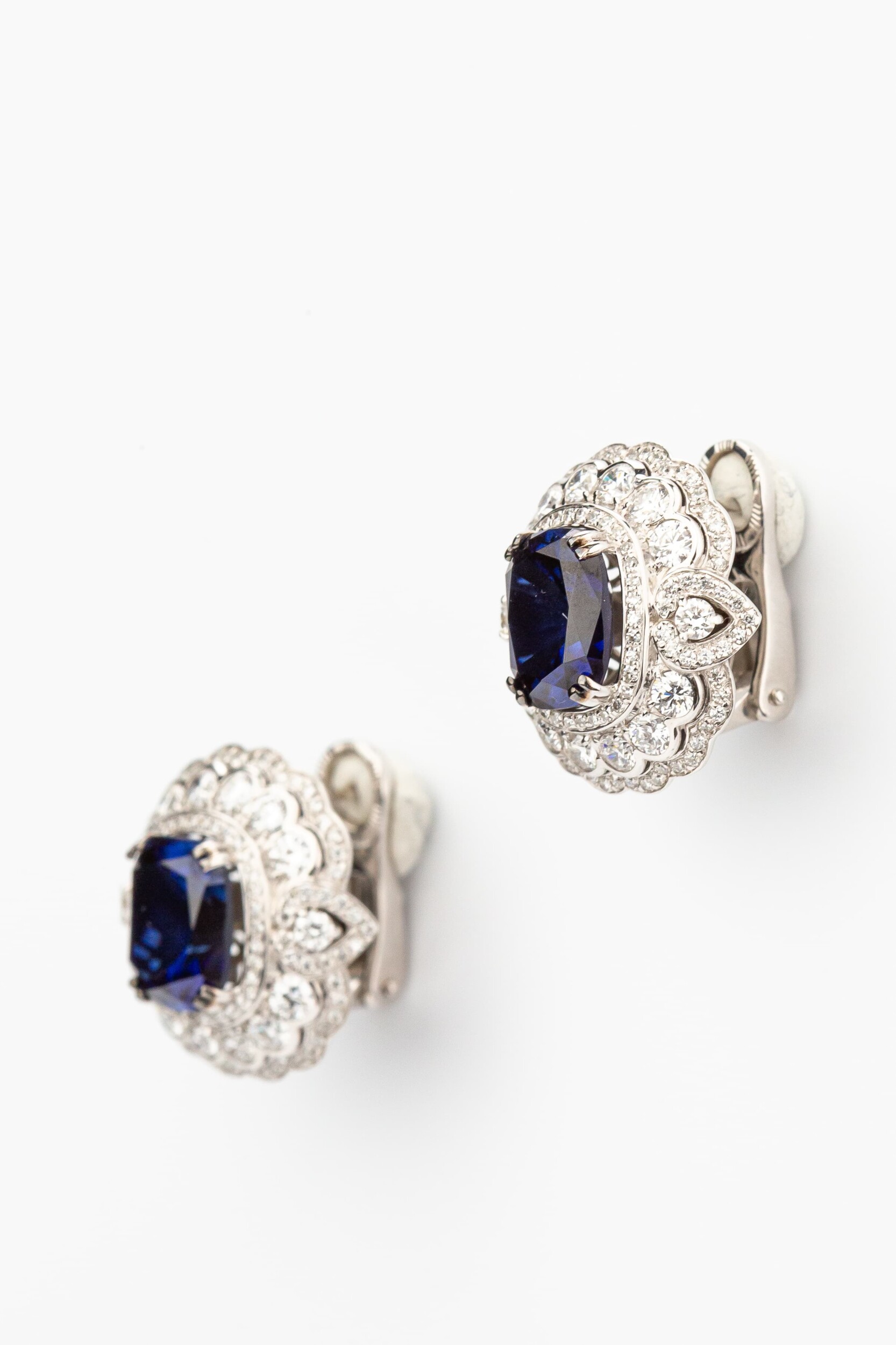 Белое золото с холодным блеском идеально подчеркивает контраст между прозрачностью бриллиантов и бархатистой глубиной сапфиров. Эти серьги подойдут как для женщин, так и для мужчин, предпочитающих премиальные аксессуары. Сложная многоуровневая форма изделия делает его центральным элементом любого образа, будь то торжественное событие или светский выход. Благодаря выверенной композиции, данная модель органично вписывается в комплекты, позволяя создавать завершенные ювелирные ансамбли. Эти серьги — инвестиция в ваш гардероб, сочетающая в себе классические традиции и высокое качество исполнения.