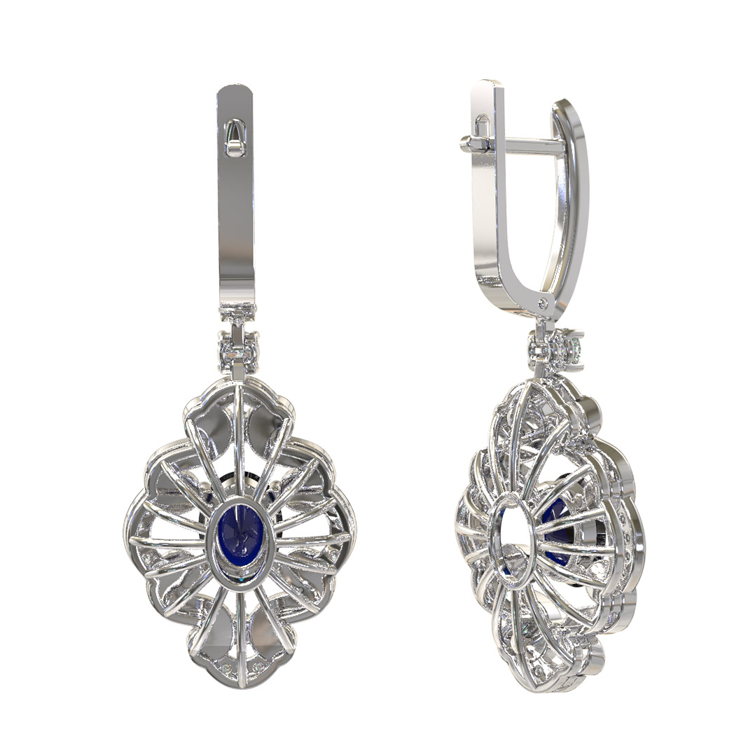 Серьги из белого золота c бриллиантами и сапфиром