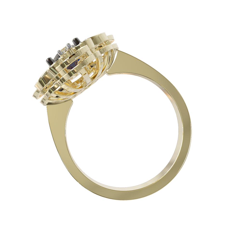 Кольцо из лимонного золота c бриллиантами и сапфиром