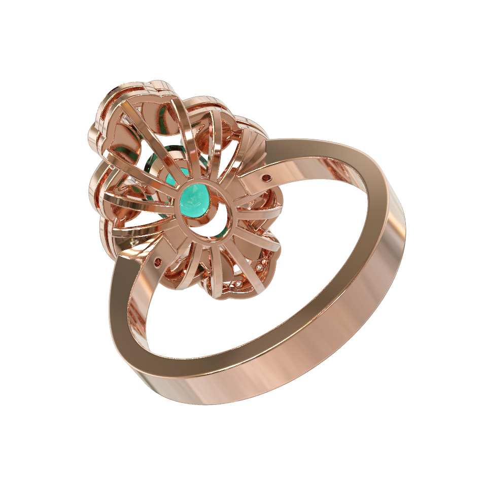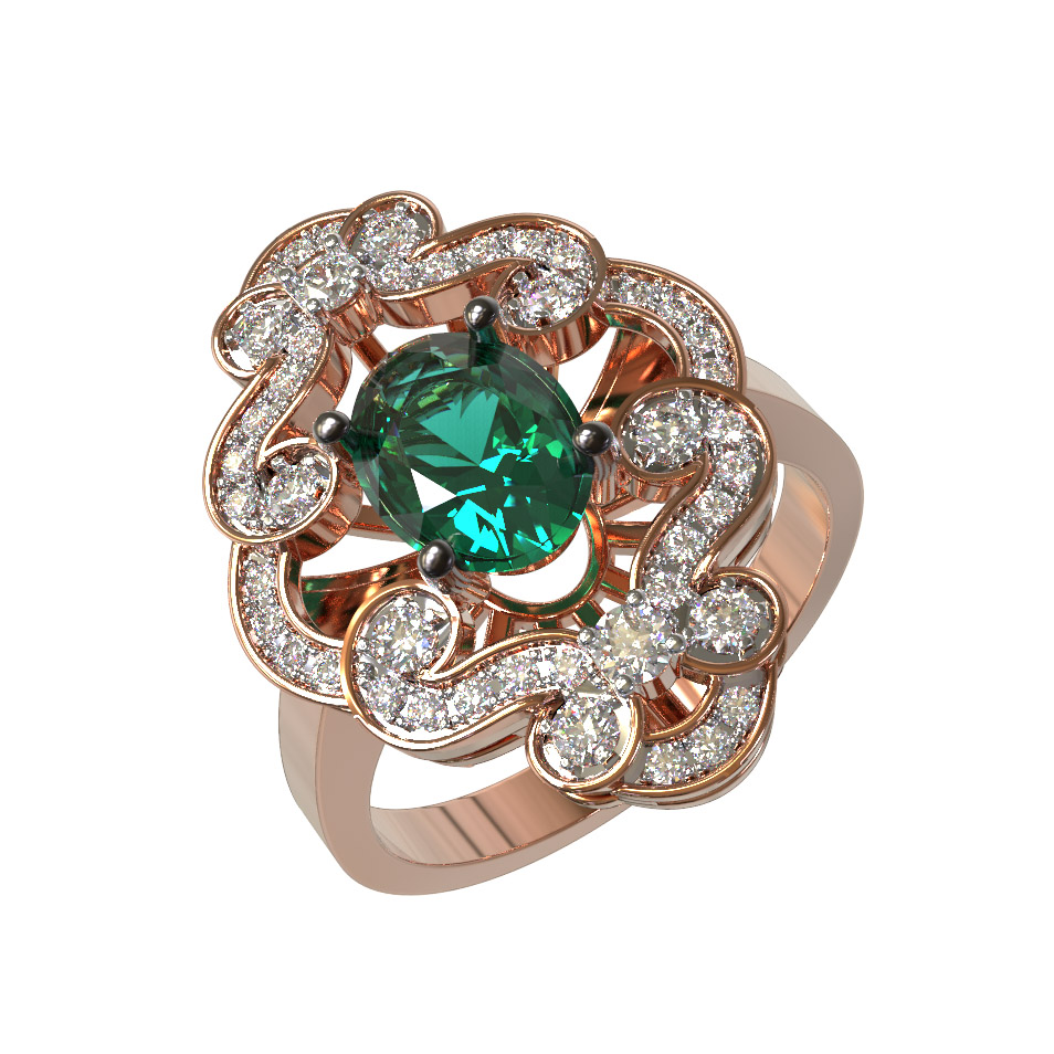 Кольцо из красного золота 585 пробы c бриллиантами и изумрудом