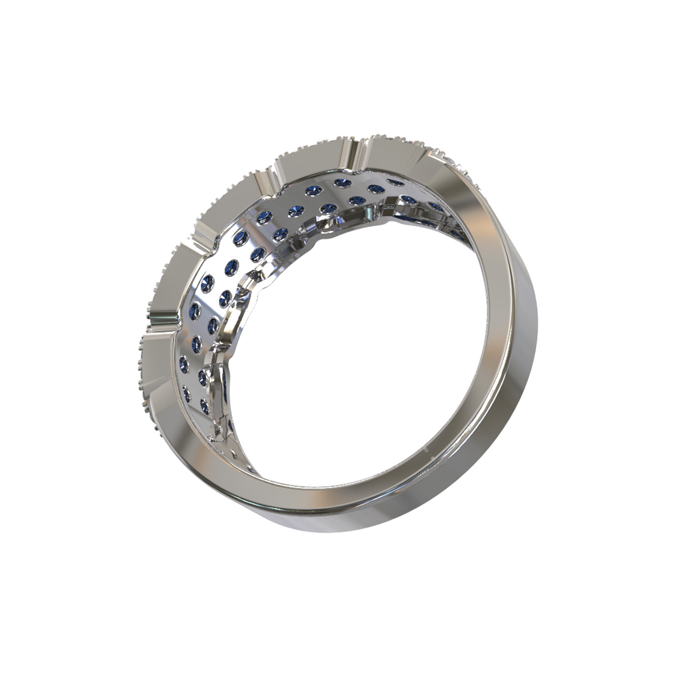Композиция украшена 80 камнями круглой огранки, создающими великолепный контраст. В центре внимания — насыщенные синие сапфиры, которые обрамлены сверкающими белыми бриллиантами. Сочетание глубокого синего и чистого белого цветов подчеркивает статусность изделия. Это ювелирное украшение подойдет как для женщин, так и для мужчин, обладающих чувством стиля.