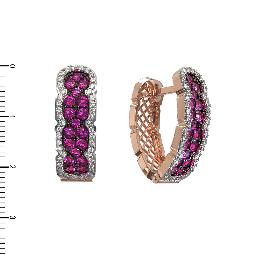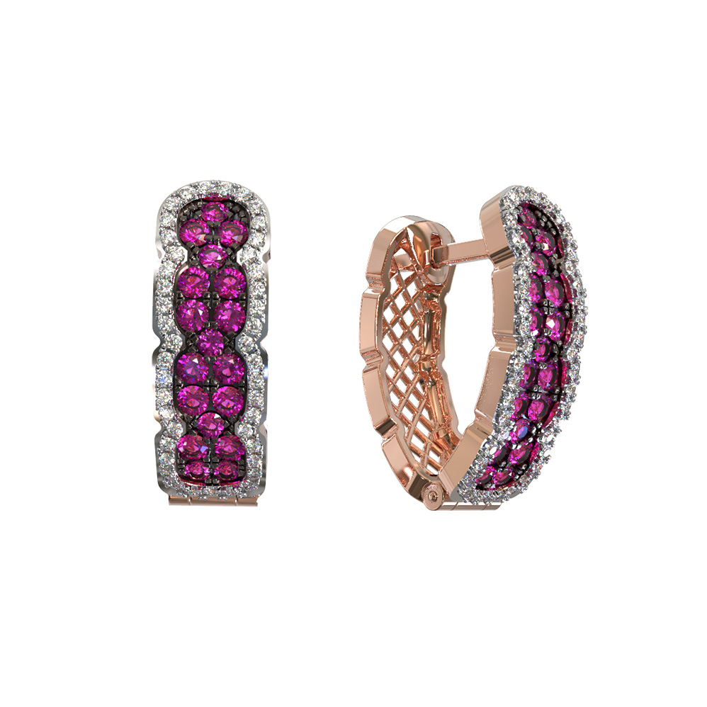 Великолепная игра света достигается за счет обрамления вставок искрящимися белыми бриллиантами. Всего в изделии использовано 122 вставки круглой формы, которые гармонично дополняют друг друга, создавая эффектный и динамичный рисунок. Такие серьги из красного золота одинаково подходят как для женщин, так и для мужчин, предпочитающих премиальные ювелирные решения с характером.