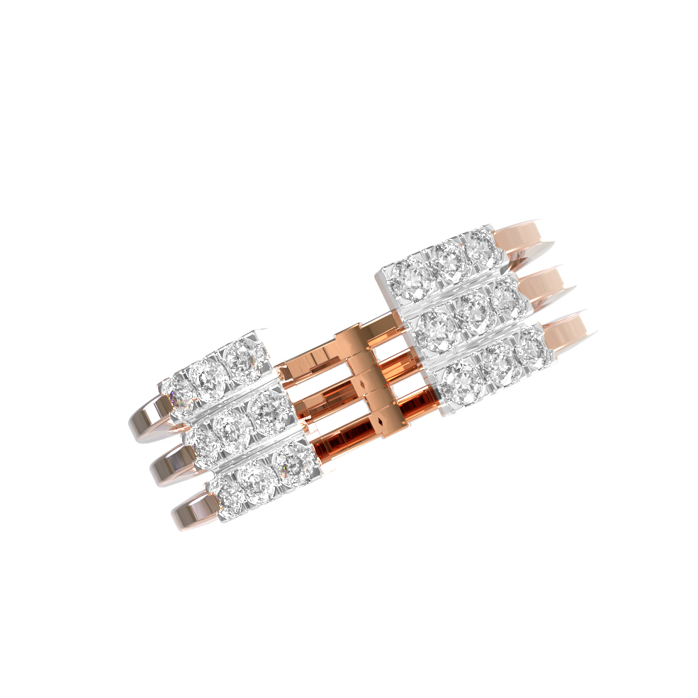 Центральными элементами композиции выступают 21 бриллиант круглой формы огранки с безупречным белым цветом вставок. Камни расположены в три ряда на каждой из сторон, создавая яркое сияние при каждом движении руки. Это кольцо универсально и гармонично дополнит как строгий деловой образ, так и вечерний наряд. Благодаря своей лаконичной, но выразительной эстетике, данное ювелирное изделие подойдет как для женщин, так и для мужчин, предпочитающих премиальные аксессуары.