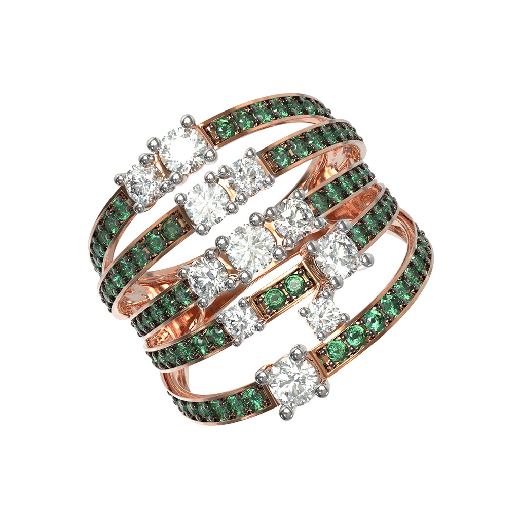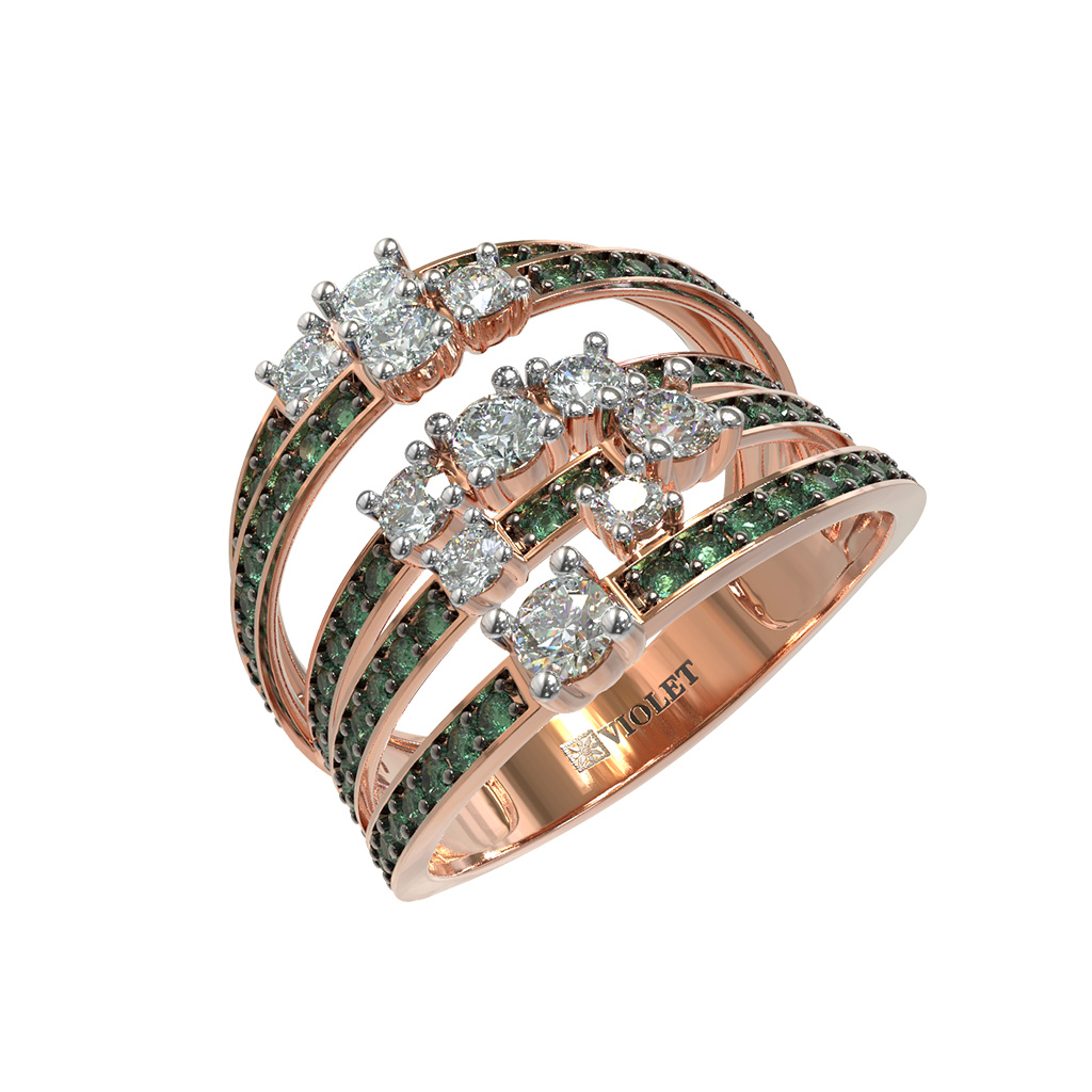 Кольцо из красного золота 585 пробы c бриллиантами и изумрудом