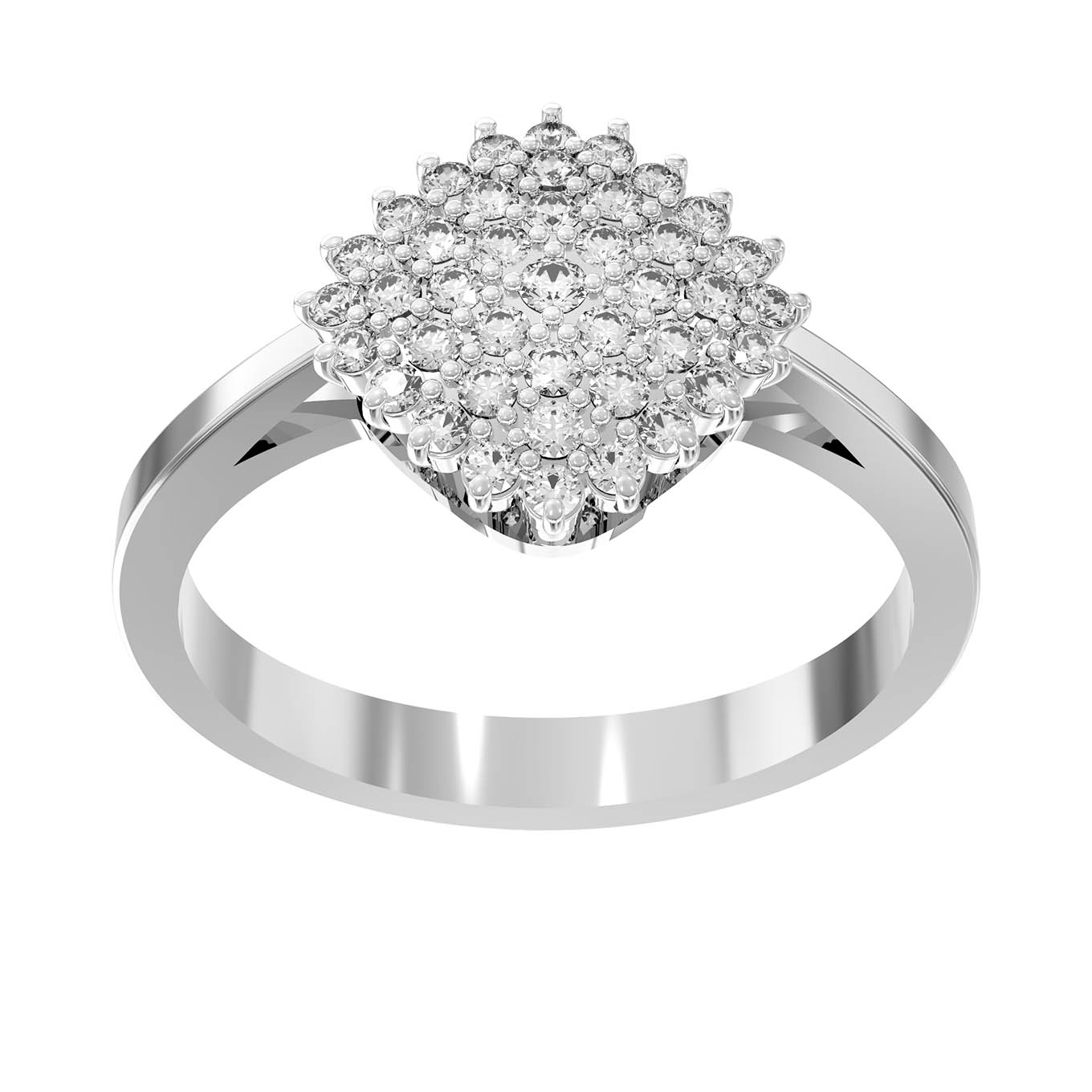 Элегантное кольцо из белого золота 585 пробы из коллекции De Luxe Бриллианты — Radiant станет воплощением вашего безупречного вкуса и статуса. Дизайн этого украшения объединяет классическую роскошь и современные ювелирные традиции, создавая гармоничный образ. Центральная часть изделия привлекает внимание своей сложной композицией: 41 сверкающий бриллиант круглой формы с белым цветом вставок образует эффектную и объемную площадку, напоминающую сияющий цветок или драгоценное созвездие. Камни плотно прилегают друг к другу, что создает непрерывный поток холодного, чистого блеска.