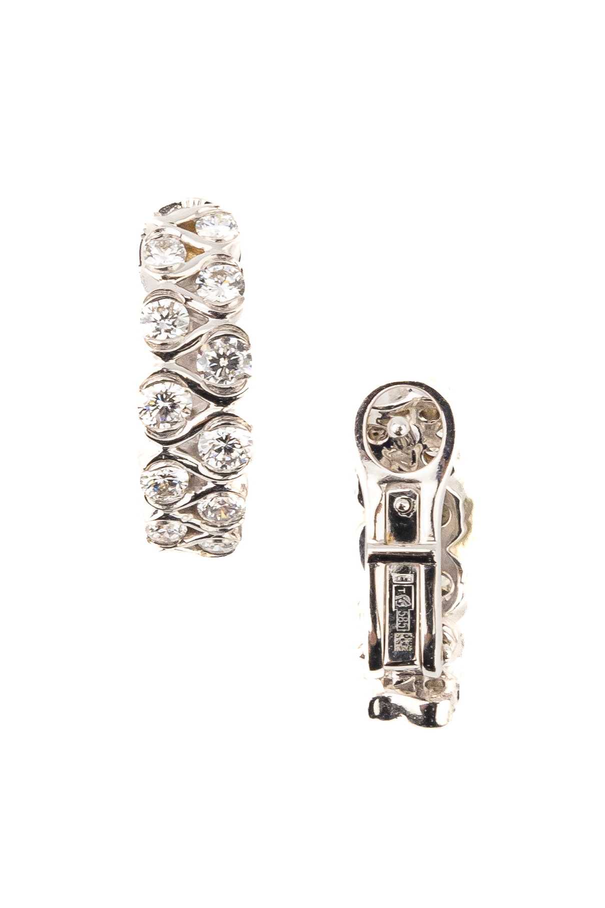Основой композиции являются 22 бриллианта идеальной круглой формы с чистым белым цветом вставок. Камни закреплены таким образом, что создают непрерывный поток света при каждом движении. Холодный оттенок белого золота идеально гармонирует с прозрачностью бриллиантов, усиливая их естественное мерцание. Эти серьги — универсальный аксессуар, который подойдет как для женщин, так и для мужчин, предпочитающих лаконичные, но выразительные украшения.