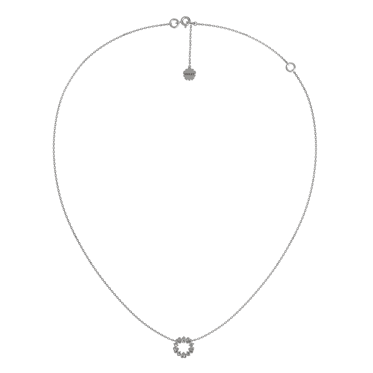 Центральным элементом украшения выступает изящная подвеска, декорированная 5 бриллиантами круглой формы. Белый цвет вставок гармонично дополняет общую композицию, наполняя изделие внутренним сиянием. Бриллианты расположены таким образом, что свет преломляется в каждой грани, заставляя колье переливаться при каждом движении. Продуманный дизайн позволяет использовать это украшение как для женщин, так и для мужчин, что делает его универсальным подарком для тех, кто ценит эстетику минимализма.