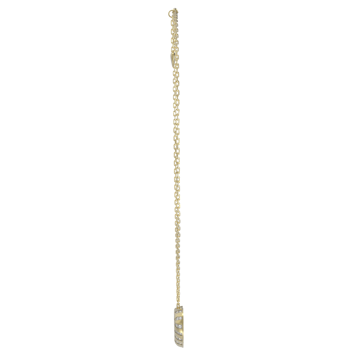 Центральный элемент композиции инкрустирован 69 бриллиантами круглой огранки. Белые вставки расположены таким образом, чтобы максимально отражать свет и создавать эффектное сияние при каждом движении. Лаконичная цепочка, дополняющая подвеску, надежно фиксирует изделие, позволяя ему идеально располагаться на шее.