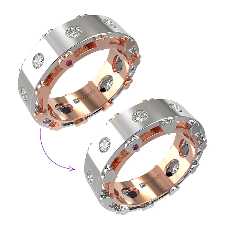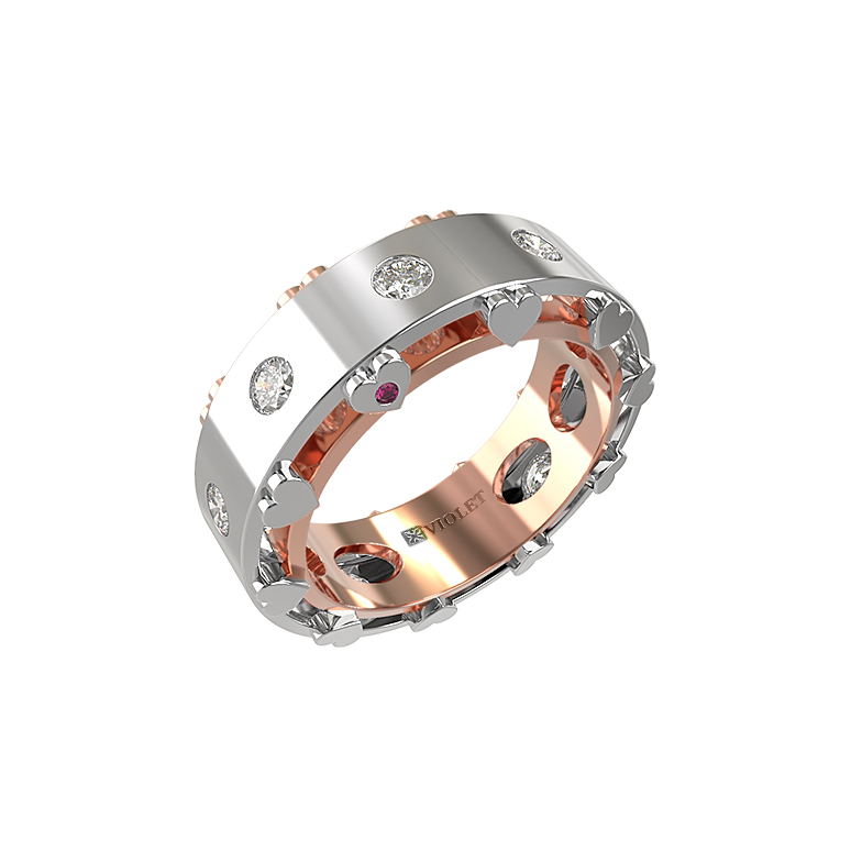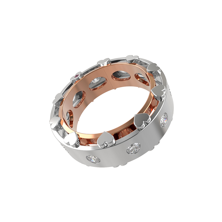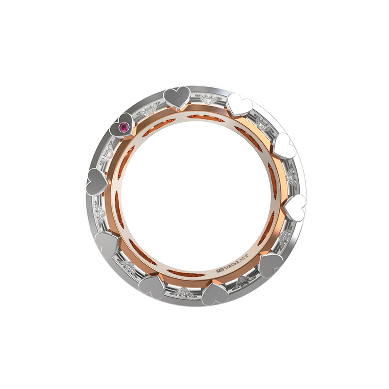 Ювелирное украшение украшают 12 вставок безупречной круглой формы: роскошные бриллианты белого цвета и акцентные рубины красного цвета. Такое сочетание делает изделие по-настоящему притягательным и запоминающимся. Лаконичный и продуманный дизайн подчеркивает премиальный статус аксессуара, делая его идеальным дополнением как повседневного, так и вечернего гардероба.