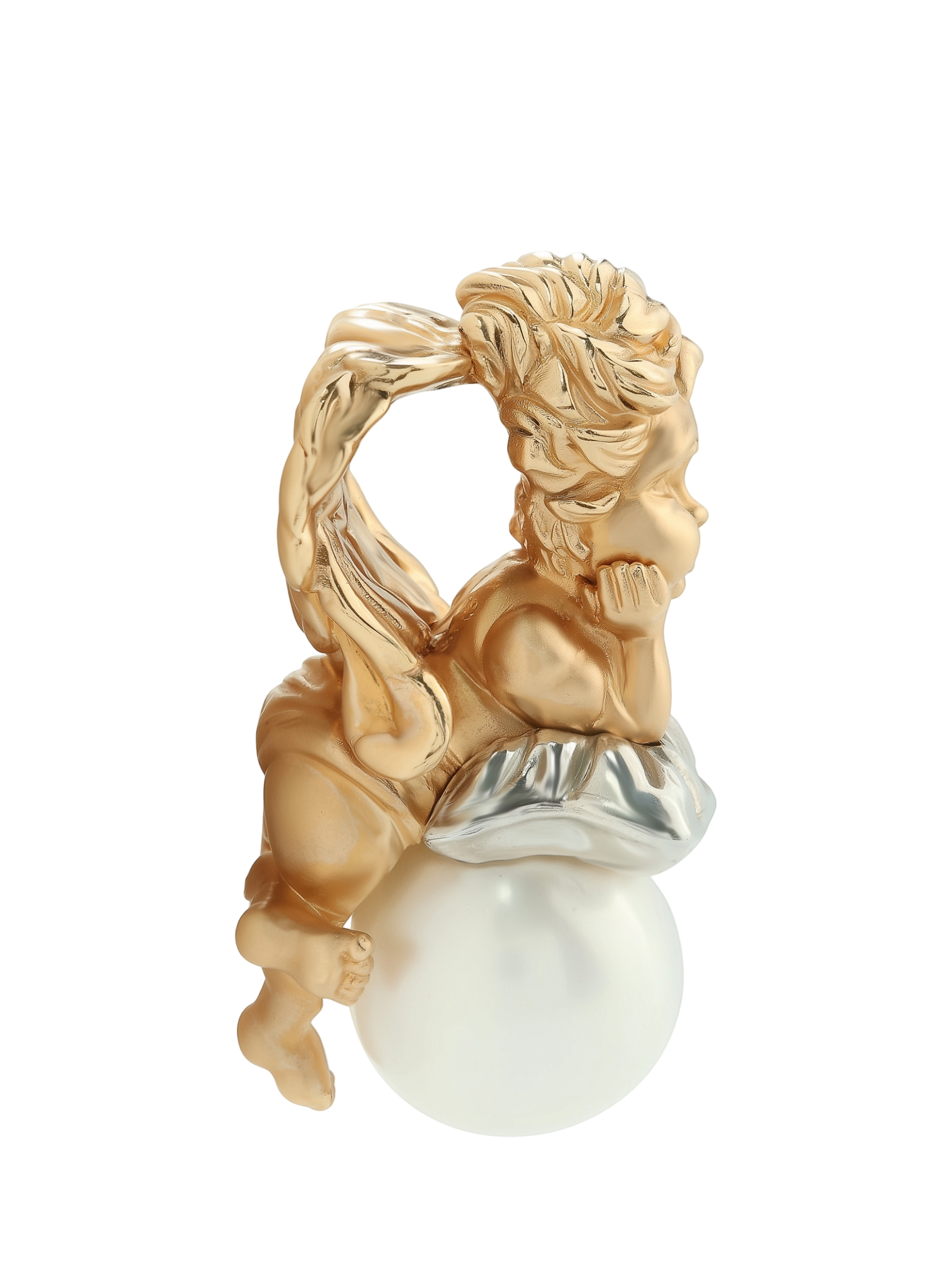 Изящная подвеска из золота с жемчугом станет воплощением нежности и утонченного стиля в вашем образе. Это украшение из коллекции De Luxe — Купидоны привлекает внимание своим необычным и трогательным дизайном в виде фигурки купидона, который словно оберегает своего владельца. Мастерство ювелиров позволило передать в красном золоте 585 пробы все детали образа: от выразительных черт лица до фактуры крыльев.