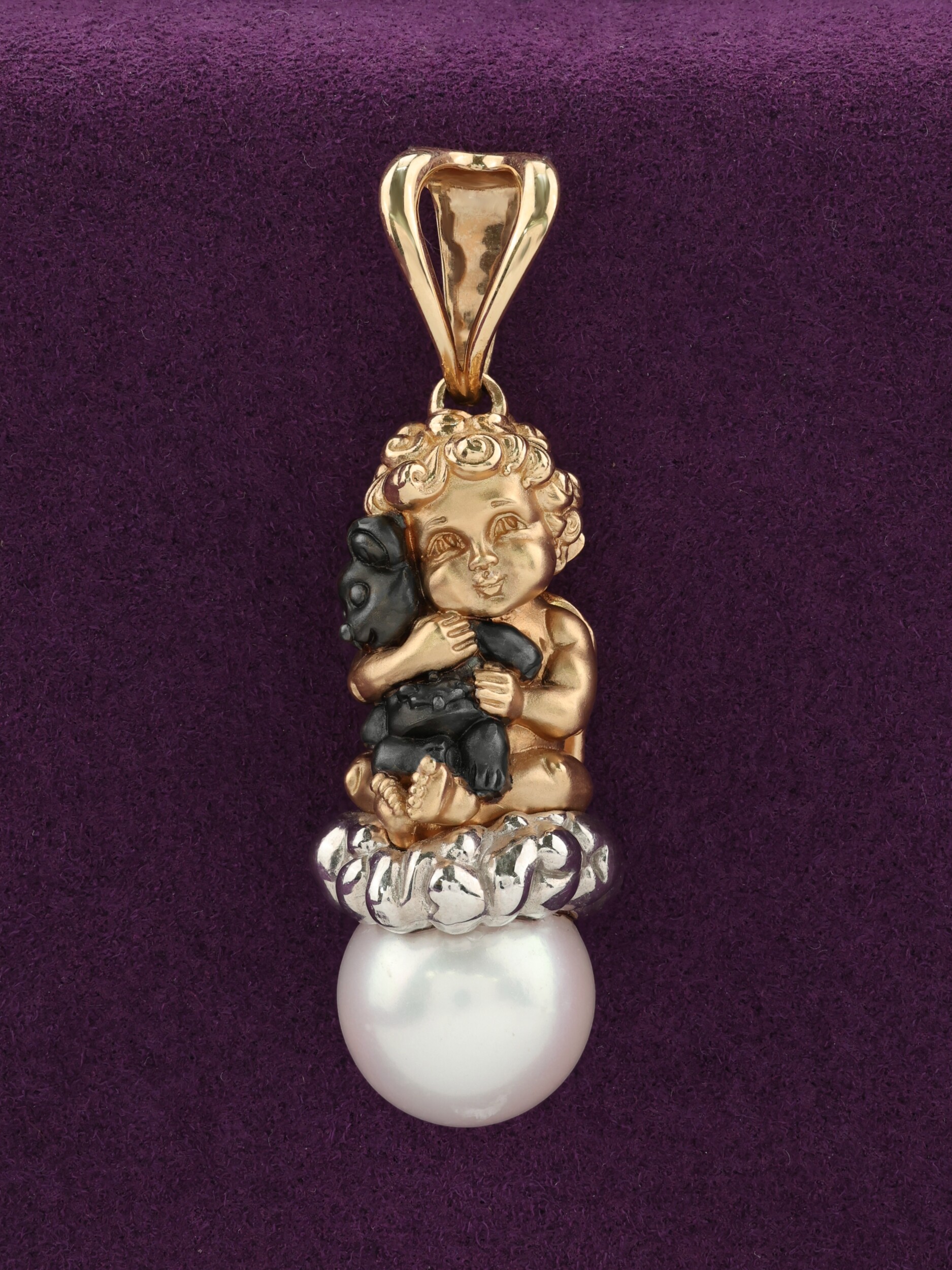 Подвеска из красного золота 585 пробы — это изысканное ювелирное украшение, которое станет ярким акцентом в вашем образе. Изделие входит в коллекцию De Luxe — Купидоны, отличающуюся особой художественной выразительностью и вниманием к деталям. Центральным элементом композиции является искусный дизайн в виде очаровательного купидона, который держит в руках медвежонка, создавая трогательный и нежный образ. Мастерская проработка каждой линии подчеркивает высокое качество исполнения украшения.