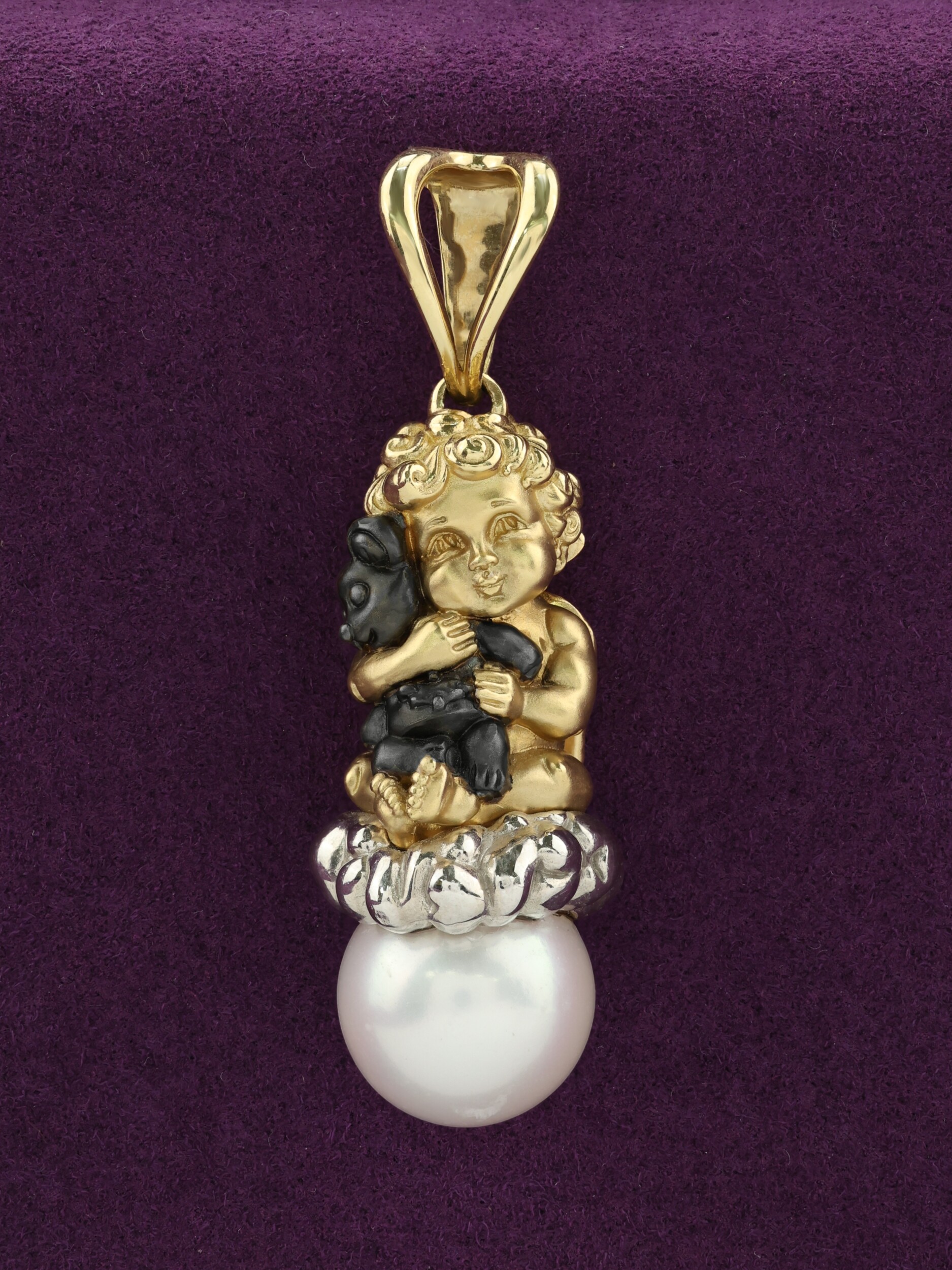 Данная модель из коллекции De Luxe — Купидоны демонстрирует высокое мастерство исполнения и внимание к деталям. Лимонное золото, выбранное в качестве основного материала, подчеркивает теплоту и уникальность изделия, создавая гармоничный контраст с жемчужной вставкой. Такая подвеска станет идеальным дополнением как для женского, так и для мужского образа, подчеркивая индивидуальность владельца.