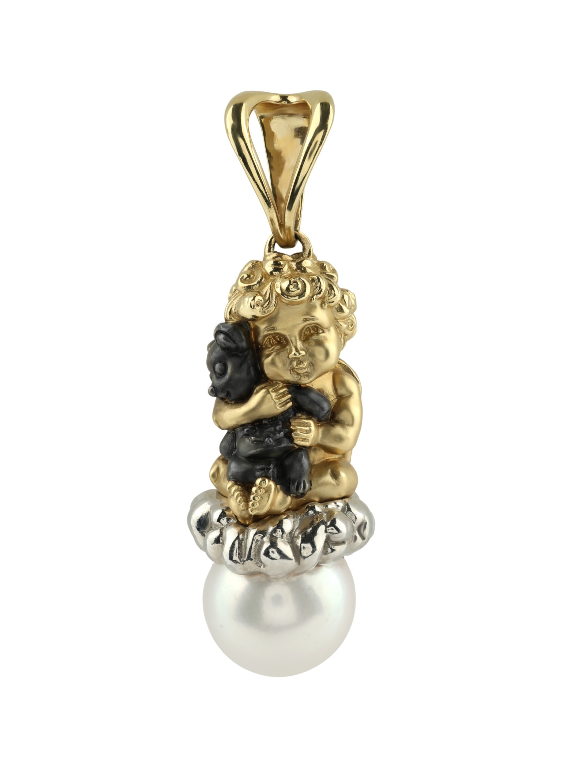 Элегантная подвеска из лимонного золота 585 пробы — это изысканное ювелирное украшение, которое станет центральным элементом вашего образа. Дизайн изделия выполнен в виде очаровательных купидонов, воплощающих легкость и утонченность стиля. В центре композиции — одна вставка жемчуга классической круглой формы с нежным белым цветом, которая придает украшению благородное сияние и визуальную мягкость.
