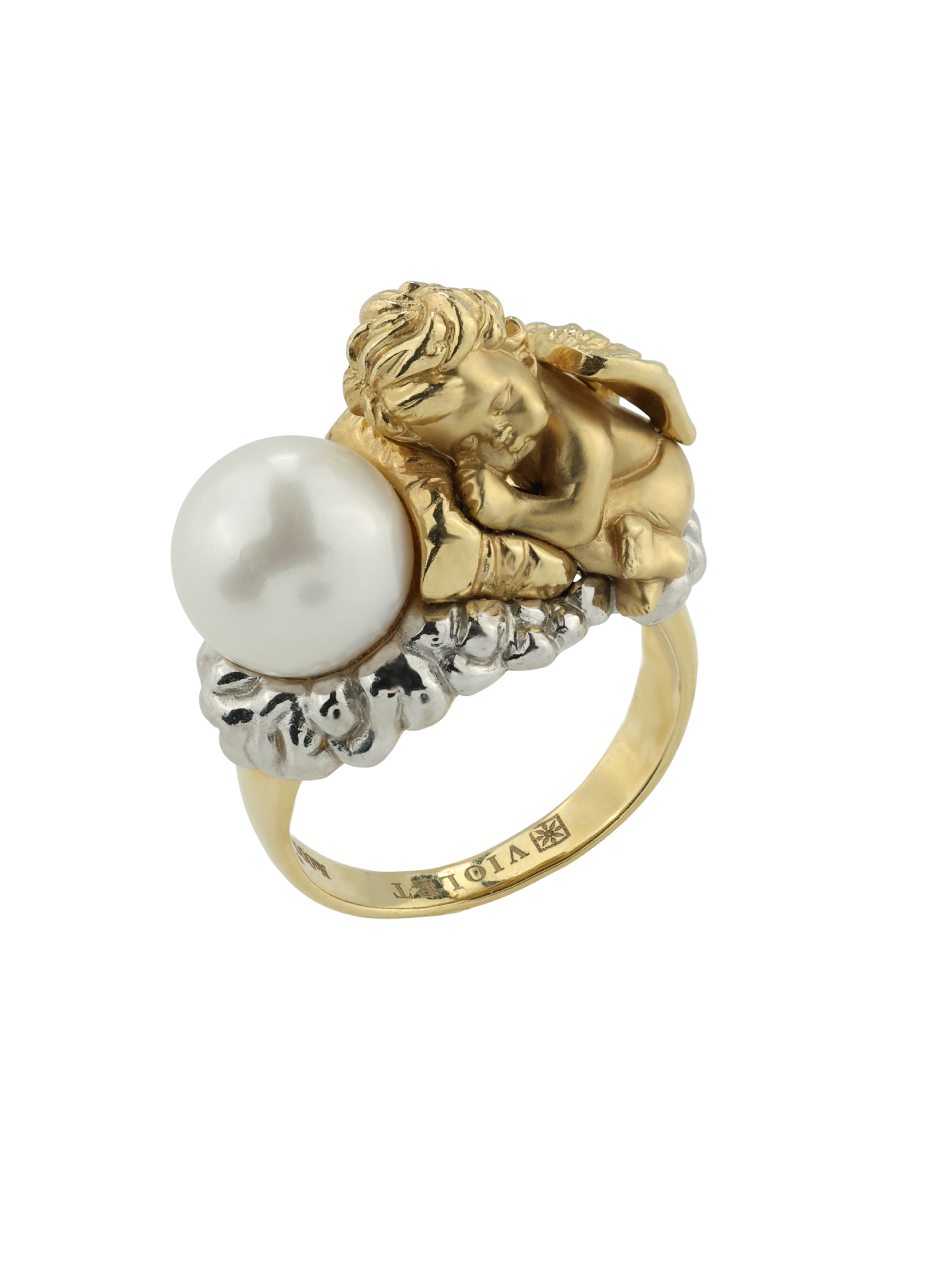 Кольцо из лимонного золота 585 пробы c жемчугом