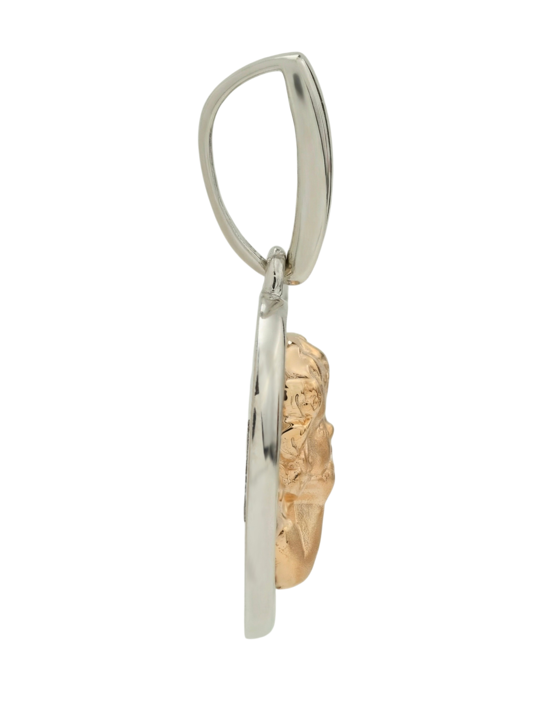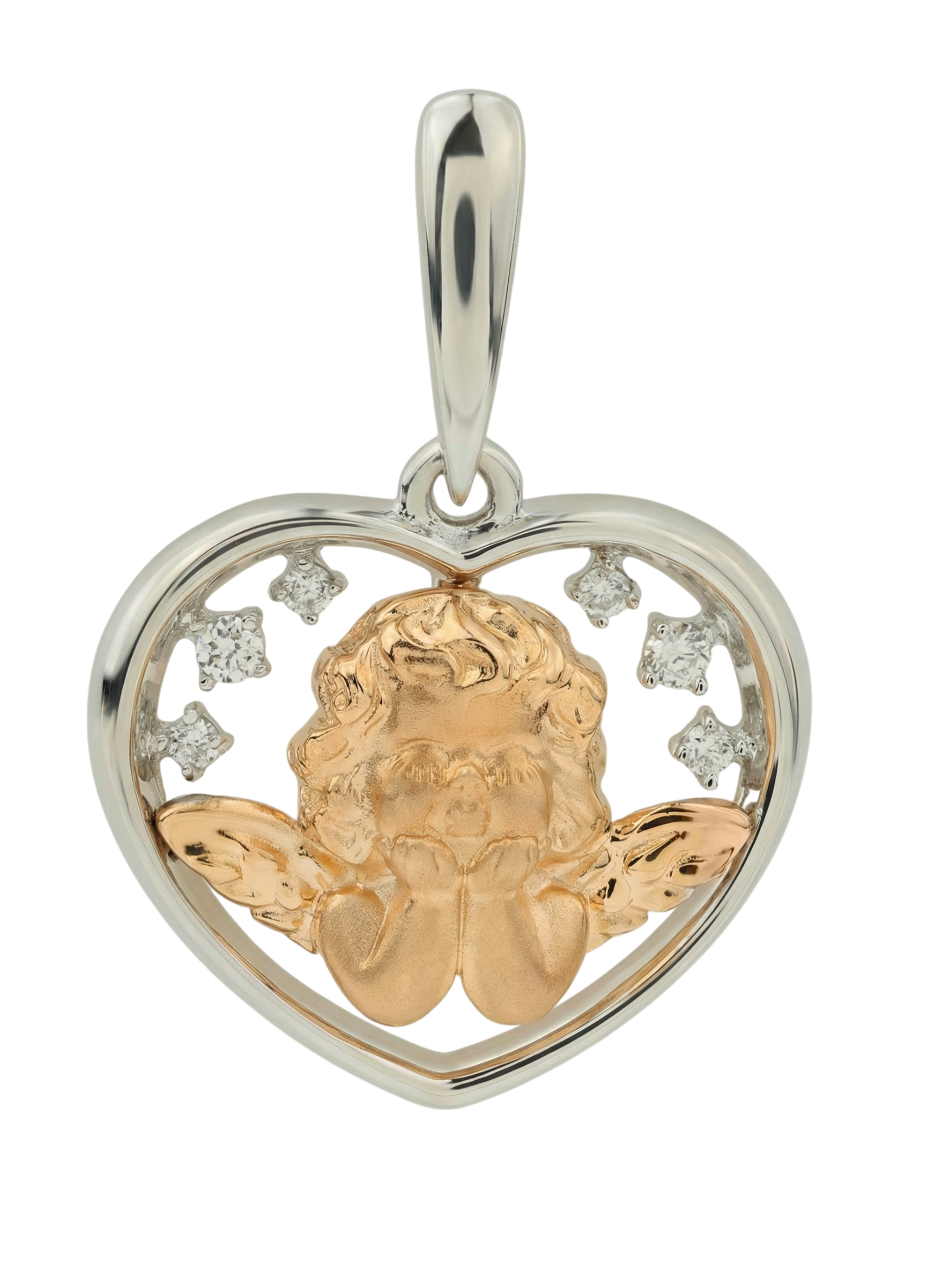 Холодный блеск белого золота гармонично дополнен вставками из 6 сияющих бриллиантов. Камни имеют классическую форму круга, а их белый цвет подчеркивает чистоту и благородство металла. Бриллианты расположены вокруг центральной фигурки, создавая деликатное мерцание при каждом движении. Благодаря выверенной композиции, это ювелирное изделие станет утонченным акцентом любого образа.