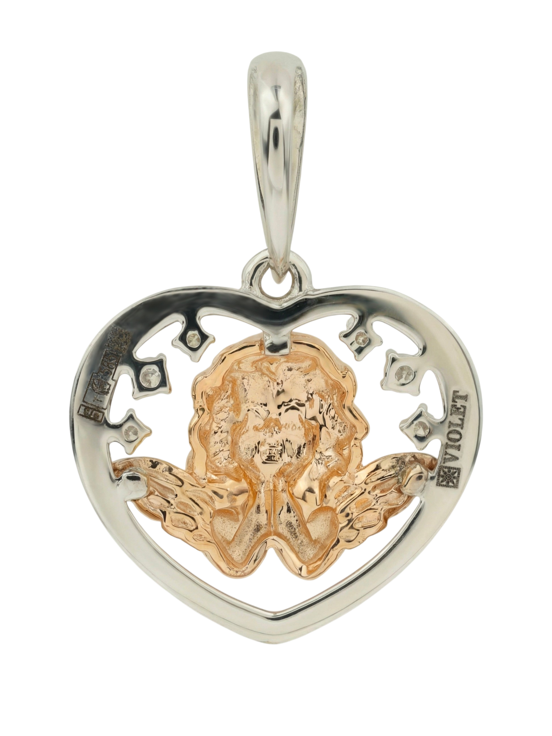Изящная подвеска из белого золота 585 пробы — это воплощение нежности и утонченного стиля. Центральным элементом композиции, созданной в рамках коллекции De Luxe — Купидоны, является детально проработанный дизайн: фигурка купидона, обрамленная изящным контуром в форме сердца. Этот символ любви и искренности делает украшение глубоко эмоциональным подарком для близкого человека.