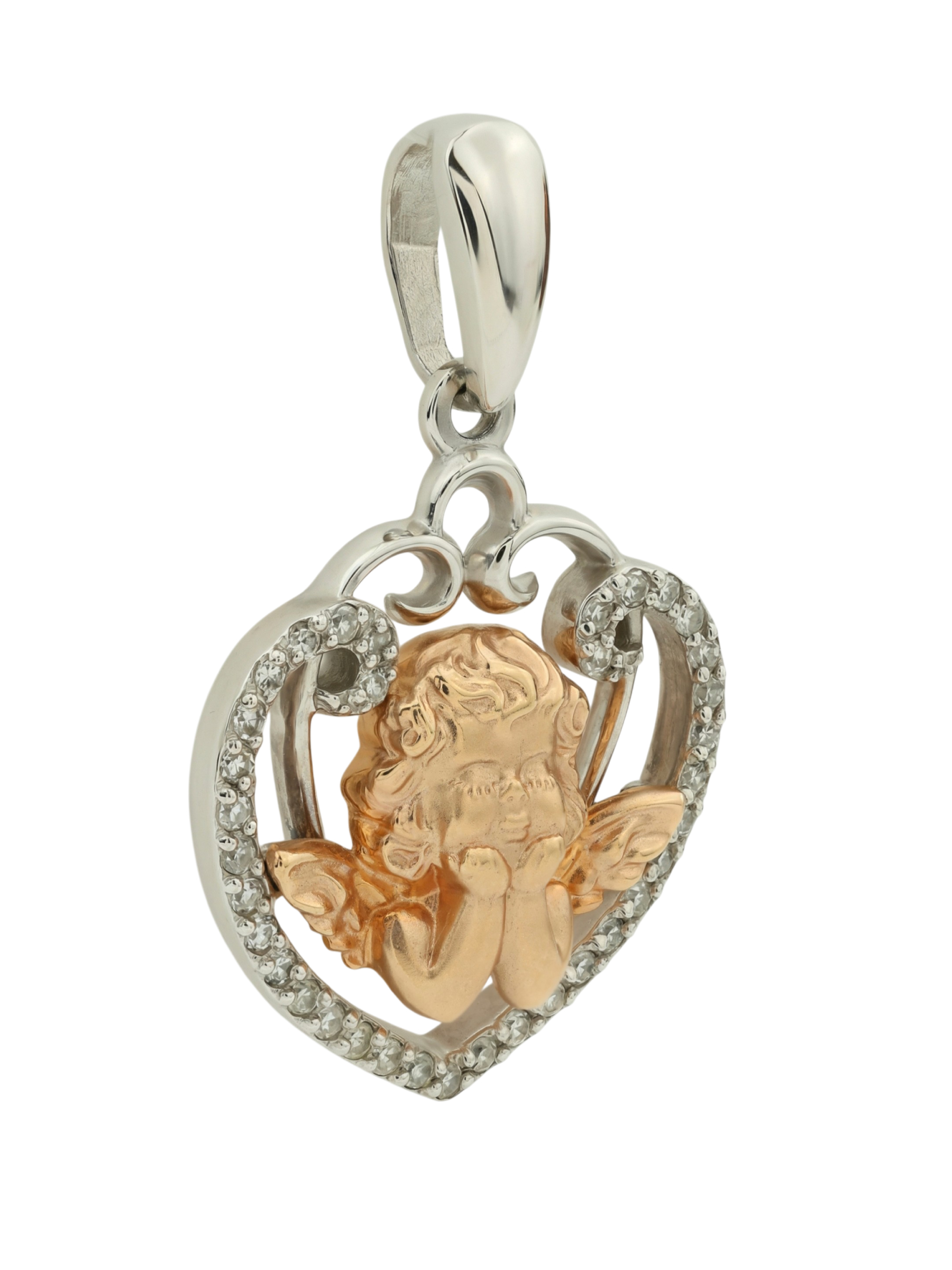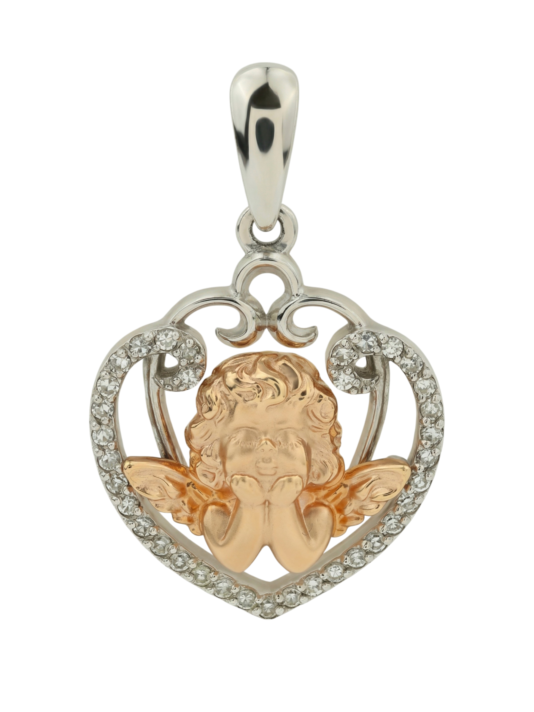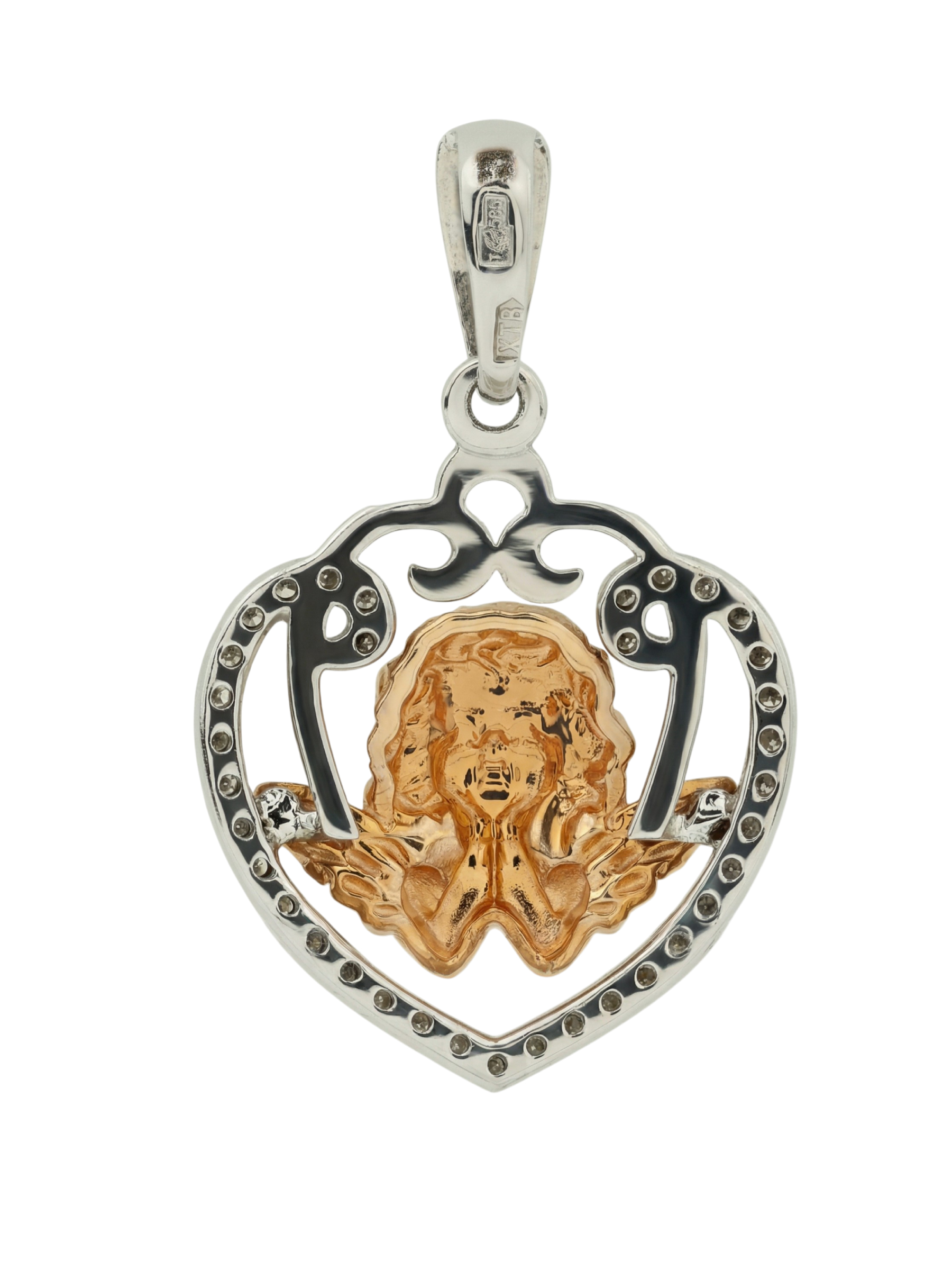 Изящная подвеска из белого золота 585 пробы станет утонченным дополнением вашего ювелирного гардероба. Украшение входит в эксклюзивную линейку De Luxe — Купидоны и привлекает внимание своим глубоким символизмом и мастерством исполнения. Центральным элементом композиции является искусная фигурка купидона, обрамленная сияющим контуром в форме сердца. Этот дизайн воплощает чистоту чувств и нежность, делая аксессуар идеальным подарком для близкого человека.