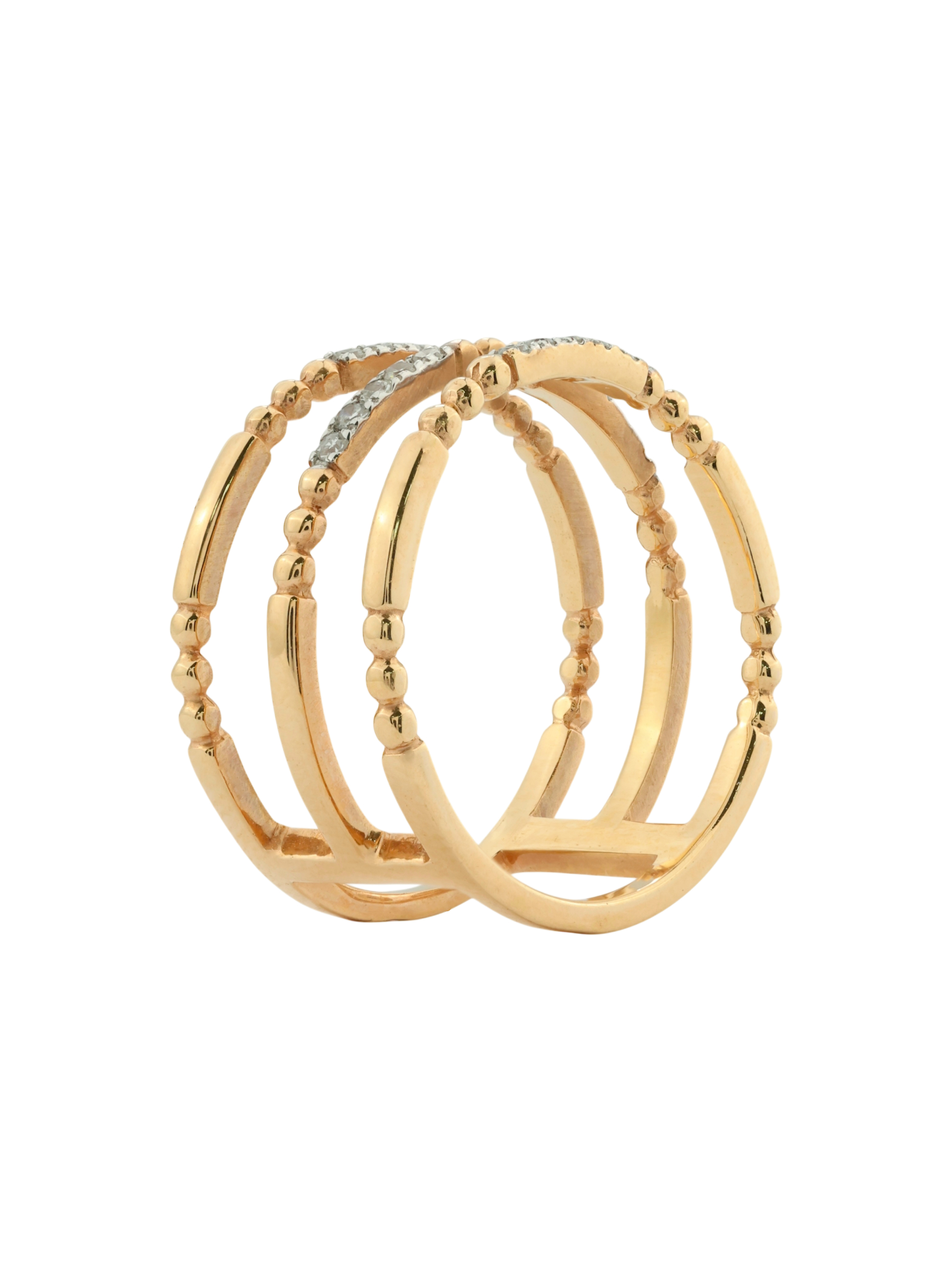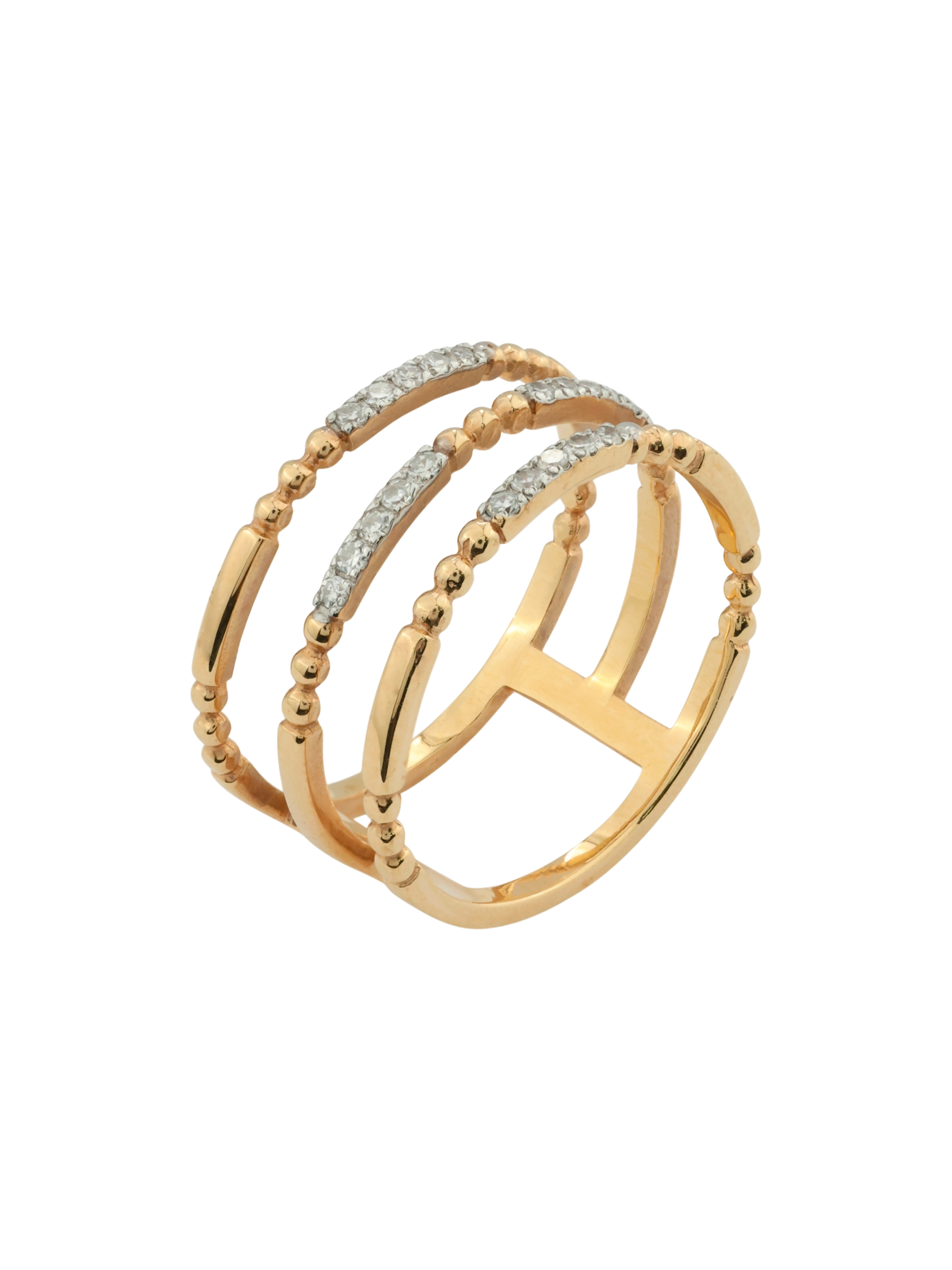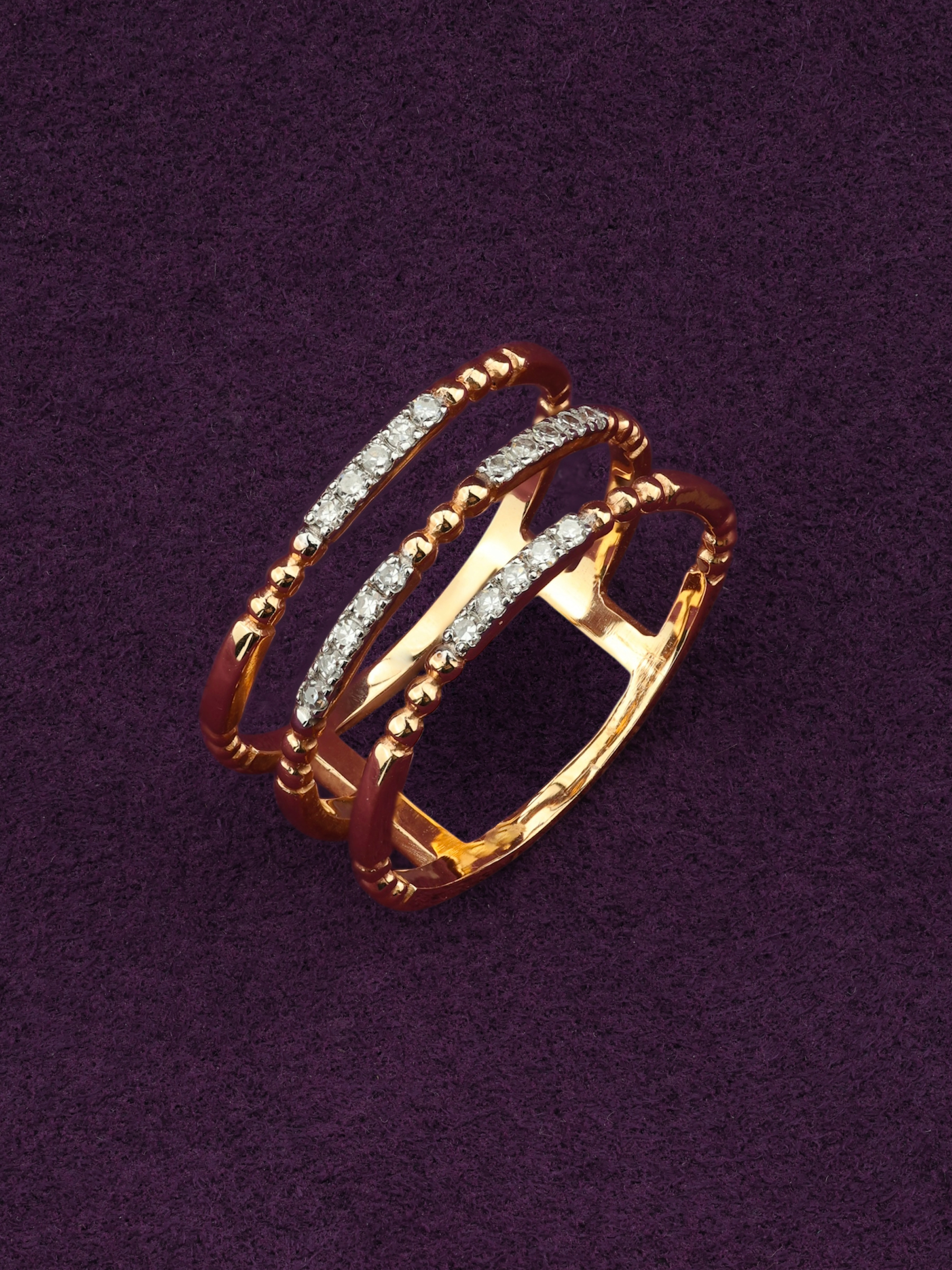 Элегантное кольцо из красного золота 585 пробы станет безупречным дополнением вашего образа, подчеркивая статус и безукоризненный вкус. Это украшение из коллекции De Luxe Бриллианты — Balls выполнено в современном дизайне, который сочетает в себе классические традиции ювелирного искусства и актуальные тренды. Сложная многослойная конструкция изделия придает ему динамичный и запоминающийся облик, а теплое сияние красного металла гармонично переплетается с холодным блеском драгоценных вставок.